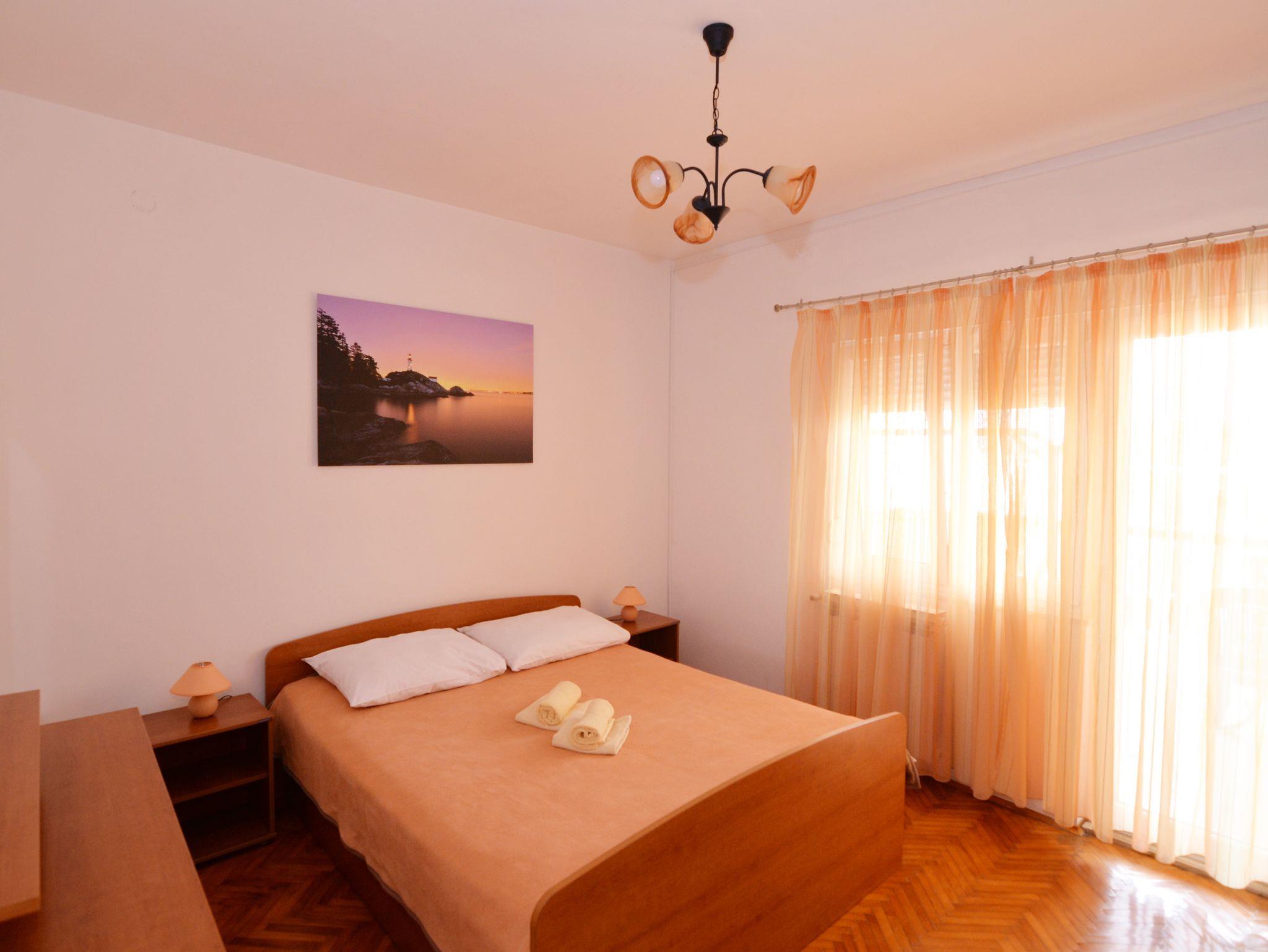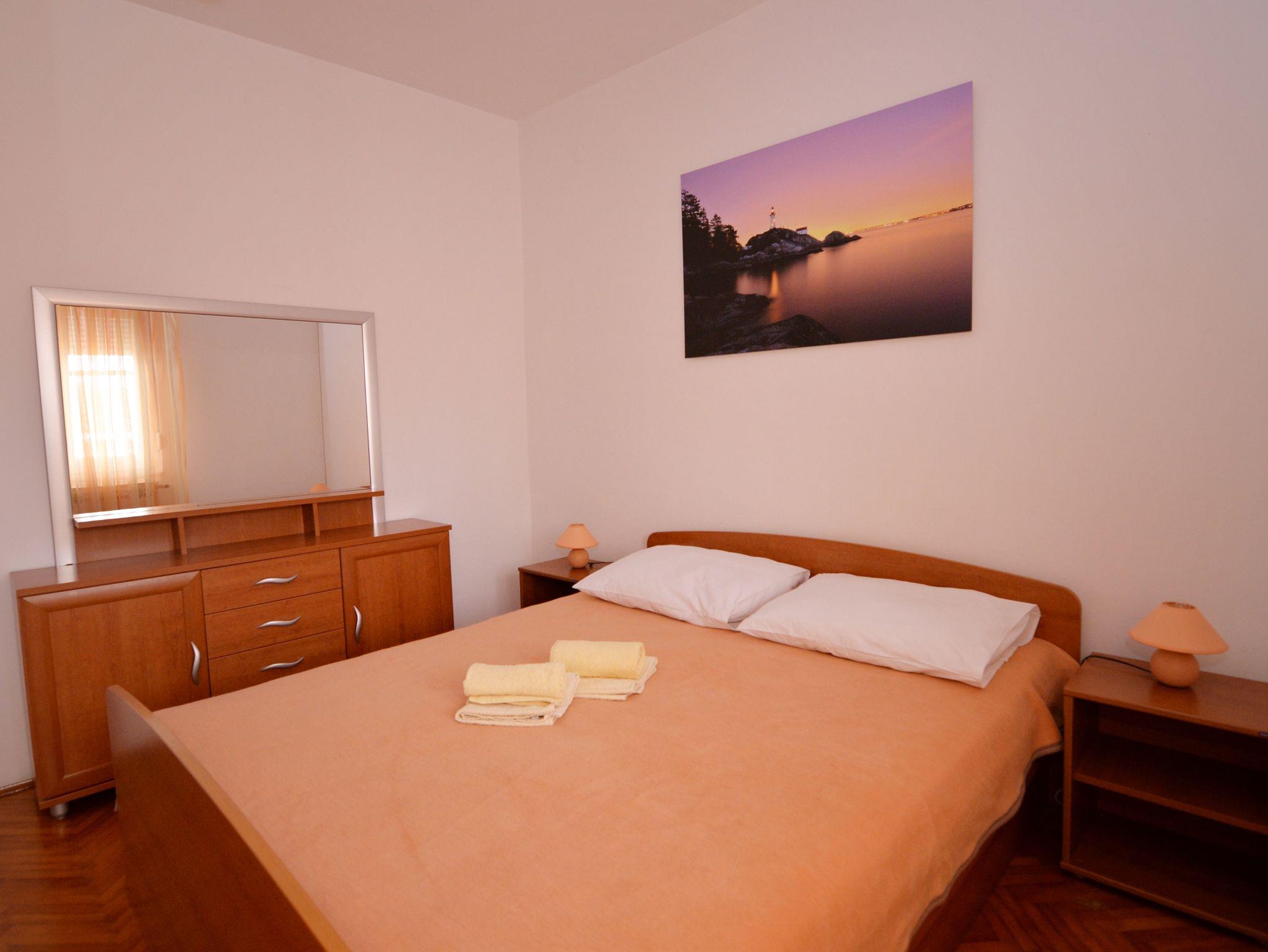 Ferienwohnung bietet Platz für 5 Gäste. Die Betten sind in Schlafzimmern, die es 2 gibt, innerhalb einer Gesamtfläche von 41m2, angeordnet. Die Gäste haben eine eigene Terrasse zur Verfügung, auf der sie in warmen Sommernächten genießen können. Das Apartment bietet Meerblick. Es ist erlaubt, Speisen auf dem Gemeinschafts-Grill vorzubereiten. IM PREIS INBEGRIFFEN: Kurtaxe, Endreinigung, Klimatisierung, Zentralheizung, Parkplatz, Garage, Internet, Kinderbett, Bügeleisen, Föhn. VERBINDLICHE ZUSÄTZLICHE KOSTEN: Aufzahlung für Kurzaufenthalte (prozentualer Zuschlag pro Nächtigungsanzahl: 30% - 1, 20% - 2, 10% - 3). UNVERBINDLICHE ZUSÄTZLICHE KOSTEN: Zusatzbett (5,00 € pro Nacht). Die Verfügbarkeit zusätzlicher Dienstleistungen in Ihrem reservierten Termin und die Preise derselben (falls nicht aufgeführt) müssen im Voraus überprüft werden. Zusätzliche Dienstleistungen die in der Zahlungsaufforderung nicht aufgeführt sind werden direkt beim Vermieter bezahlt, angenommen der Gast nutzt auch diese. Ermäßigung auf den Grundpreis: Gratistag 14=13 (bei einem Aufenthalt von 14 Tagen oder mehr erhalten Sie einen Gratistag für den Aufenthalt bis 31.12.26).