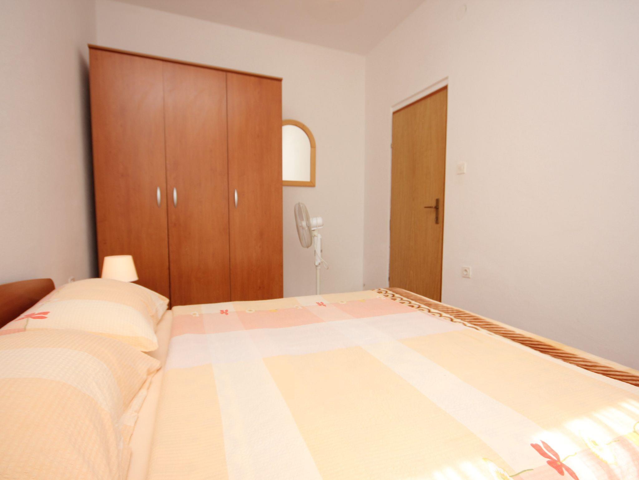 Ferienwohnung bietet Platz für 4 Gäste. Die Betten sind in Schlafzimmern, die es 1 gibt, und in Esszimmer, innerhalb einer Gesamtfläche von 28m2, angeordnet. Die Gäste haben eine eigene Terrasse zur Verfügung, auf der sie in warmen Sommernächten genießen können. Das Apartment bietet Meerblick. Es ist erlaubt, Speisen auf dem Gemeinschafts-Grill vorzubereiten. IM PREIS INBEGRIFFEN: Kurtaxe, Endreinigung, Klimatisierung, Parkplatz, Internet. VERBINDLICHE ZUSÄTZLICHE KOSTEN: Aufzahlung für Kurzaufenthalte (prozentualer Zuschlag pro Nächtigungsanzahl: 30% - 1, 20% - 2, 10% - 3). Die Verfügbarkeit zusätzlicher Dienstleistungen in Ihrem reservierten Termin und die Preise derselben (falls nicht aufgeführt) müssen im Voraus überprüft werden. Zusätzliche Dienstleistungen die in der Zahlungsaufforderung nicht aufgeführt sind werden direkt beim Vermieter bezahlt, angenommen der Gast nutzt auch diese.