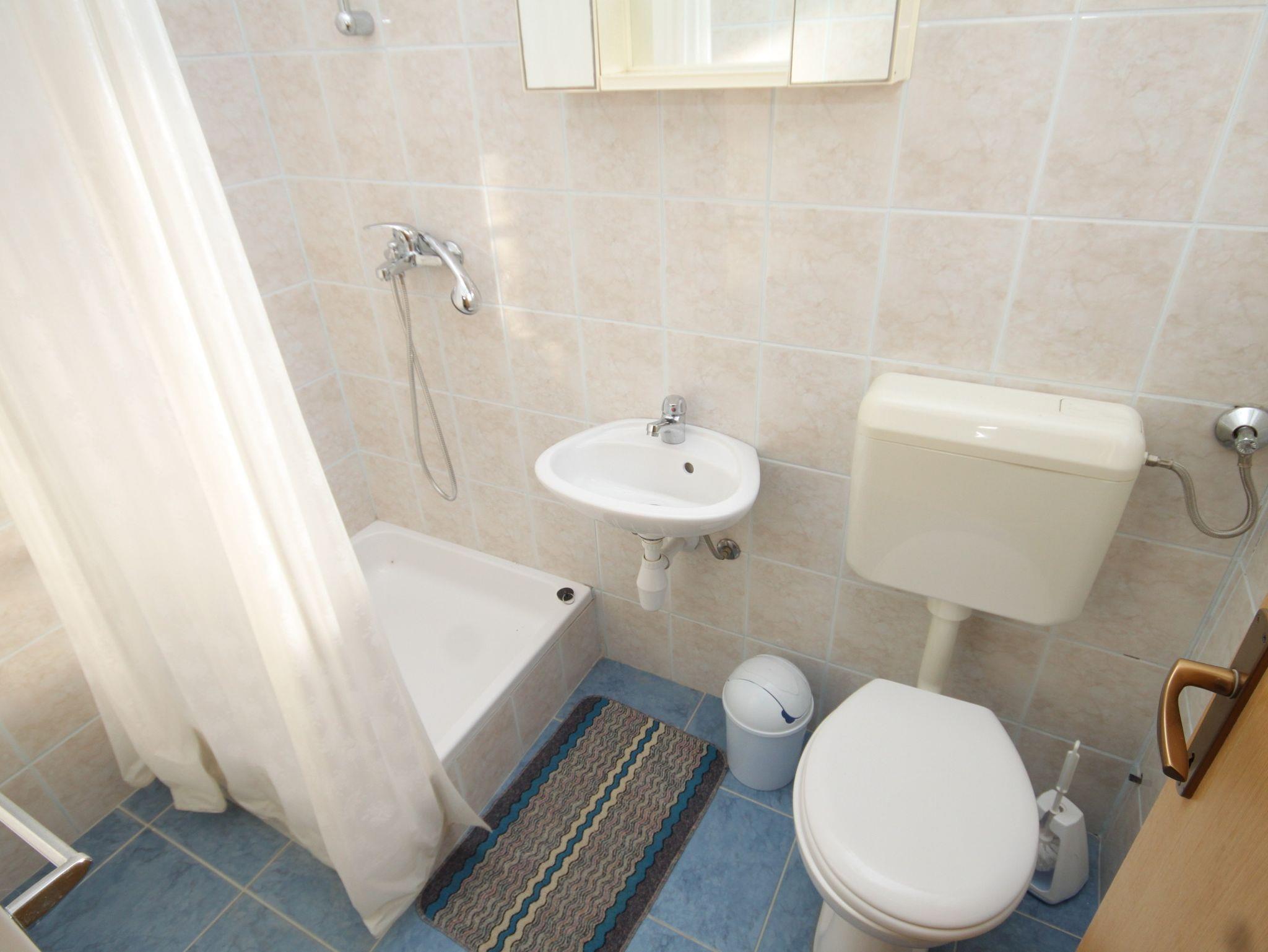 Ferienwohnung bietet Platz für 6 Gäste. Die Betten sind in Schlafzimmern, die es 2 gibt, und in Wohnzimmer, innerhalb einer Gesamtfläche von 54m2, angeordnet. Die Gäste haben eine eigene Terrasse zur Verfügung, auf der sie in warmen Sommernächten genießen können. Das Apartment bietet Meerblick. Es ist erlaubt, Speisen auf dem Gemeinschafts-Grill vorzubereiten. IM PREIS INBEGRIFFEN: Kurtaxe, Endreinigung, Klimatisierung, Parkplatz, Internet, Bügeleisen, Bügelbrett, Föhn. VERBINDLICHE ZUSÄTZLICHE KOSTEN: Aufzahlung für Kurzaufenthalte (prozentualer Zuschlag pro Nächtigungsanzahl: 30% - 1, 20% - 2, 10% - 3). Die Verfügbarkeit zusätzlicher Dienstleistungen in Ihrem reservierten Termin und die Preise derselben (falls nicht aufgeführt) müssen im Voraus überprüft werden. Zusätzliche Dienstleistungen die in der Zahlungsaufforderung nicht aufgeführt sind werden direkt beim Vermieter bezahlt, angenommen der Gast nutzt auch diese. Ermäßigung auf den Grundpreis: Gratistag 14=13 (bei einem Aufenthalt von 14 Tagen oder mehr erhalten Sie einen Gratistag für den Aufenthalt bis 31.12.26).