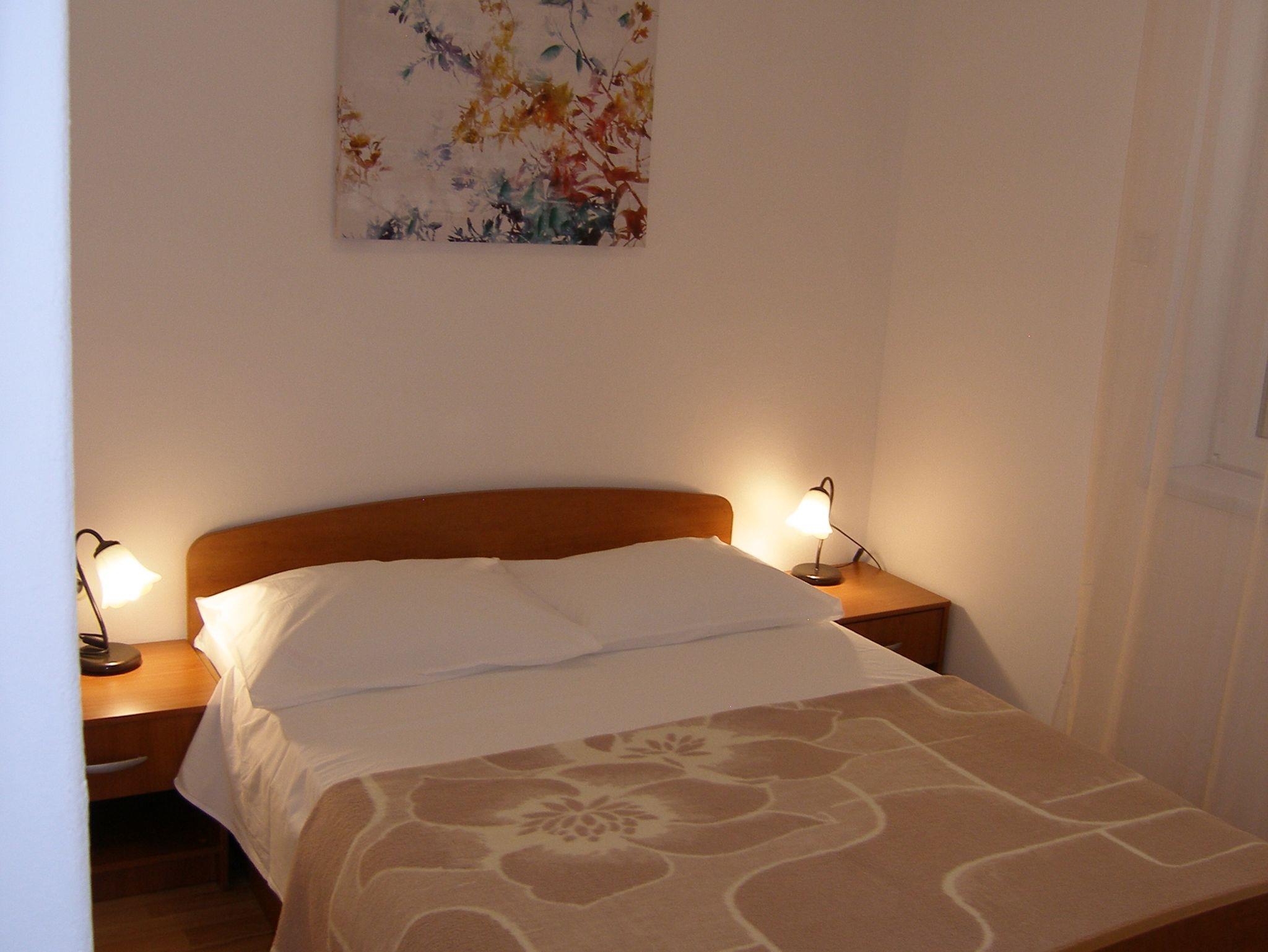 Zimmer bietet Platz für 2 Gäste. Die Betten sind in Schlafzimmern, die es 1 gibt, innerhalb einer Gesamtfläche von 12m2, angeordnet. Die Gäste haben einen eigenen Balkon zur Verfügung, auf der sie in warmen Sommernächten genießen können. Das Zimmer bietet Meerblick. Die reservierte Unterkunftseinheit ist ein Zimmer mit eigenem Badezimmer ohne die Möglichkeit der Nutzung einer Küche. IM PREIS INBEGRIFFEN: Kurtaxe, Endreinigung, Klimatisierung, Parkplatz, Internet, Kinderbett, Föhn. VERBINDLICHE ZUSÄTZLICHE KOSTEN: Aufzahlung für Kurzaufenthalte (prozentualer Zuschlag pro Nächtigungsanzahl: 30% - 1, 20% - 2, 10% - 3). UNVERBINDLICHE ZUSÄTZLICHE KOSTEN: Wäschewaschen (2,00 € Waschen). Die Verfügbarkeit zusätzlicher Dienstleistungen in Ihrem reservierten Termin und die Preise derselben (falls nicht aufgeführt) müssen im Voraus überprüft werden. Zusätzliche Dienstleistungen die in der Zahlungsaufforderung nicht aufgeführt sind werden direkt beim Vermieter bezahlt, angenommen der Gast nutzt auch diese. Ermäßigung auf den Grundpreis: Gratistag 14=13 (bei einem Aufenthalt von 14 Tagen oder mehr erhalten Sie einen Gratistag für den Aufenthalt bis 31.12.26).