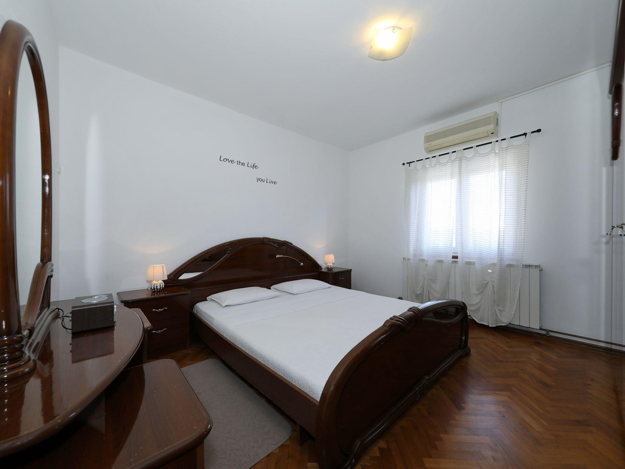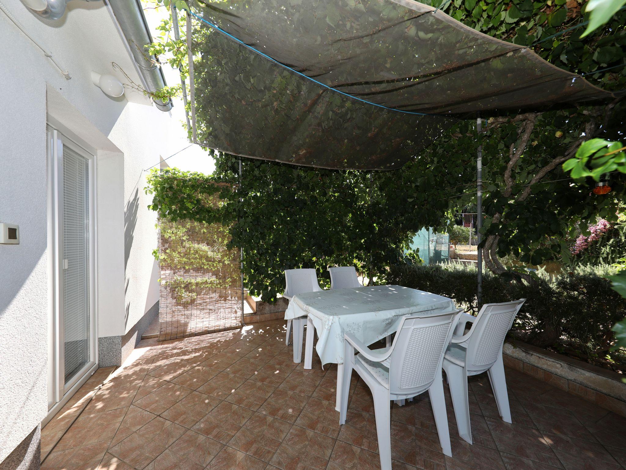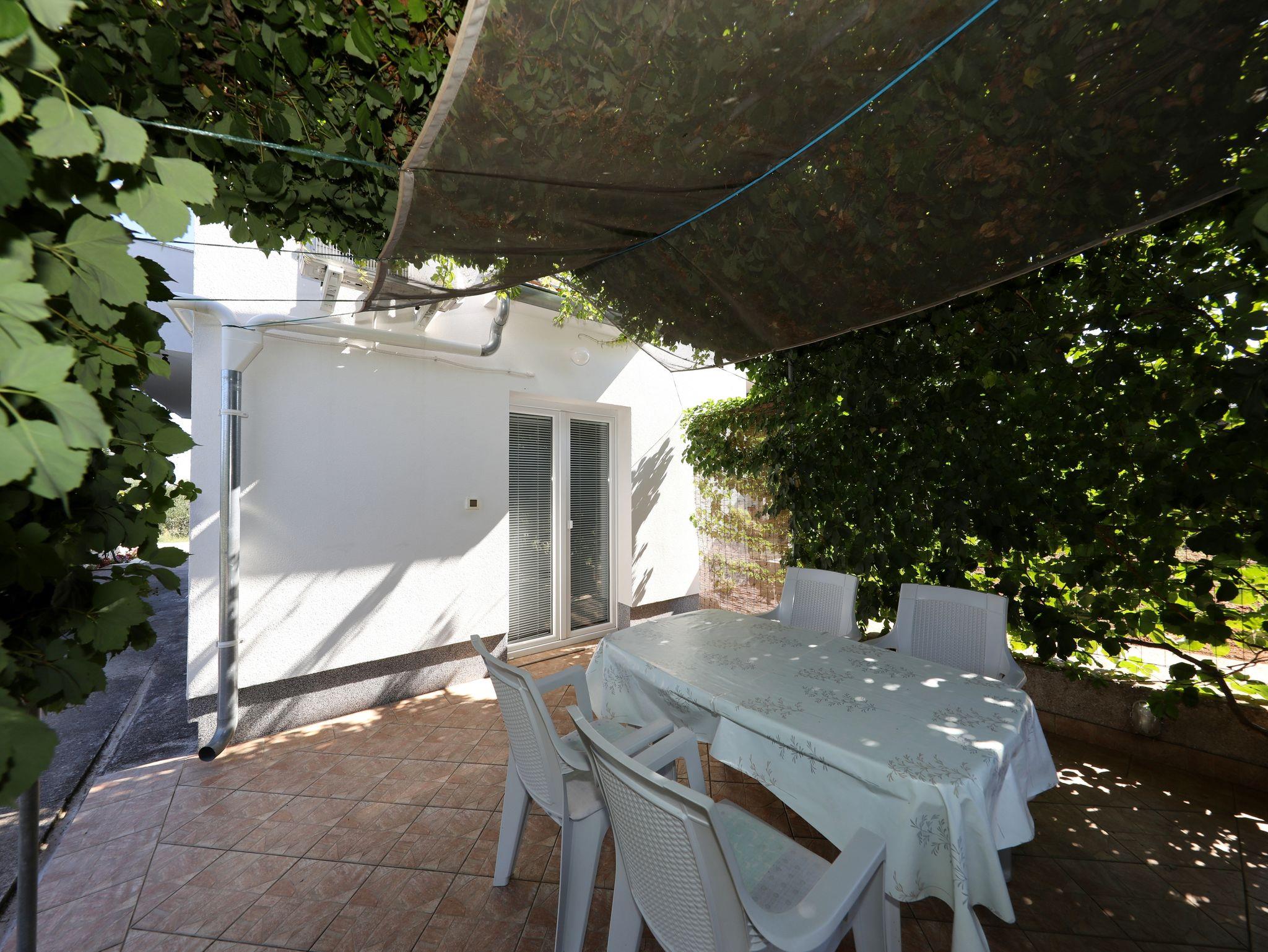 Ferienwohnung bietet Platz für 4 Gäste. Die Betten sind in Schlafzimmern, die es 1 gibt, und in Esszimmer, innerhalb einer Gesamtfläche von 33m2, angeordnet. Die Gäste haben eine eigene Terrasse zur Verfügung, auf der sie in warmen Sommernächten genießen können. Es ist erlaubt, Speisen auf dem Gemeinschafts-Grill vorzubereiten. In der Unterkunftseinheit besteht die Möglichkeit des Mitbringens von Haustieren gegen Aufpreis. IM PREIS INBEGRIFFEN: Kurtaxe, Endreinigung, Klimatisierung, Parkplatz, Internet, Bügeleisen, Bügelbrett, tragbarer Grill. VERBINDLICHE ZUSÄTZLICHE KOSTEN: Aufzahlung für Kurzaufenthalte (prozentualer Zuschlag pro Nächtigungsanzahl: 30% - 1, 20% - 2, 10% - 3). UNVERBINDLICHE ZUSÄTZLICHE KOSTEN: Wäschewaschen (10,00 € Waschen), Bootsanlegeplatz (5,00 € pro Nacht), Haustiere (10,00 € pro Nacht). Die Verfügbarkeit zusätzlicher Dienstleistungen in Ihrem reservierten Termin und die Preise derselben (falls nicht aufgeführt) müssen im Voraus überprüft werden. Zusätzliche Dienstleistungen die in der Zahlungsaufforderung nicht aufgeführt sind werden direkt beim Vermieter bezahlt, angenommen der Gast nutzt auch diese.