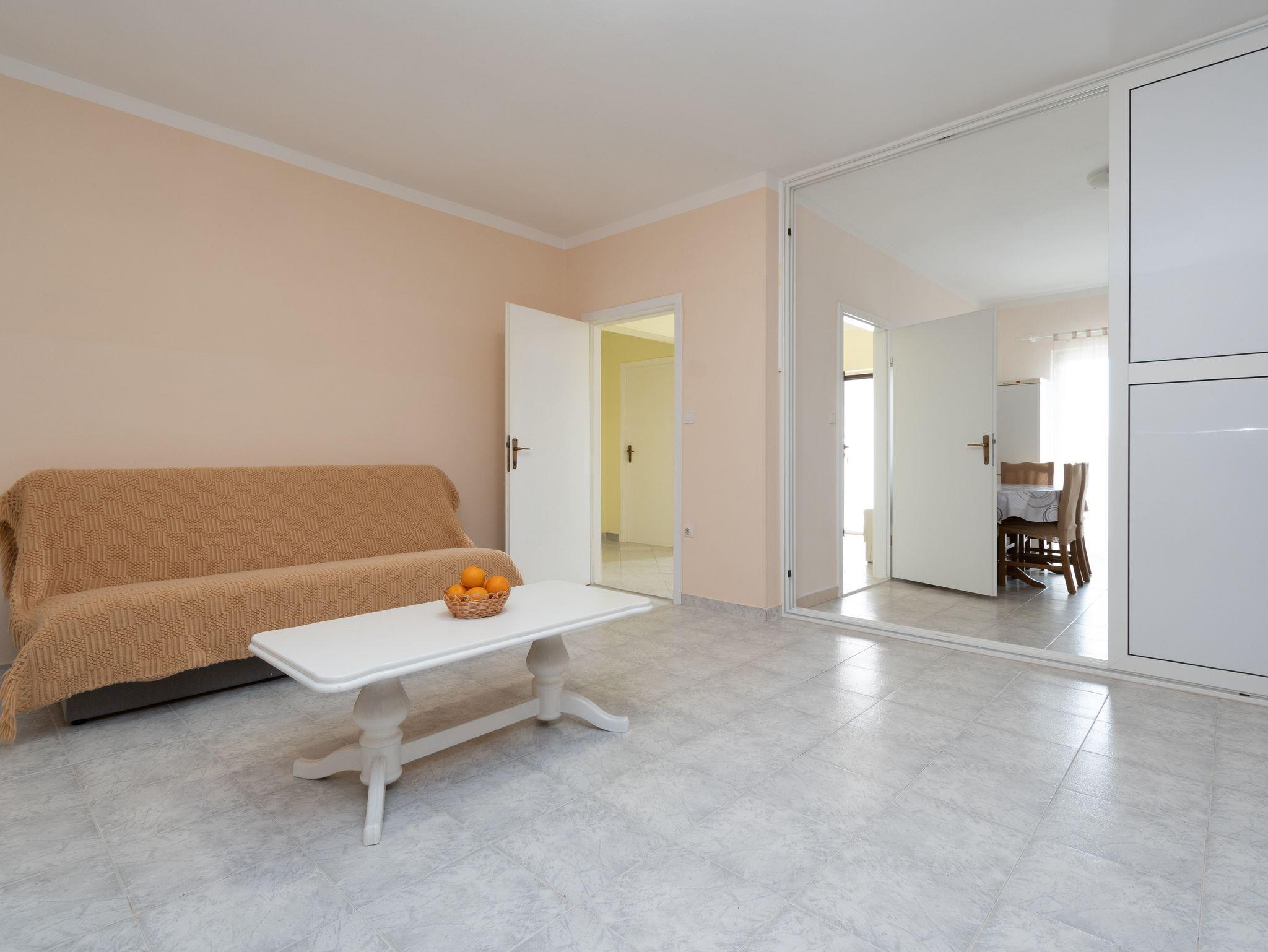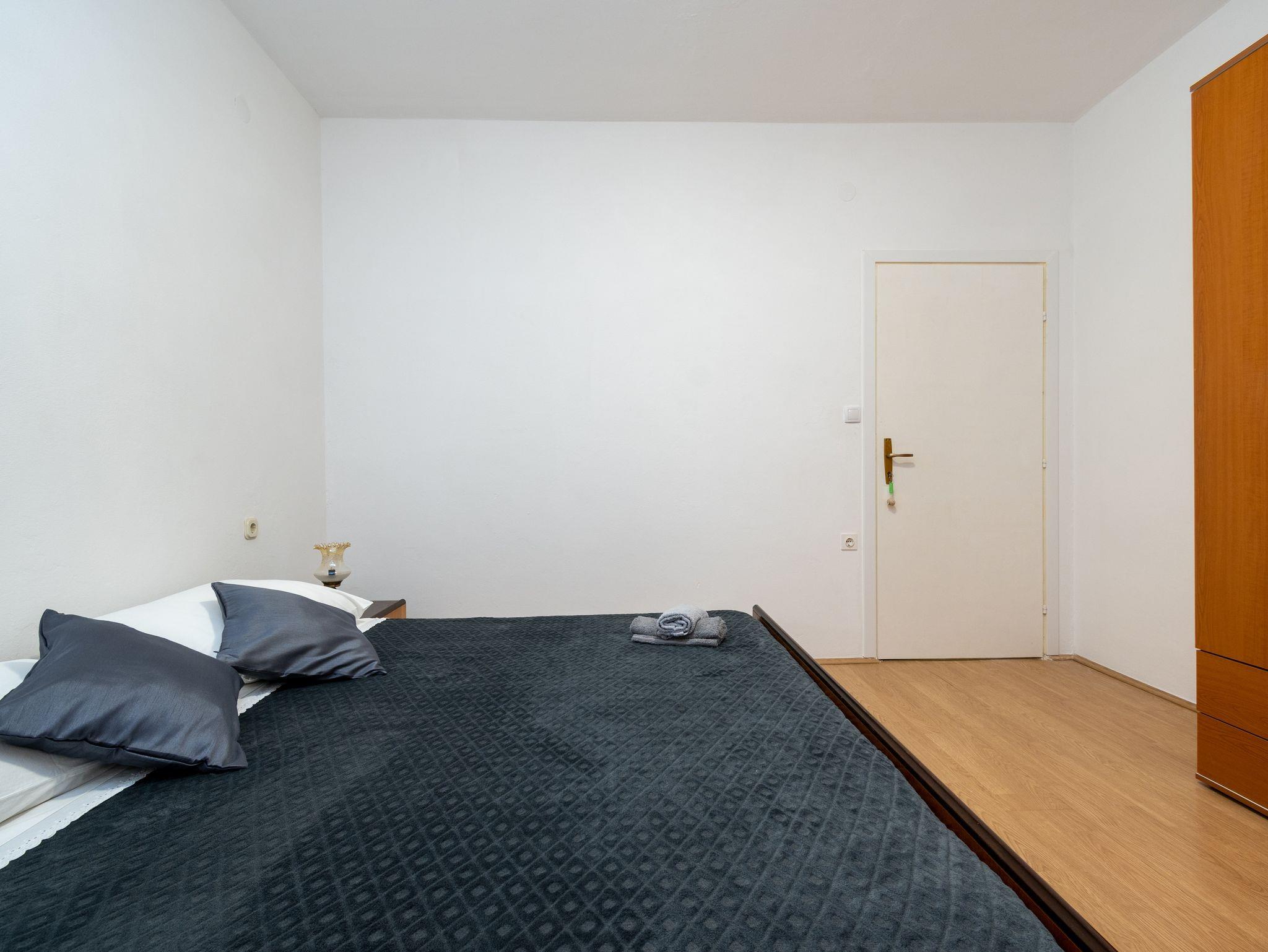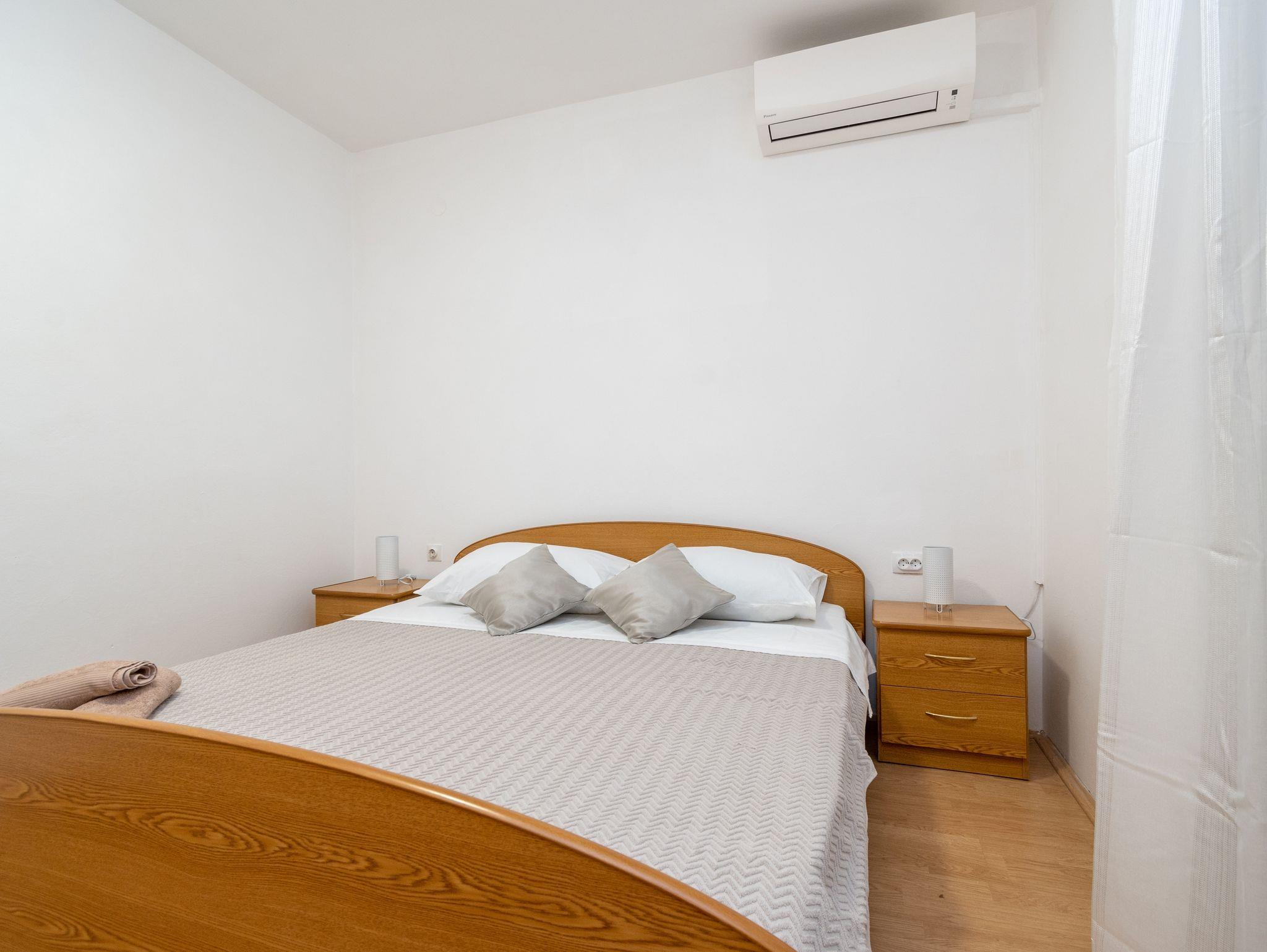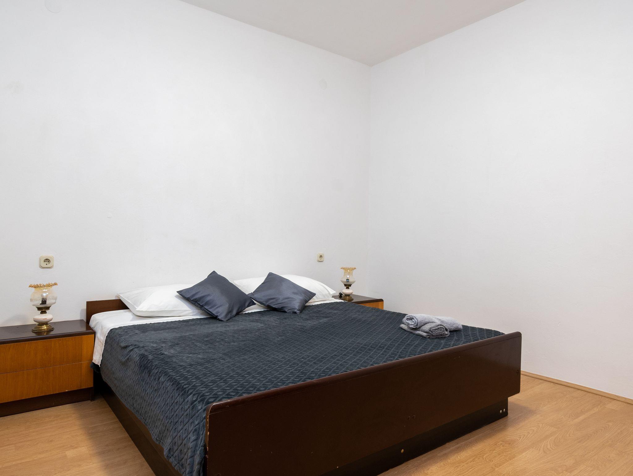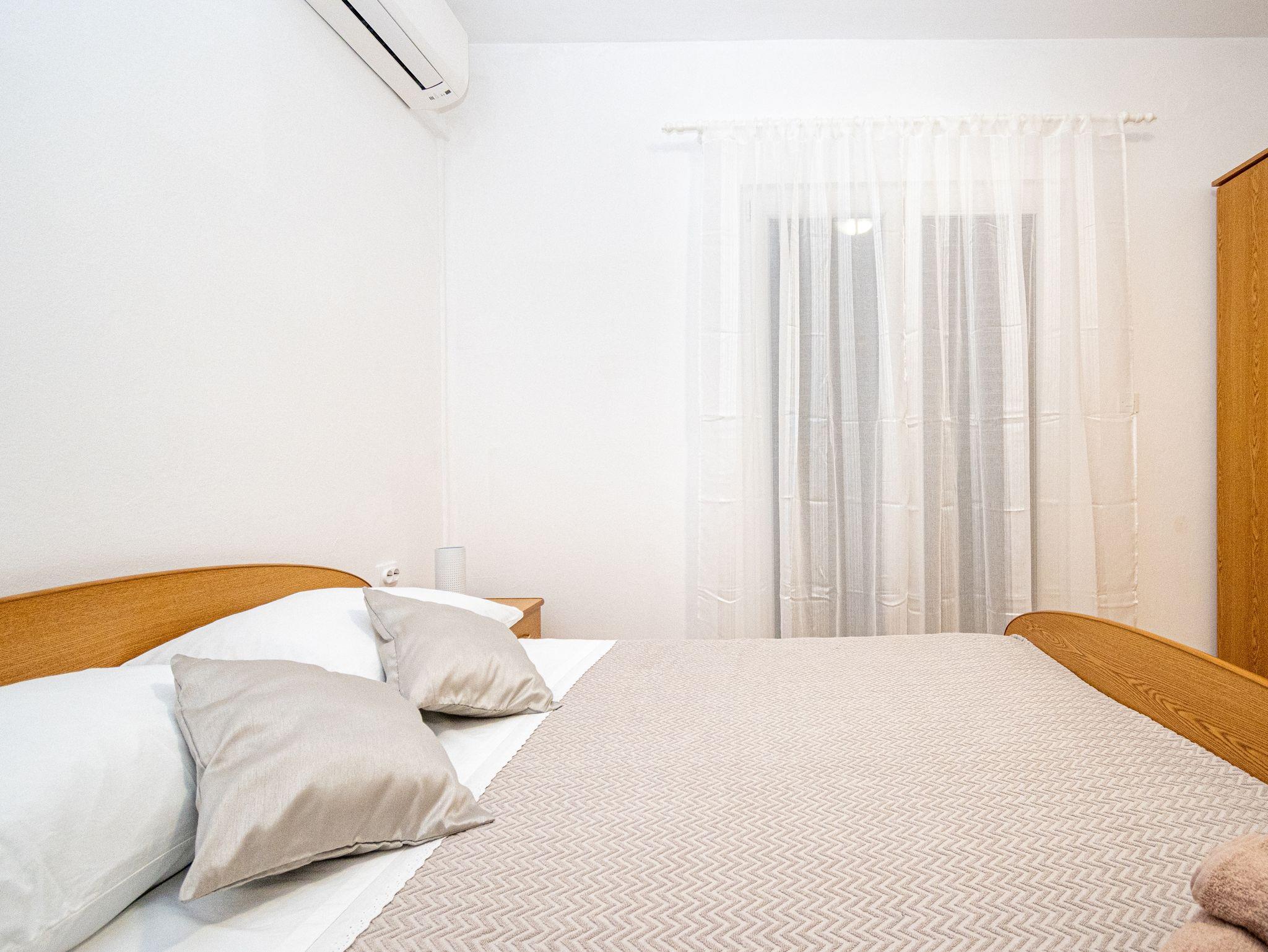 Ferienwohnung bietet Platz für 6 Gäste. Die Betten sind in Schlafzimmern, die es 2 gibt, und in Wohnzimmer, innerhalb einer Gesamtfläche von 73m2, angeordnet. Die Gäste haben eine eigene Terrasse zur Verfügung, auf der sie in warmen Sommernächten genießen können. Das Apartment bietet Meerblick. Es ist erlaubt, Speisen auf dem Gemeinschafts-Grill vorzubereiten. Über den Balkon der gebuchten UNterkunftseinheit gehen auch andere Gäste oder Vermieter. IM PREIS INBEGRIFFEN: Kurtaxe, Endreinigung, Klimatisierung, Parkplatz, Internet, Föhn. VERBINDLICHE ZUSÄTZLICHE KOSTEN: Aufzahlung für Kurzaufenthalte (prozentualer Zuschlag pro Nächtigungsanzahl: 30% - 1, 20% - 2, 10% - 3). Die Verfügbarkeit zusätzlicher Dienstleistungen in Ihrem reservierten Termin und die Preise derselben (falls nicht aufgeführt) müssen im Voraus überprüft werden. Zusätzliche Dienstleistungen die in der Zahlungsaufforderung nicht aufgeführt sind werden direkt beim Vermieter bezahlt, angenommen der Gast nutzt auch diese.
