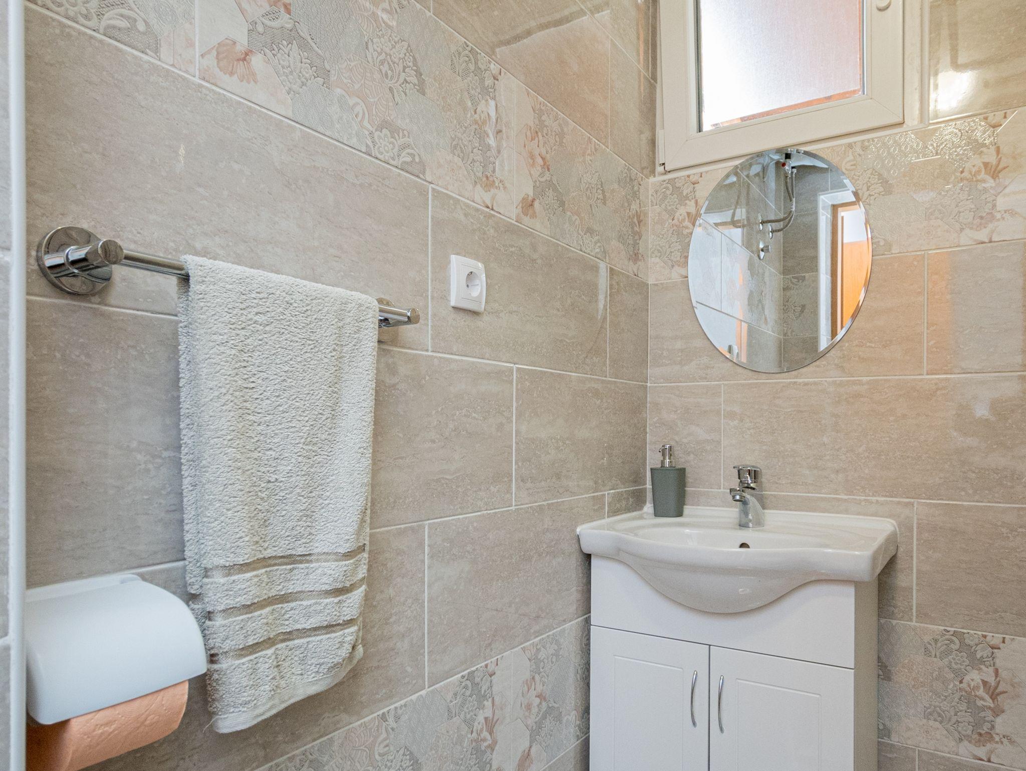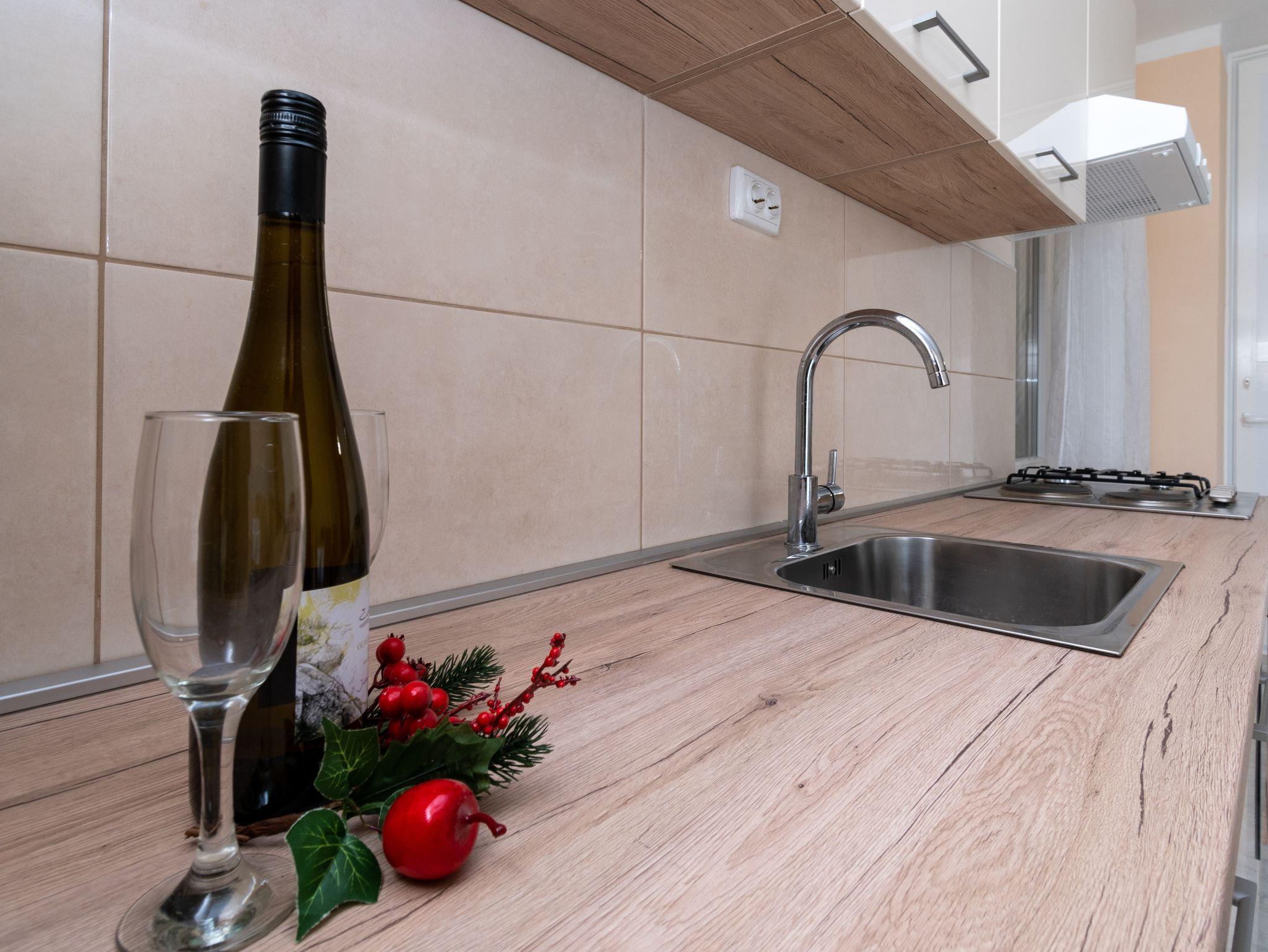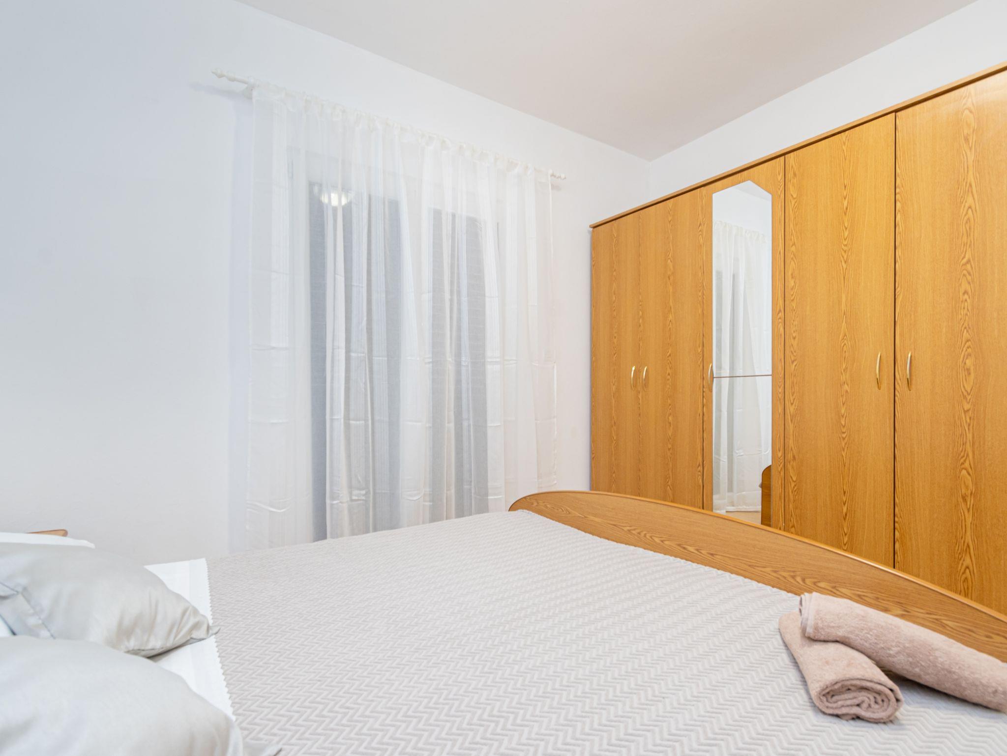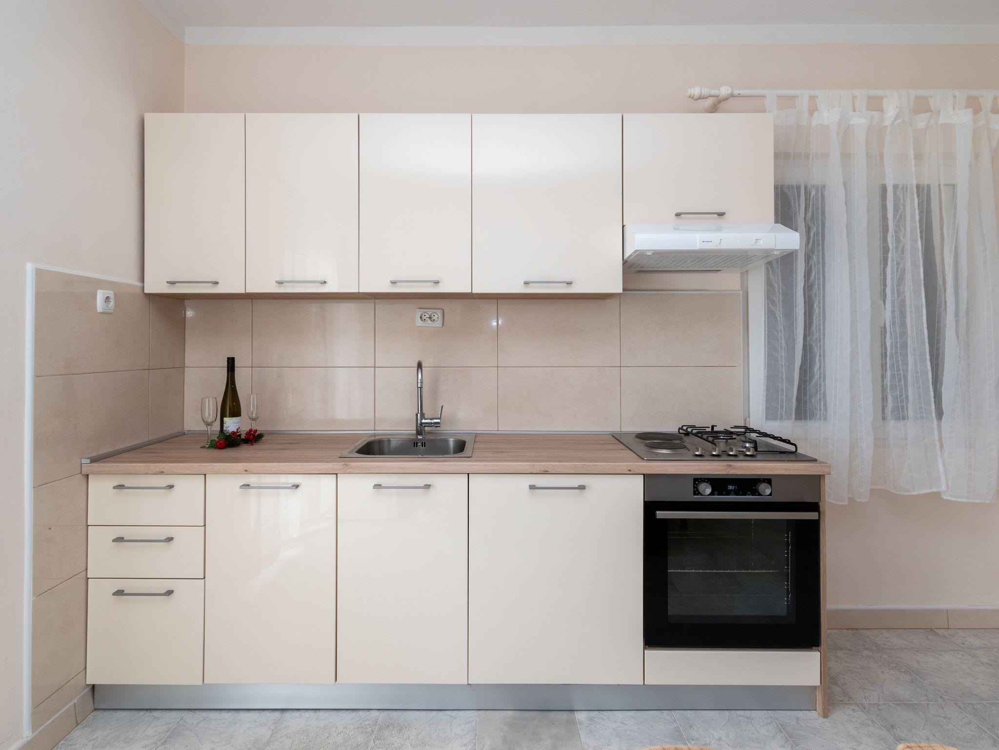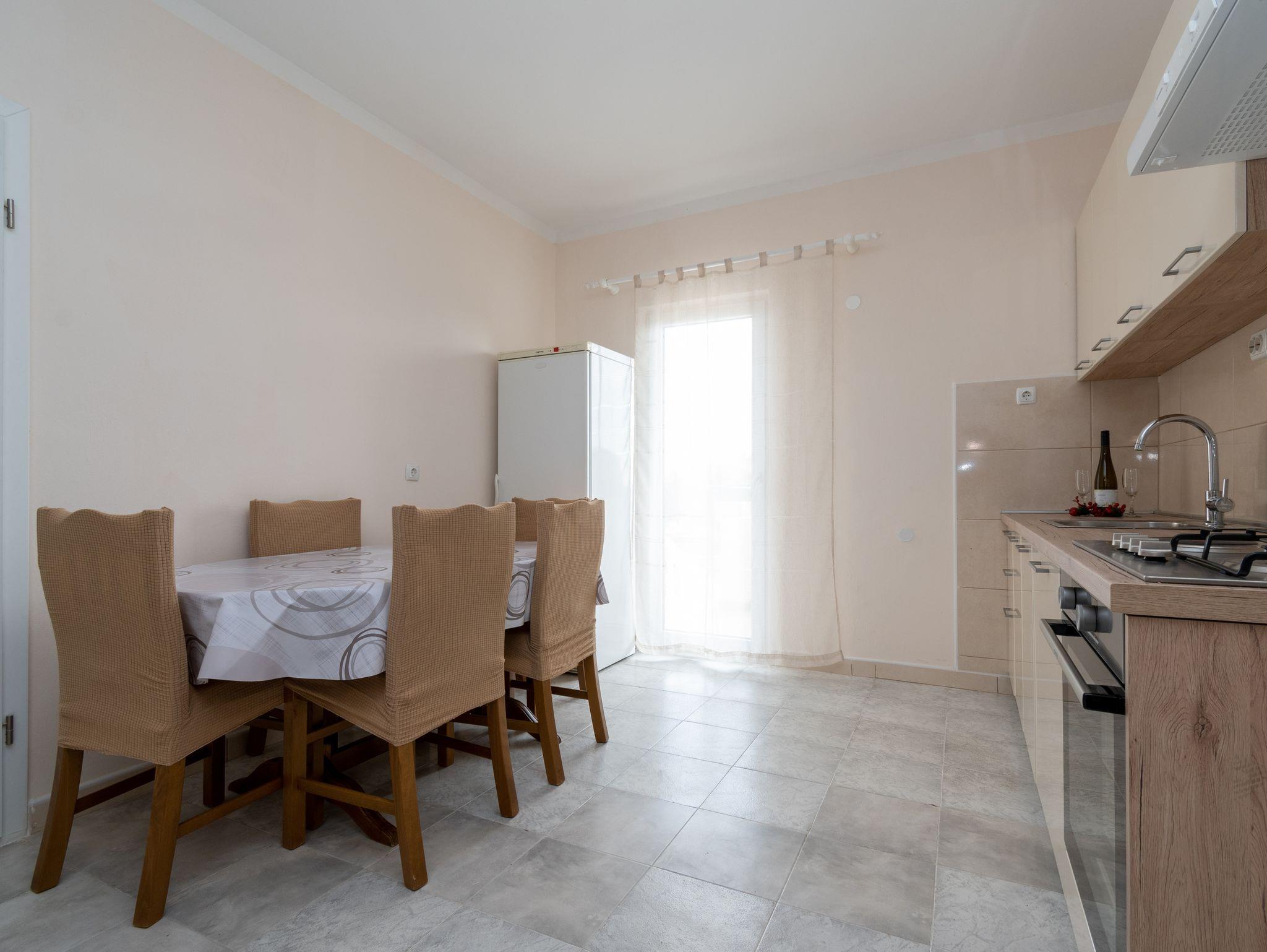 Ferienwohnung bietet Platz für 6 Gäste. Die Betten sind in Schlafzimmern, die es 2 gibt, und in Wohnzimmer, innerhalb einer Gesamtfläche von 73m2, angeordnet. Die Gäste haben eine eigene Terrasse zur Verfügung, auf der sie in warmen Sommernächten genießen können. Das Apartment bietet Meerblick. Es ist erlaubt, Speisen auf dem Gemeinschafts-Grill vorzubereiten. Über den Balkon der gebuchten UNterkunftseinheit gehen auch andere Gäste oder Vermieter. IM PREIS INBEGRIFFEN: Kurtaxe, Endreinigung, Klimatisierung, Parkplatz, Internet, Föhn. VERBINDLICHE ZUSÄTZLICHE KOSTEN: Aufzahlung für Kurzaufenthalte (prozentualer Zuschlag pro Nächtigungsanzahl: 30% - 1, 20% - 2, 10% - 3). Die Verfügbarkeit zusätzlicher Dienstleistungen in Ihrem reservierten Termin und die Preise derselben (falls nicht aufgeführt) müssen im Voraus überprüft werden. Zusätzliche Dienstleistungen die in der Zahlungsaufforderung nicht aufgeführt sind werden direkt beim Vermieter bezahlt, angenommen der Gast nutzt auch diese.