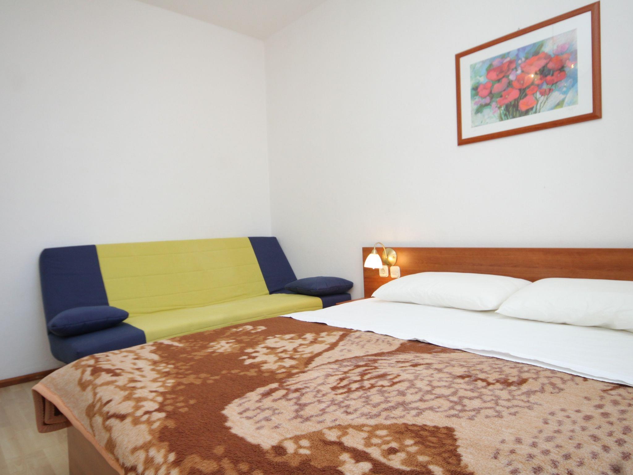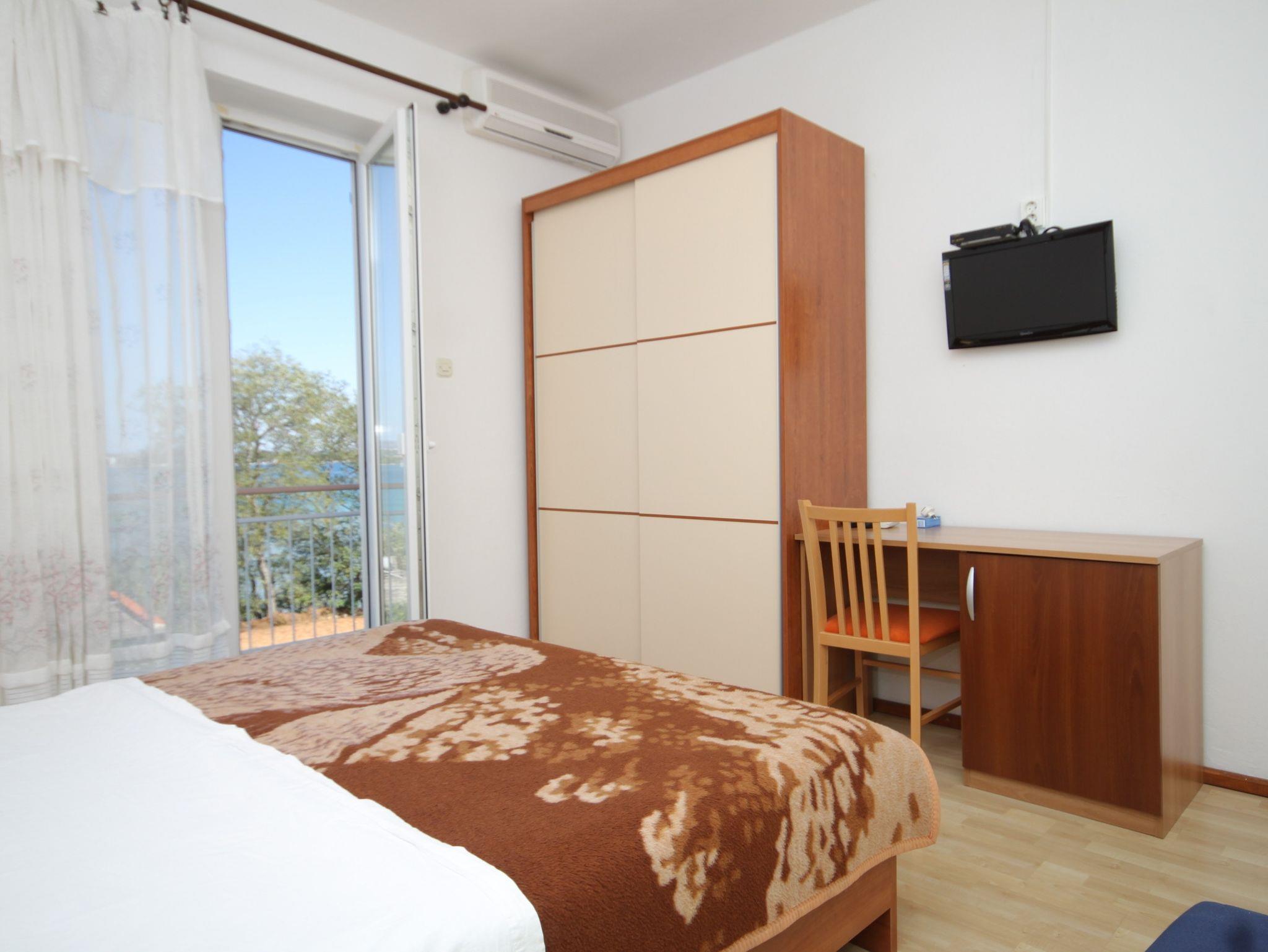 Zimmer bietet Platz für 2 Gäste. Die Betten sind in Schlafzimmern, die es 1 gibt, innerhalb einer Gesamtfläche von 18m2, angeordnet. Die Gäste haben einen eigenen Balkon zur Verfügung, auf der sie in warmen Sommernächten genießen können. Das Zimmer bietet Meerblick. Die reservierte Unterkunftseinheit ist ein Zimmer mit eigenem Badezimmer ohne die Möglichkeit der Nutzung einer Küche. IM PREIS INBEGRIFFEN: Kurtaxe, Endreinigung, Klimatisierung, Parkplatz, Internet, Kinderbett, Föhn. VERBINDLICHE ZUSÄTZLICHE KOSTEN: Aufzahlung für Kurzaufenthalte (prozentualer Zuschlag pro Nächtigungsanzahl: 30% - 1, 20% - 2, 10% - 3). UNVERBINDLICHE ZUSÄTZLICHE KOSTEN: Wäschewaschen (2,00 € Waschen). Die Verfügbarkeit zusätzlicher Dienstleistungen in Ihrem reservierten Termin und die Preise derselben (falls nicht aufgeführt) müssen im Voraus überprüft werden. Zusätzliche Dienstleistungen die in der Zahlungsaufforderung nicht aufgeführt sind werden direkt beim Vermieter bezahlt, angenommen der Gast nutzt auch diese. Ermäßigung auf den Grundpreis: Gratistag 14=13 (bei einem Aufenthalt von 14 Tagen oder mehr erhalten Sie einen Gratistag für den Aufenthalt bis 31.12.26).