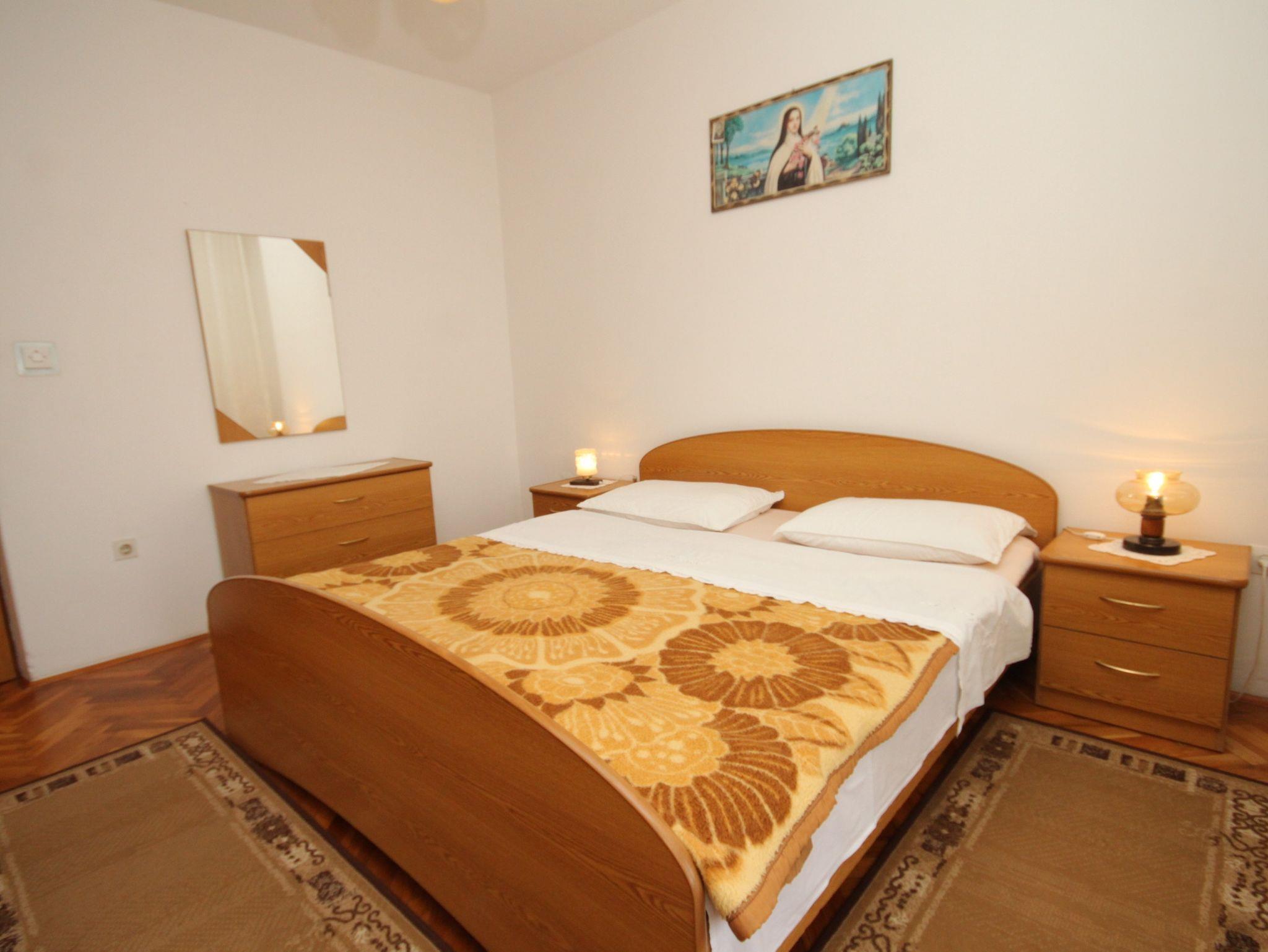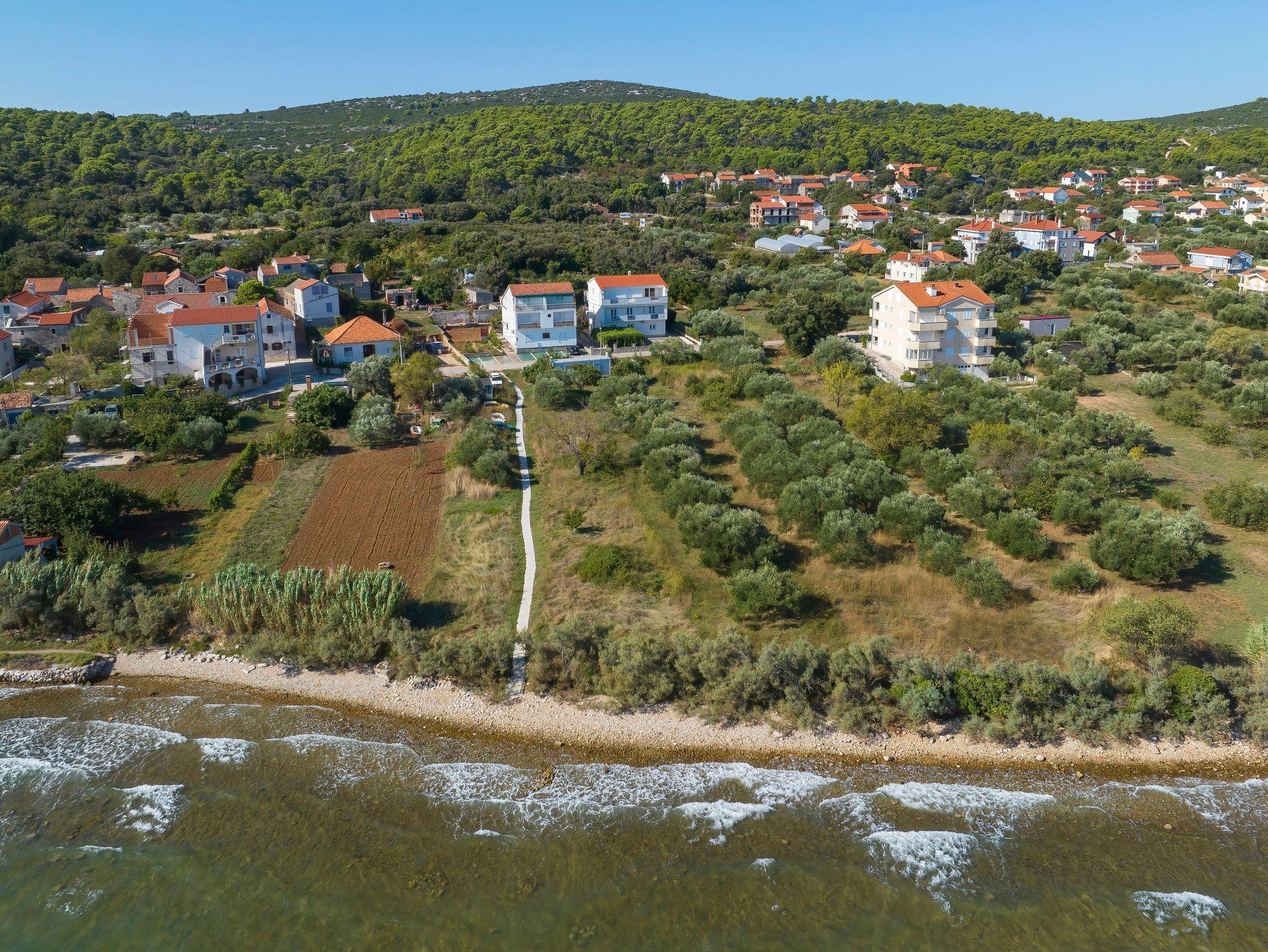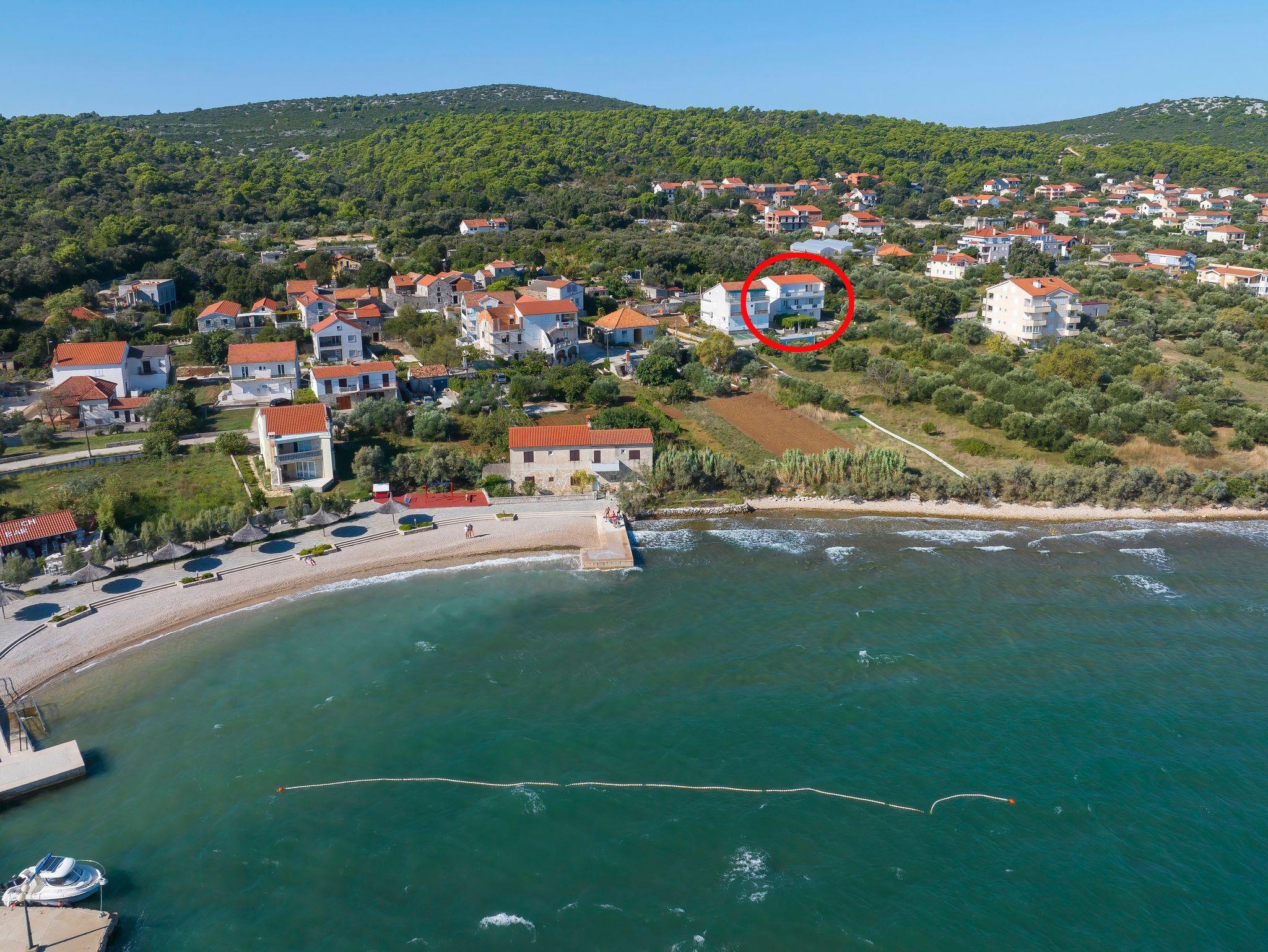Ferienwohnung bietet Platz für 7 Gäste. Die Betten sind in Schlafzimmern, die es 2 gibt, und in Wohnzimmer, innerhalb einer Gesamtfläche von 76m2, angeordnet. Die Gäste haben eine eigene Terrasse zur Verfügung, auf der sie in warmen Sommernächten genießen können. Das Apartment bietet Meerblick. Es ist erlaubt, Speisen auf dem Gemeinschafts-Grill vorzubereiten. In der Unterkunftseinheit besteht die Möglichkeit des Mitbringens von Haustieren gegen Aufpreis. IM PREIS INBEGRIFFEN: Kurtaxe, Endreinigung, Klimatisierung, Parkplatz, Internet, Bügeleisen, Bügelbrett, tragbarer Grill. VERBINDLICHE ZUSÄTZLICHE KOSTEN: Aufzahlung für Kurzaufenthalte (prozentualer Zuschlag pro Nächtigungsanzahl: 30% - 1, 20% - 2, 10% - 3). UNVERBINDLICHE ZUSÄTZLICHE KOSTEN: Wäschewaschen (10,00 € Waschen), Bootsanlegeplatz (5,00 € pro Nacht), Haustiere (10,00 € pro Nacht). Die Verfügbarkeit zusätzlicher Dienstleistungen in Ihrem reservierten Termin und die Preise derselben (falls nicht aufgeführt) müssen im Voraus überprüft werden. Zusätzliche Dienstleistungen die in der Zahlungsaufforderung nicht aufgeführt sind werden direkt beim Vermieter bezahlt, angenommen der Gast nutzt auch diese.