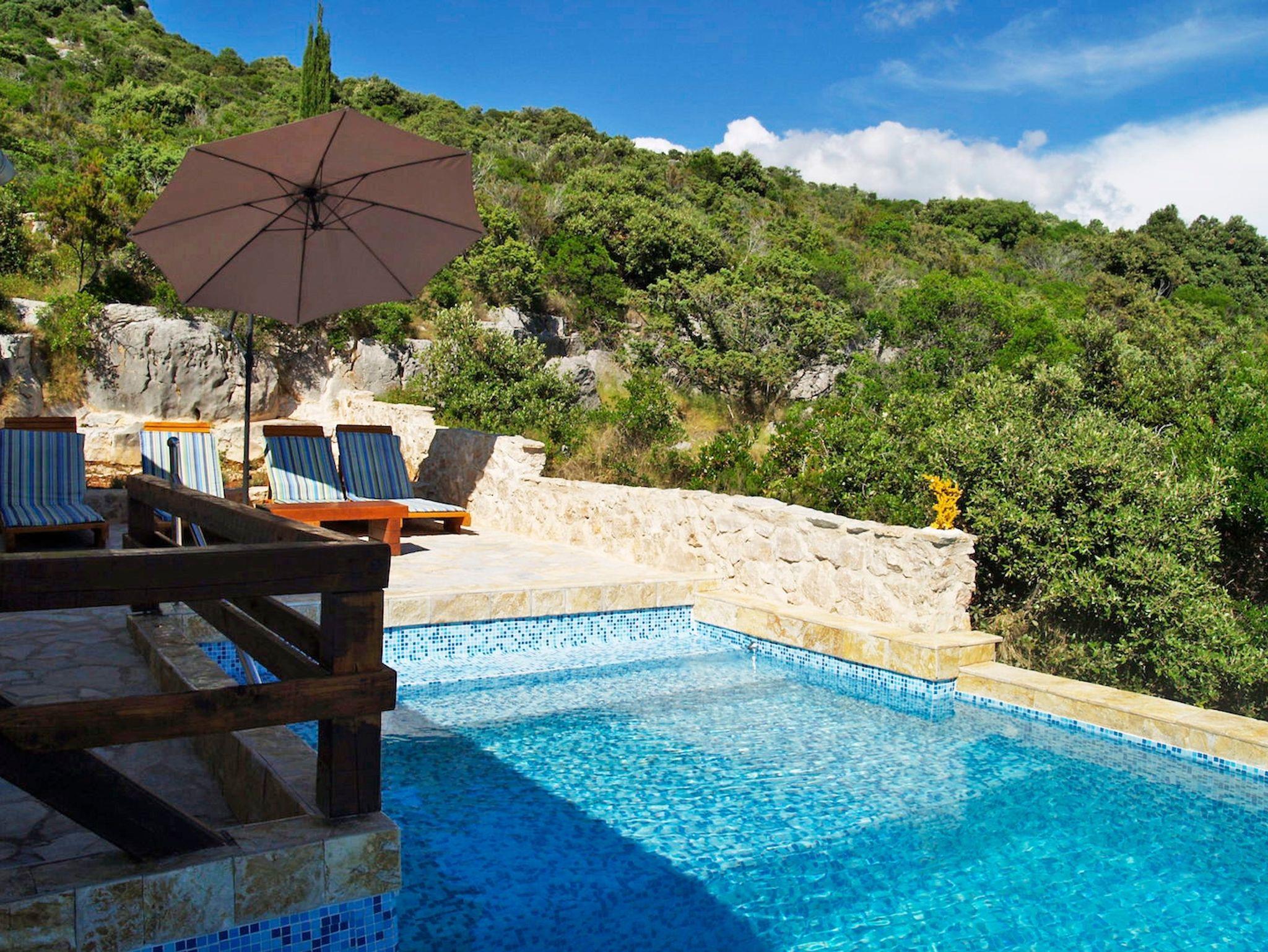 Hof (200m2, Sitzbereich), Parkplatz (Anzahl der Parkplätze: 1, Entfernung vom Objekt: im Hof), Pool: privat, Dimensionen: 5m x 5m x 1.4m, Wassertyp: Salzwasser, Bootsanlegeplatz (Entfernung vom Objekt: 50 m, Bootsanlegeplatztyp: an der Küste)