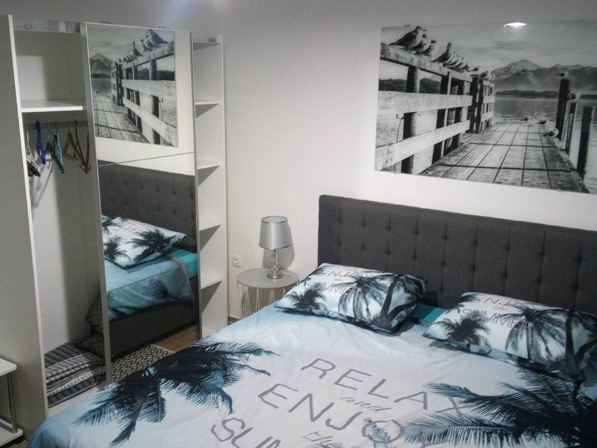 Ferienwohnung bietet Platz für 4 Gäste. Die Betten sind in Schlafzimmern, die es 2 gibt, innerhalb einer Gesamtfläche von 37m2, angeordnet. Die Gäste haben eine eigene Terrasse zur Verfügung, auf der sie in warmen Sommernächten genießen können. Es ist erlaubt, Speisen auf dem Gemeinschafts-Grill vorzubereiten. IM PREIS INBEGRIFFEN: Kurtaxe, Endreinigung, Parkplatz, Internet, Kinderbett, Bügeleisen, Bügelbrett, Föhn. VERBINDLICHE ZUSÄTZLICHE KOSTEN: Aufzahlung für Kurzaufenthalte (prozentualer Zuschlag pro Nächtigungsanzahl: 30% - 1, 20% - 2, 10% - 3). UNVERBINDLICHE ZUSÄTZLICHE KOSTEN: Klimatisierung (5,00 € pro Nacht), Zusatzbett (5,00 € pro Nacht). Die Verfügbarkeit zusätzlicher Dienstleistungen in Ihrem reservierten Termin und die Preise derselben (falls nicht aufgeführt) müssen im Voraus überprüft werden. Zusätzliche Dienstleistungen die in der Zahlungsaufforderung nicht aufgeführt sind werden direkt beim Vermieter bezahlt, angenommen der Gast nutzt auch diese.