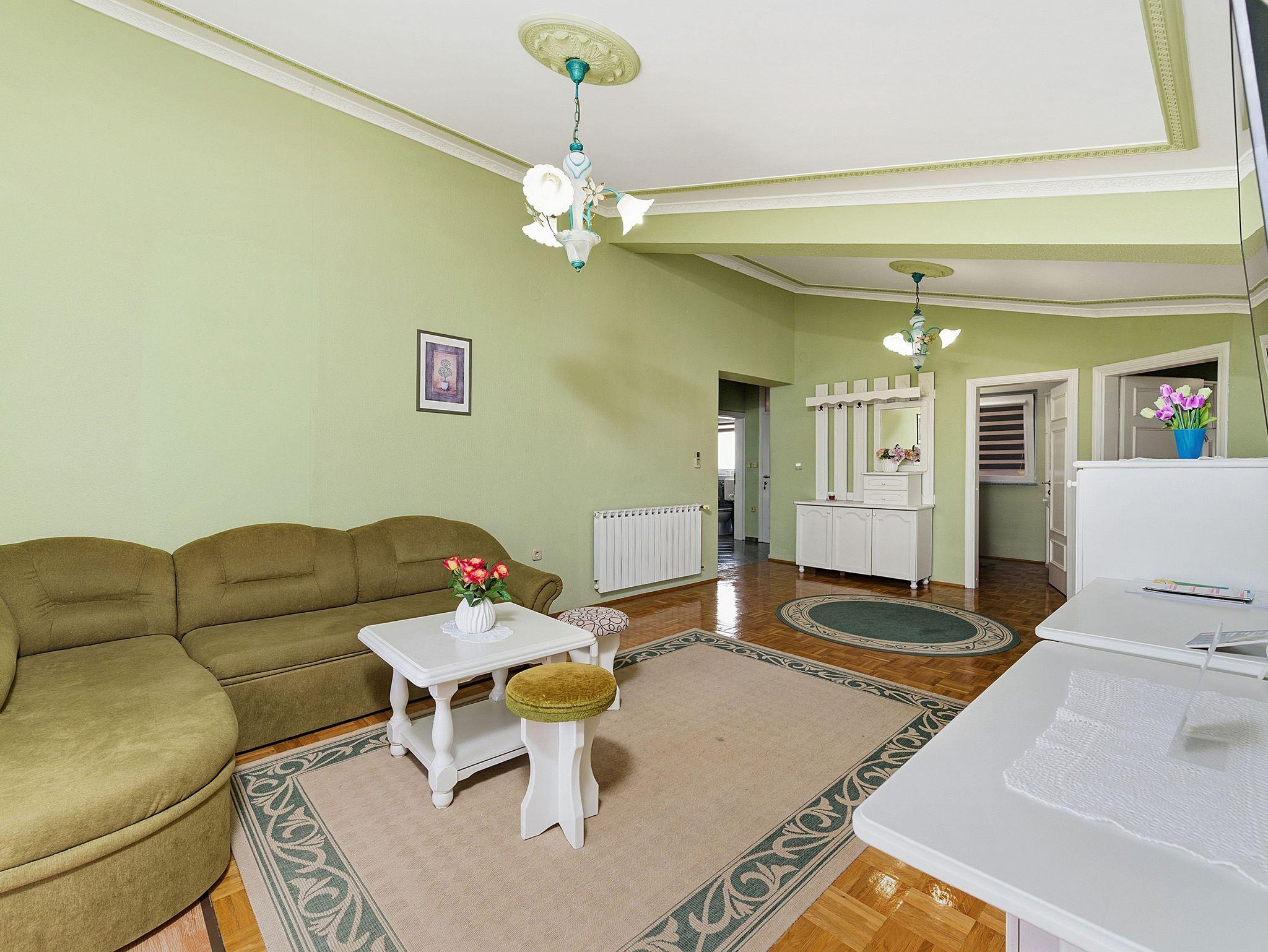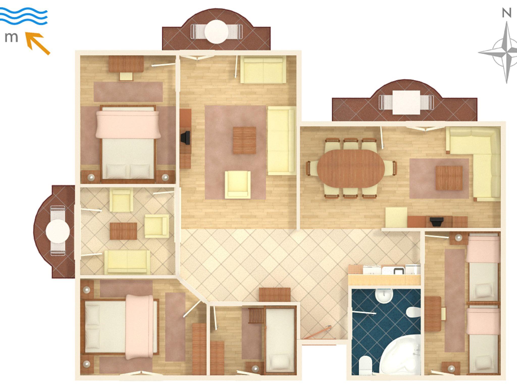 Ferienwohnung bietet Platz für 9 Gäste. Die Betten sind in Schlafzimmern, die es 4 gibt, und in Wohnzimmer, innerhalb einer Gesamtfläche von 98m2, angeordnet. Die Gäste haben einen eigenen Balkon zur Verfügung, auf der sie in warmen Sommernächten genießen können. Das Apartment bietet Meerblick. Es ist erlaubt, Speisen auf dem Gemeinschafts-Grill vorzubereiten. Während ihres Aufenthalts können Gäste das gemeinsam zur Nutzung stehende Schwimmbad benutzen. IM PREIS INBEGRIFFEN: Kurtaxe, Endreinigung, Klimatisierung, Zentralheizung, Pool, Parkplatz, Internet, Kinderbett, Zusatzbett, Bügeleisen, Bügelbrett, Föhn, Sonnenschirm, Liegestühle. VERBINDLICHE ZUSÄTZLICHE KOSTEN: Aufzahlung für Kurzaufenthalte (prozentualer Zuschlag pro Nächtigungsanzahl: 30% - 1, 20% - 2, 10% - 3). UNVERBINDLICHE ZUSÄTZLICHE KOSTEN: Frühstück (10,00 €, 50% Nachlass für Kinder zwischen 4 und 12 Jahren, Kinder bis 4 Jahre sind frei.), Halbpension (25,00 €, 50% Nachlass für Kinder zwischen 4 und 12 Jahren, Kinder bis 4 Jahre sind frei.), Vollpension (40,00 €, 50% Nachlass für Kinder zwischen 4 und 12 Jahren, Kinder bis 4 Jahre sind frei.). Die Verfügbarkeit zusätzlicher Dienstleistungen in Ihrem reservierten Termin und die Preise derselben (falls nicht aufgeführt) müssen im Voraus überprüft werden. Zusätzliche Dienstleistungen die in der Zahlungsaufforderung nicht aufgeführt sind werden direkt beim Vermieter bezahlt, angenommen der Gast nutzt auch diese.