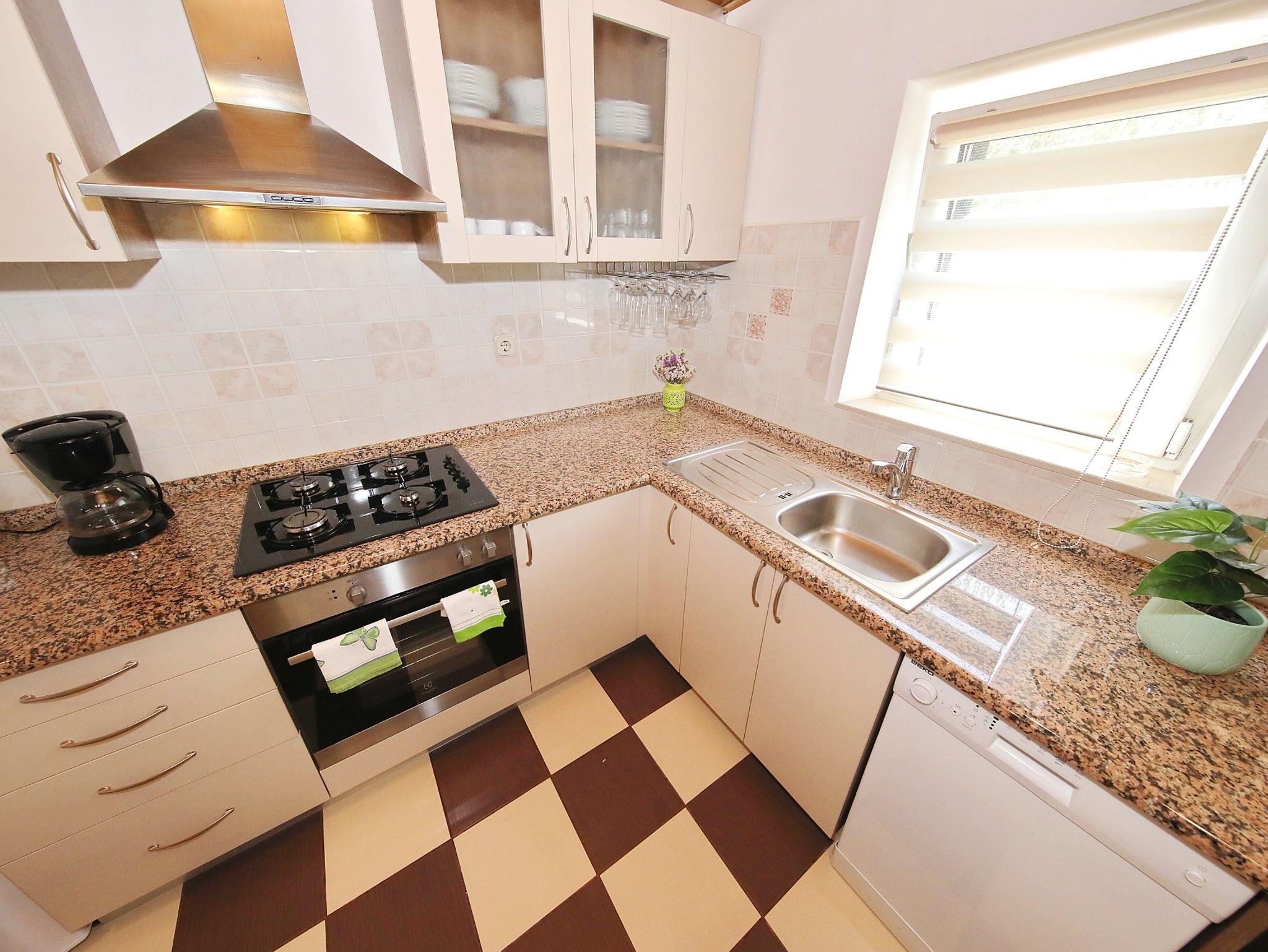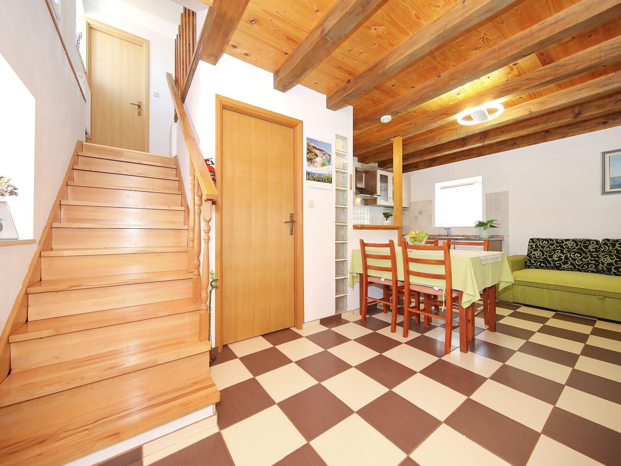 Haus bietet Platz für 4 Gäste. Die Betten sind in Schlafzimmern, die es 2 gibt, innerhalb einer Gesamtfläche von 60m2, angeordnet. Die Gäste haben eine eigene Terrasse zur Verfügung, auf der sie in warmen Sommernächten genießen können. Das Haus bietet Meerblick. Für vollen Genuss und Entspannung gibt es einen privaten Grill für Gäste dieser Unterkunft. In der Unterkunftseinheit besteht die Möglichkeit des Mitbringens von Haustieren gegen Aufpreis. IM PREIS INBEGRIFFEN: Kurtaxe, Endreinigung, Klimatisierung, Parkplatz, Internet, Bootsanlegeplatz, Föhn, Liegestühle, 1 Bett für Kinder (im Preis enthalten). VERBINDLICHE ZUSÄTZLICHE KOSTEN: Aufzahlung für Kurzaufenthalte (prozentualer Zuschlag pro Nächtigungsanzahl: 30% - 1, 20% - 2, 10% - 3). UNVERBINDLICHE ZUSÄTZLICHE KOSTEN: Zentralheizung (10,00 € pro Nacht), Haustiere (30,00 € pro Nacht). Die Verfügbarkeit zusätzlicher Dienstleistungen in Ihrem reservierten Termin und die Preise derselben (falls nicht aufgeführt) müssen im Voraus überprüft werden. Zusätzliche Dienstleistungen die in der Zahlungsaufforderung nicht aufgeführt sind werden direkt beim Vermieter bezahlt, angenommen der Gast nutzt auch diese. Ermäßigung auf den Grundpreis: Gratistag 14=13 (bei einem Aufenthalt von 14 Tagen oder mehr erhalten Sie einen Gratistag für den Aufenthalt bis 31.12.26).