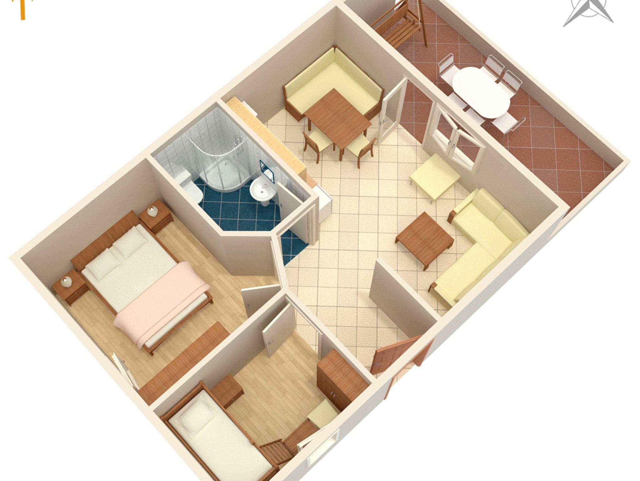 Ferienwohnung bietet Platz für 5 Gäste. Die Betten sind in Schlafzimmern, die es 2 gibt, und in Wohnzimmer, innerhalb einer Gesamtfläche von 42m2, angeordnet. Die Gäste haben eine eigene Terrasse zur Verfügung, auf der sie in warmen Sommernächten genießen können. Das Apartment bietet Meerblick. Es ist erlaubt, Speisen auf dem Gemeinschafts-Grill vorzubereiten. Während ihres Aufenthalts können Gäste das gemeinsam zur Nutzung stehende Schwimmbad benutzen. IM PREIS INBEGRIFFEN: Kurtaxe, Endreinigung, Klimatisierung, Zentralheizung, Pool, Parkplatz, Internet, Kinderbett, Zusatzbett, Bügeleisen, Bügelbrett, Föhn, Sonnenschirm, Liegestühle. VERBINDLICHE ZUSÄTZLICHE KOSTEN: Aufzahlung für Kurzaufenthalte (prozentualer Zuschlag pro Nächtigungsanzahl: 30% - 1, 20% - 2, 10% - 3). UNVERBINDLICHE ZUSÄTZLICHE KOSTEN: Frühstück (10,00 €, 50% Nachlass für Kinder zwischen 4 und 12 Jahren, Kinder bis 4 Jahre sind frei.), Halbpension (25,00 €, 50% Nachlass für Kinder zwischen 4 und 12 Jahren, Kinder bis 4 Jahre sind frei.), Vollpension (40,00 €, 50% Nachlass für Kinder zwischen 4 und 12 Jahren, Kinder bis 4 Jahre sind frei.). Die Verfügbarkeit zusätzlicher Dienstleistungen in Ihrem reservierten Termin und die Preise derselben (falls nicht aufgeführt) müssen im Voraus überprüft werden. Zusätzliche Dienstleistungen die in der Zahlungsaufforderung nicht aufgeführt sind werden direkt beim Vermieter bezahlt, angenommen der Gast nutzt auch diese.