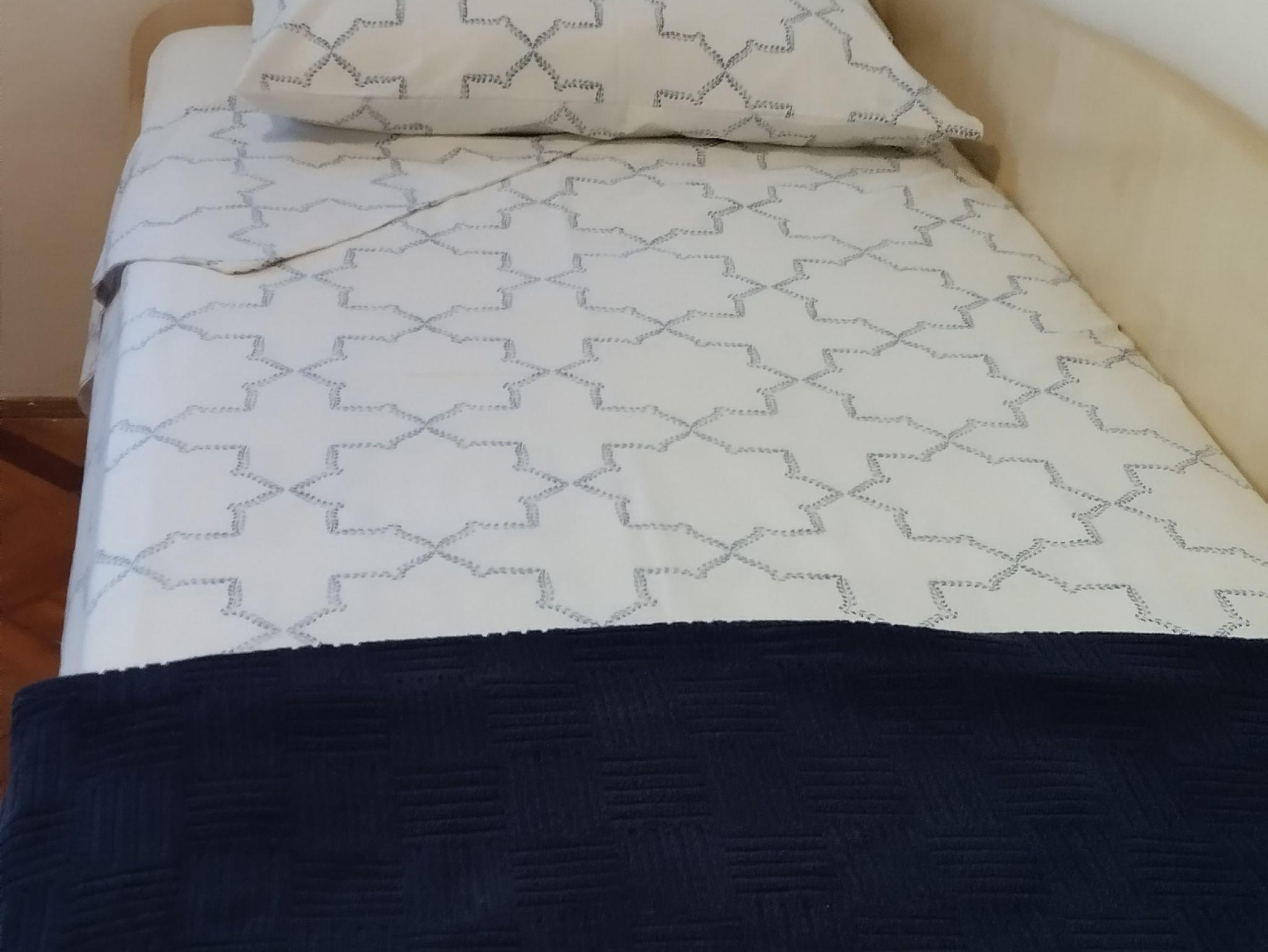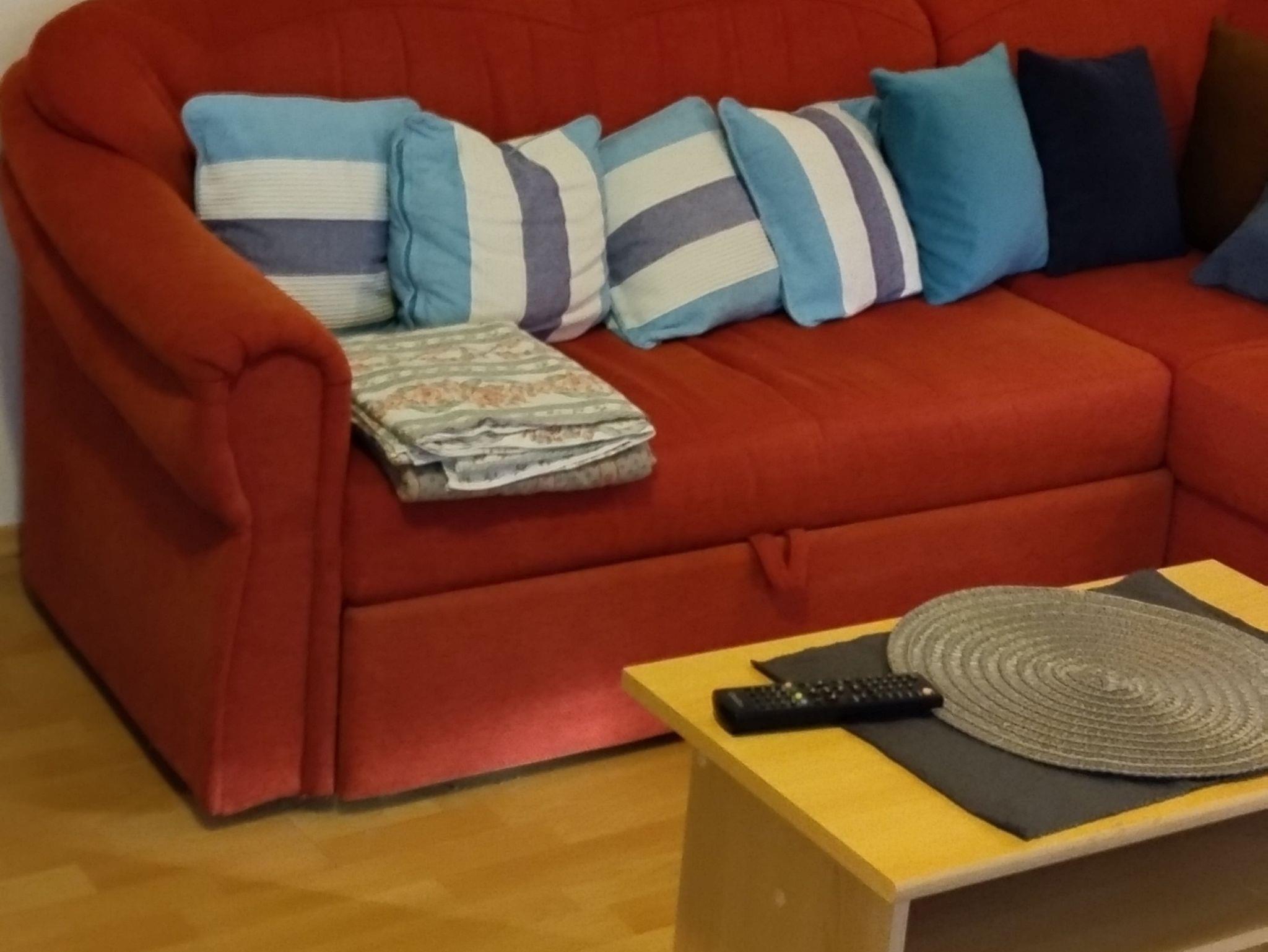 Ferienwohnung bietet Platz für 7 Gäste. Die Betten sind in Schlafzimmern, die es 3 gibt, innerhalb einer Gesamtfläche von 59m2, angeordnet. Die Gäste haben eine eigene Terrasse zur Verfügung, auf der sie in warmen Sommernächten genießen können. Das Apartment bietet Meerblick. Es ist erlaubt, Speisen auf dem Gemeinschafts-Grill vorzubereiten. In der Unterkunftseinheit besteht die Möglichkeit des Mitbringens von Haustieren, und die Dienstleistung ist im Preis der Unterkunft enthalten. IM PREIS INBEGRIFFEN: Kurtaxe, Endreinigung, Klimatisierung, Parkplatz, Internet, Haustiere, Föhn, Sonnenschirm, Liegestühle. VERBINDLICHE ZUSÄTZLICHE KOSTEN: Aufzahlung für Kurzaufenthalte (prozentualer Zuschlag pro Nächtigungsanzahl: 30% - 1, 20% - 2, 10% - 3). Die Verfügbarkeit zusätzlicher Dienstleistungen in Ihrem reservierten Termin und die Preise derselben (falls nicht aufgeführt) müssen im Voraus überprüft werden. Zusätzliche Dienstleistungen die in der Zahlungsaufforderung nicht aufgeführt sind werden direkt beim Vermieter bezahlt, angenommen der Gast nutzt auch diese.