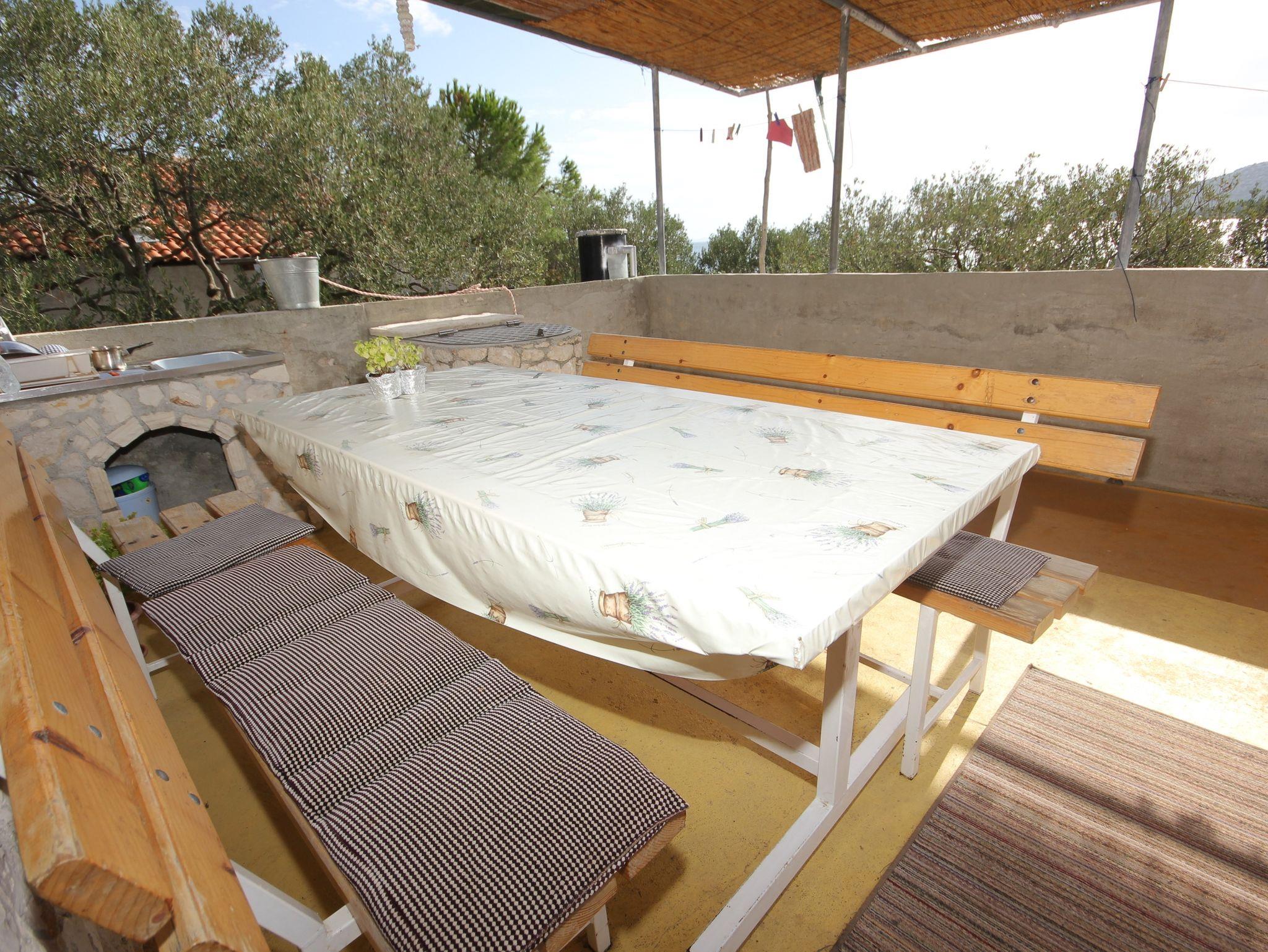 Haus bietet Platz für 6 Gäste. Die Betten sind in Schlafzimmern, die es 3 gibt, innerhalb einer Gesamtfläche von 78m2, angeordnet. Die Gäste haben eine eigene Terrasse zur Verfügung, auf der sie in warmen Sommernächten genießen können. Das Haus bietet Meerblick. Für vollen Genuss und Entspannung gibt es einen privaten Grill für Gäste dieser Unterkunft. In der Unterkunftseinheit besteht die Möglichkeit des Mitbringens von Haustieren gegen Aufpreis. IM PREIS INBEGRIFFEN: Kurtaxe, Endreinigung, Bootsanlegeplatz, Sonnenschirm, Liegestühle. VERBINDLICHE ZUSÄTZLICHE KOSTEN: Aufzahlung für Kurzaufenthalte (prozentualer Zuschlag pro Nächtigungsanzahl: 30% - 1, 20% - 2, 10% - 3). UNVERBINDLICHE ZUSÄTZLICHE KOSTEN: Haustiere (5,00 € pro Nacht), 2 Kinderbettchen (7,00 € Person/Tag). Die Verfügbarkeit zusätzlicher Dienstleistungen in Ihrem reservierten Termin und die Preise derselben (falls nicht aufgeführt) müssen im Voraus überprüft werden. Zusätzliche Dienstleistungen die in der Zahlungsaufforderung nicht aufgeführt sind werden direkt beim Vermieter bezahlt, angenommen der Gast nutzt auch diese.