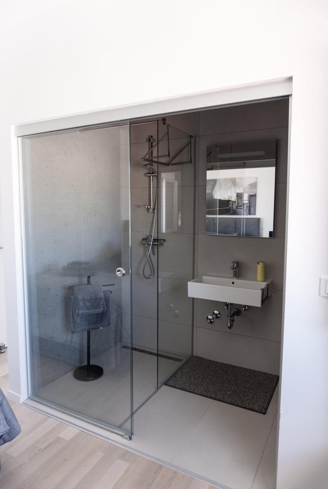 -2 Bäder mit moderner Keramik, beleuchteten Spiegeln, bodengleichen Duschen, Föhn + Handtüchern für den Hausgebrauch.