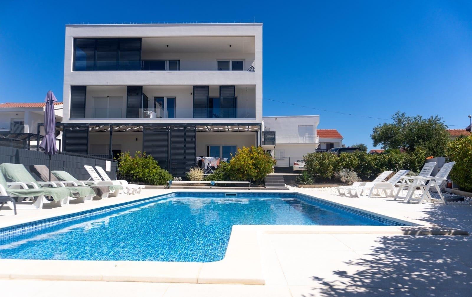 100 m2, mit traumhaftem Meerblick, Pool , Privatparkplatz im Hof.