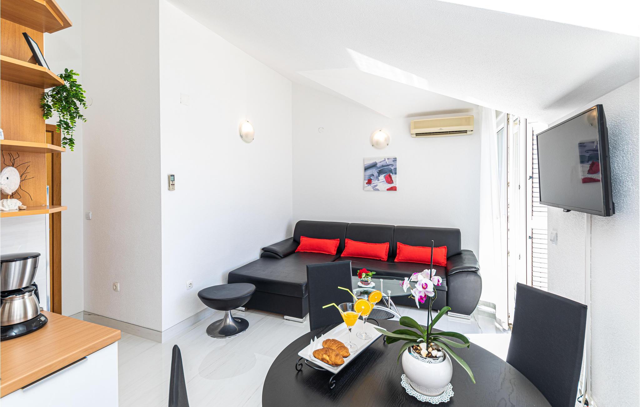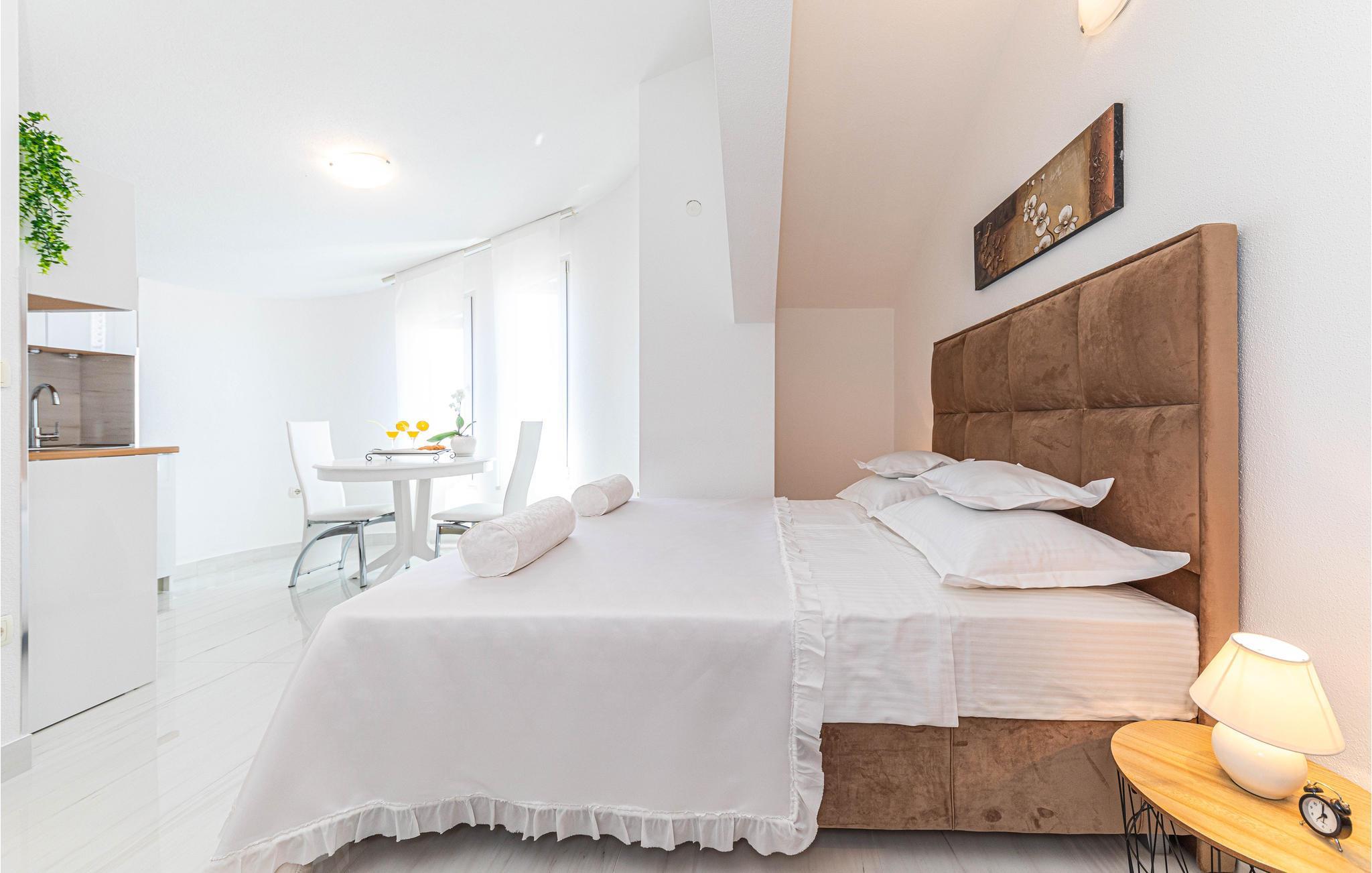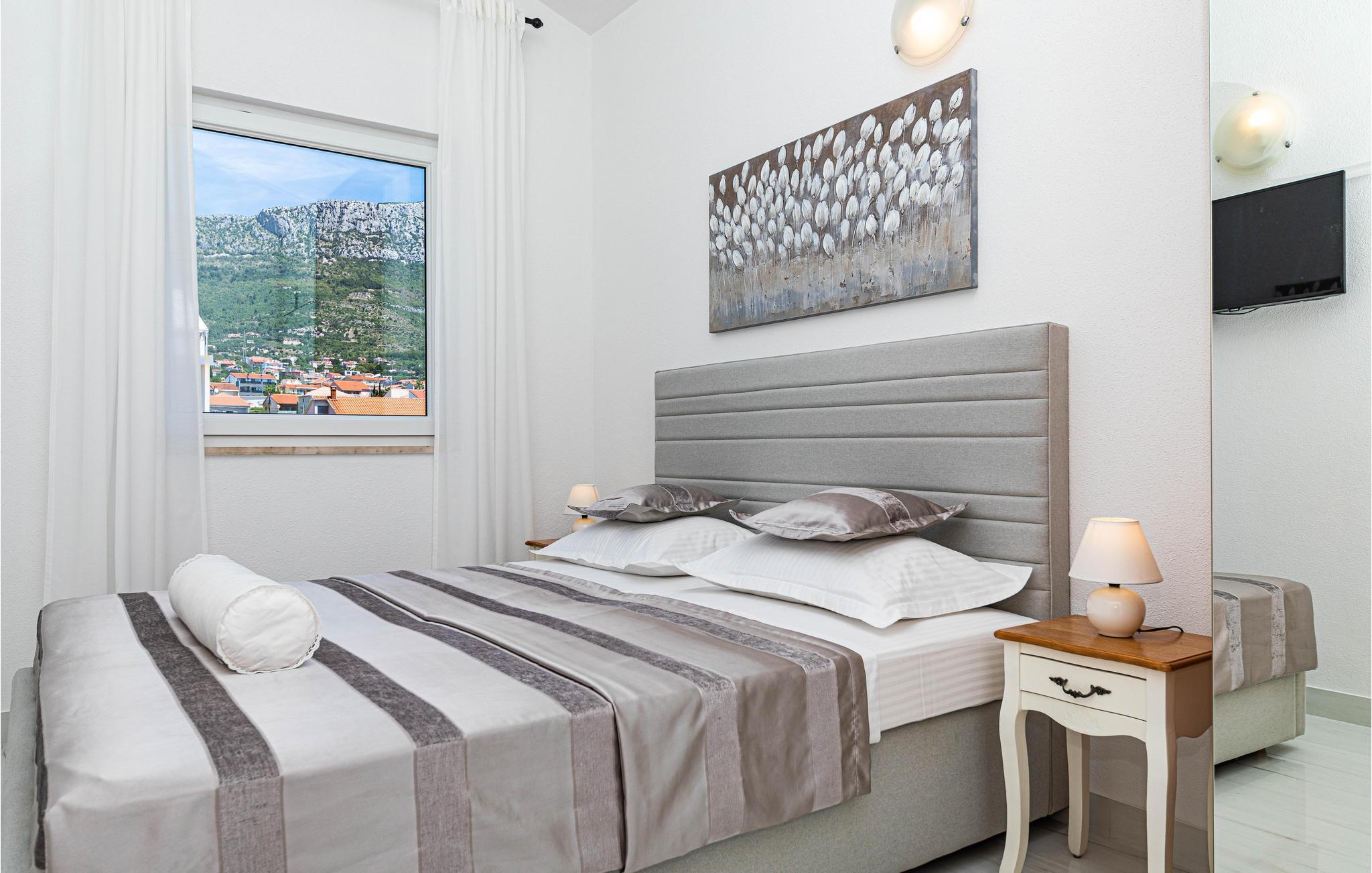 Denne skønt indrettede ferielejlighed ligger på anden sal i et privat hus, som den eneste lejlighed der benyttes til feriegæster. Lejligheden er delt op i to enheder, der er forbundet via en gang. Den ene afdeling er S3, der er en lille lejlighed med køkken og eget badeværelse. Laveste loftshøjde er 170 cm. I stueplan er der terrasse med grill til rådighed. Nyd solen og havet ved den nærliggende strand som I kan gå til på få minutter. Besøg byerne Trogir og Split som er rige på kultur, seværdigheder og sommerarrangementer.