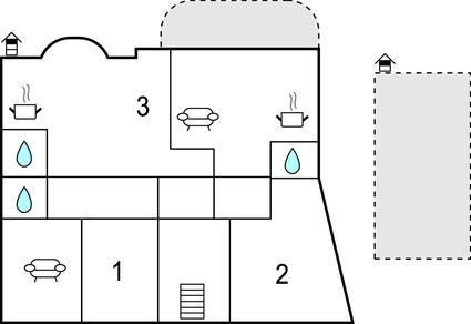 Badeværelse (nr. 3) - WC. Varmt og koldt vand. Bruser