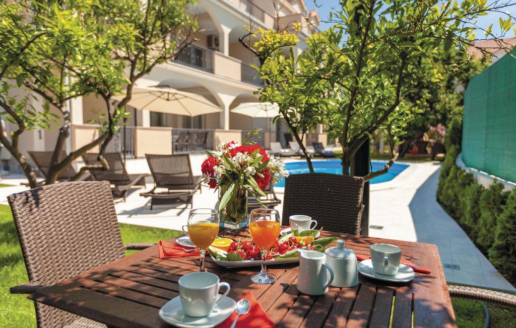 Hold jeres ferie i en af fire ferielejligheder med adgang til en fælles swimmingpool og whirlpool. CDE455 rummer to lejligheder og to yderligere soveværelser, med skrå vægge. Huset ligger i Kastel Stafilic, kun ca. 2 km fra Trogirs gamle bydel som er med på Unescos kulturarvsliste. På grunden er der et havehus, et udendørs køkken, grill og legeplads til de mindste. I huset er der også underholdningsmuligheder som billard, bordtennis, dart og motionscykel, det hele til fælles brug for alle gæster. En glimrende feriebolig til jer der rejser rigtig mange sammen. Herfra er det oplagt at besøge Split med en vidunderlige gammel bydel, som bestemt er oplagt til en dagsudflugt.
