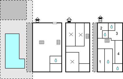 På første sal er der en rummelig stue, køkken og toilet. I gangen fører trapper til stueetagen, hvor der er et vaskeri og husrum. Fra stuen og spisepladsen når I en overdækket terrasse med en vidunderlig pool, som tilbyder jer den nødvendige forfriskning på varme sommerdage.