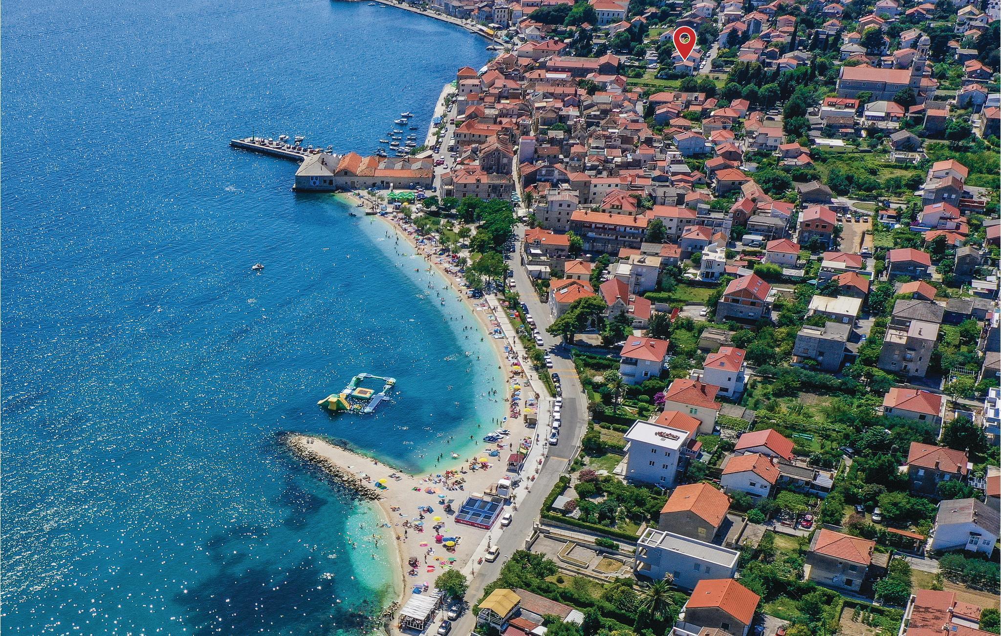 Til dette feriehus med pool hører en stor have, hvor børnene kan leje med forskellige legeredskaber. I huset er der indre trappe der forbinder de to lejligheder og husets store fordel er, det ligger lige i centrum. Restaurant, isbar, post og promenade ligger blot 100 skridt væk. I haven kan I tilberede mad på grillen og nyde feriedagen i fred og ro. Fra balkonen på første sal er der en skøn udsigt over havet. På få minutter i bil, kommer i til byerne Trogir, Split, ruinbyen Salona, Kaštelamarinaen, store indkøbscentre og lufthavnen.