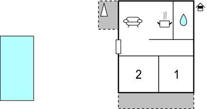 Opholdsstue/køkken - 2 Sovepladser. (Sofa, madras eller lignende).