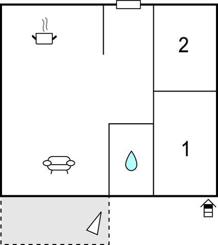 Opholdsstue/køkken 24m2 - 2 Sovepladser. (Sofa, madras eller lignende).
