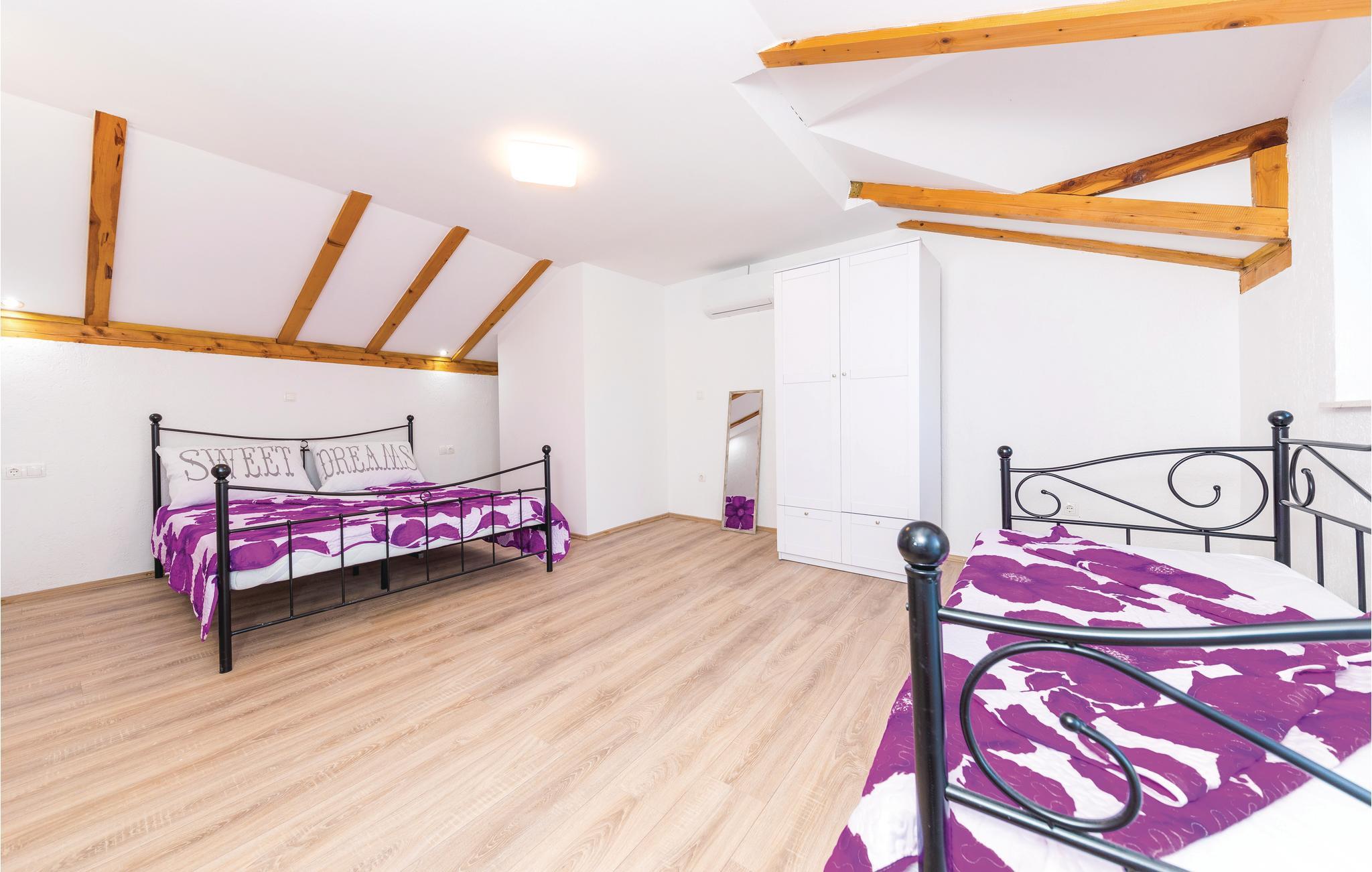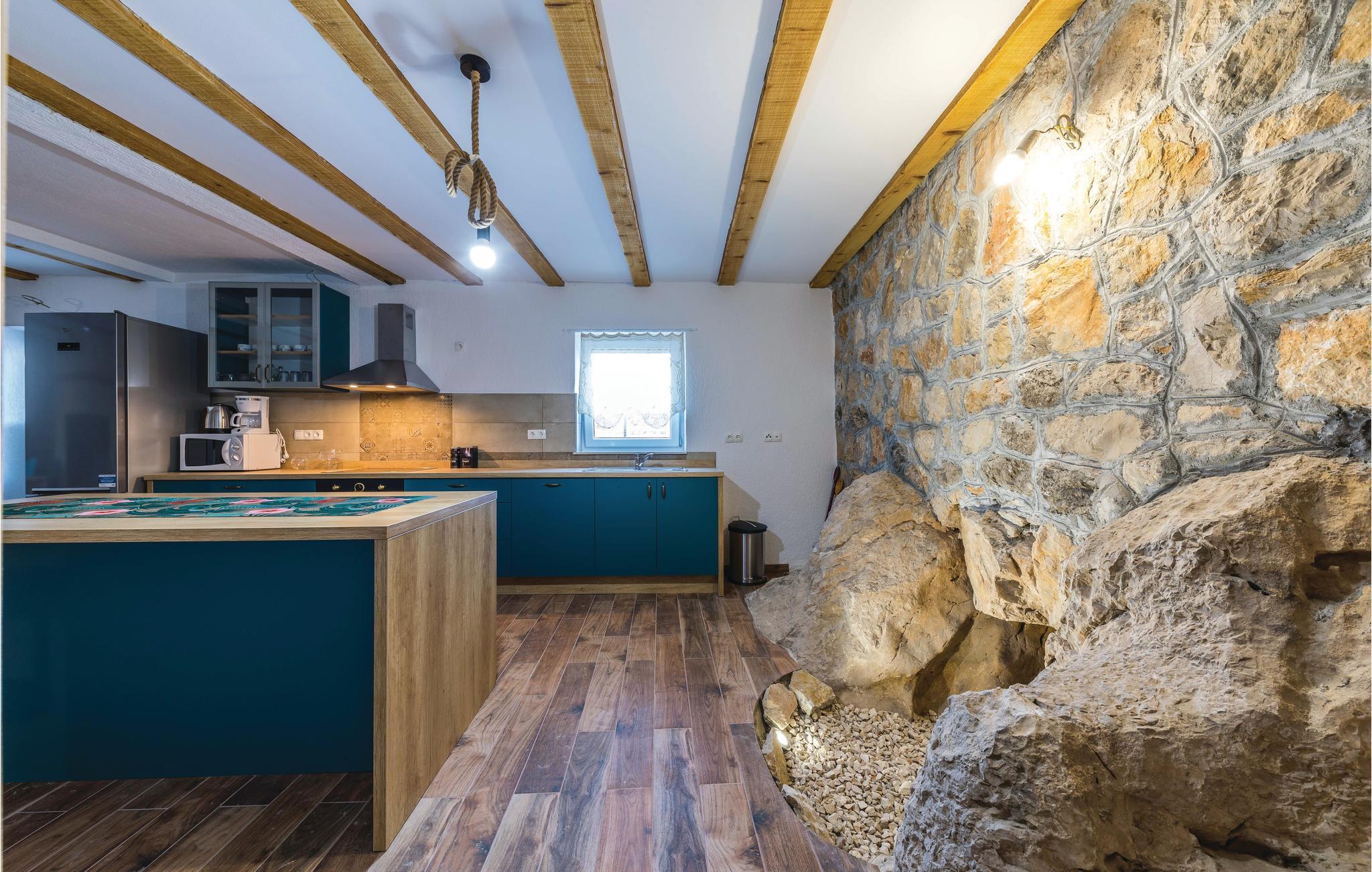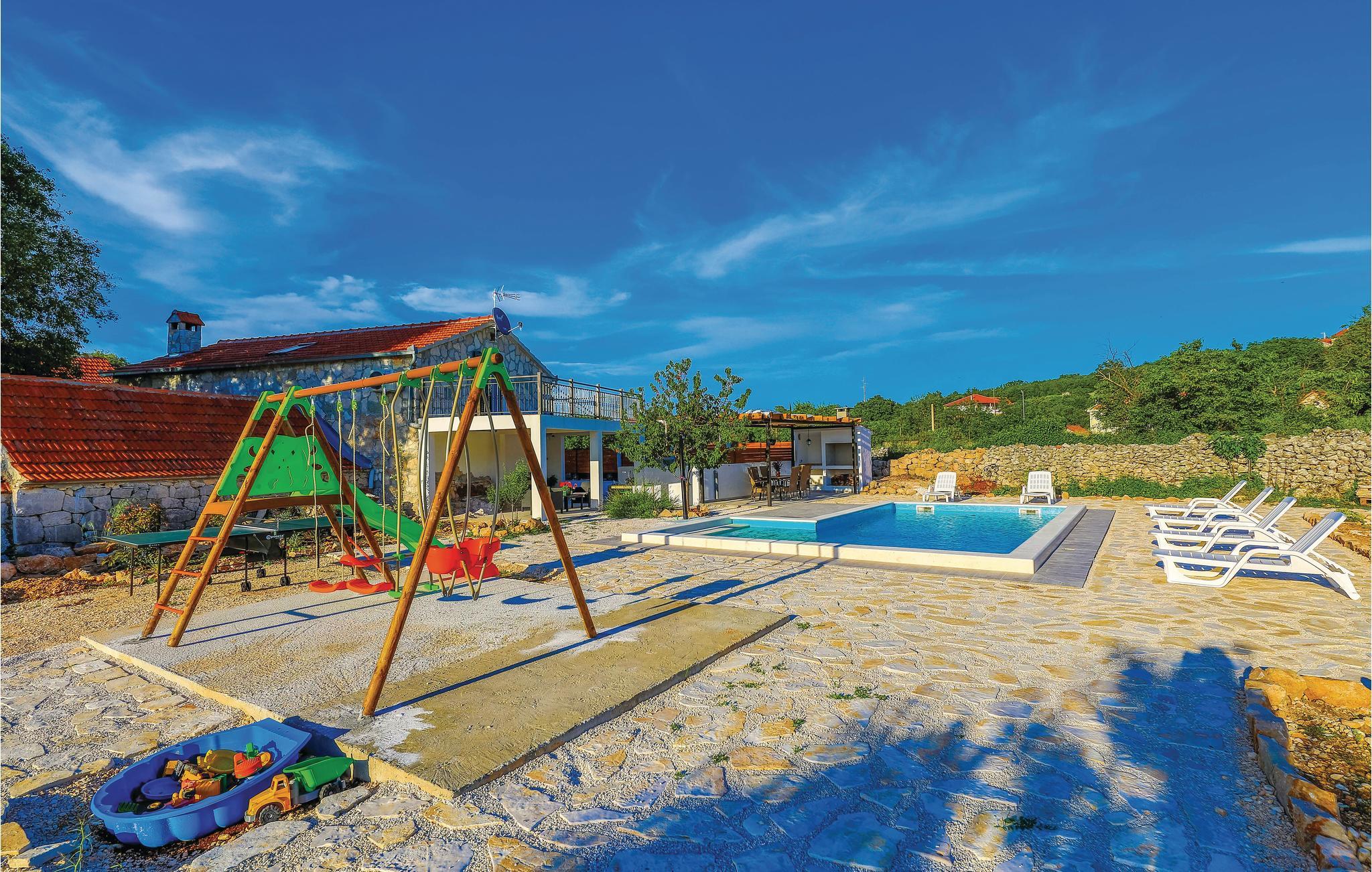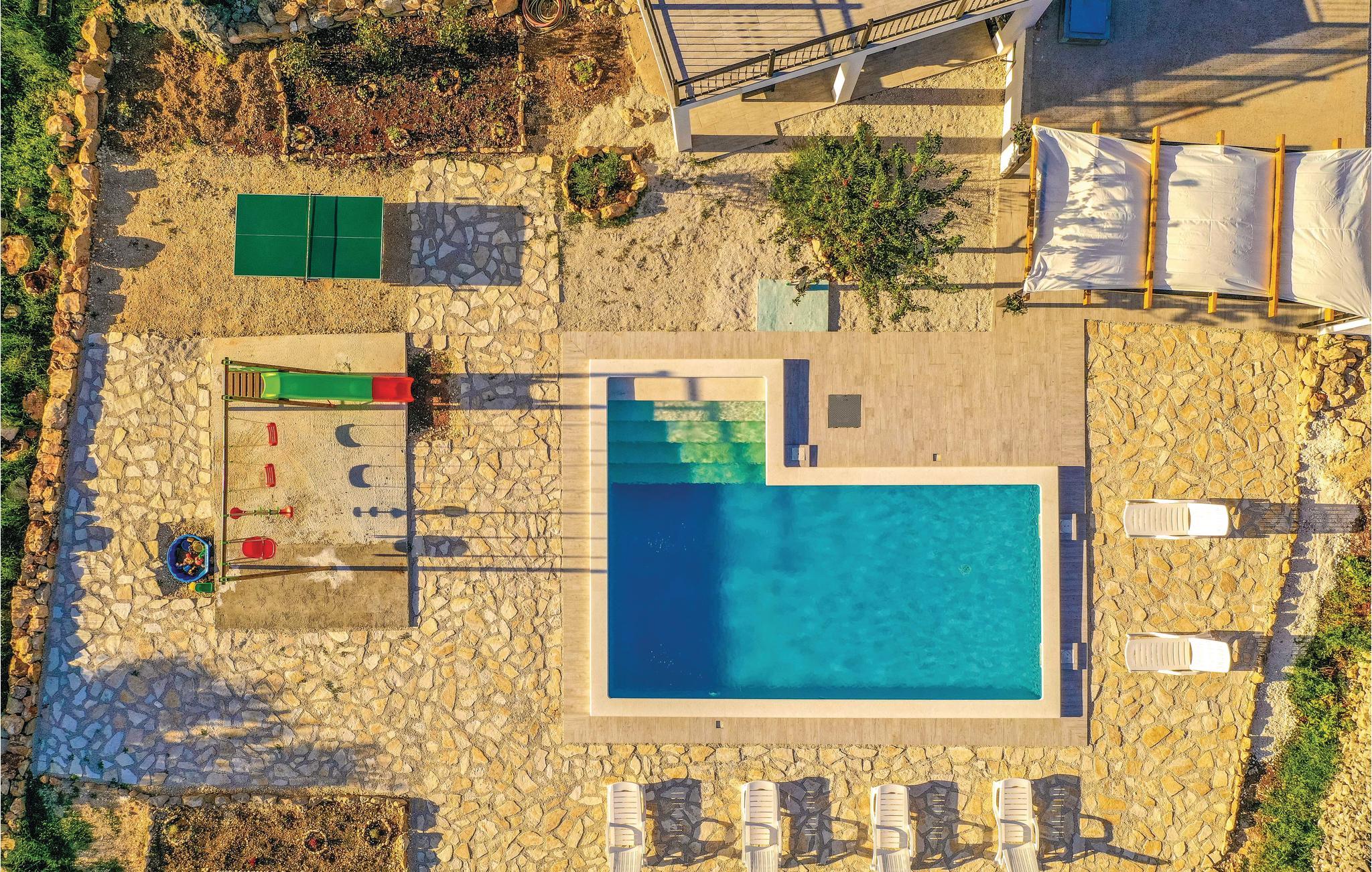 Dette skønne dalmatiske feriehus med pool ligger i den lille by Ljubitovica i Trogirs bagland. Flygt fra byens larm og uro og hold jeres fredelige familieferie her. Slap af på den overdækkede terrasse med grill og forfrisk jer i poolen, mens børnene leger ubesværet på den indhegnede grund. Riv jer også løs fra ferieparadiset og besøg den gamle bydel med mange former for kultur og historie, samt den livlige riviera med fremragende restauranter og barer i de maleriske byer Split og Trogir.
