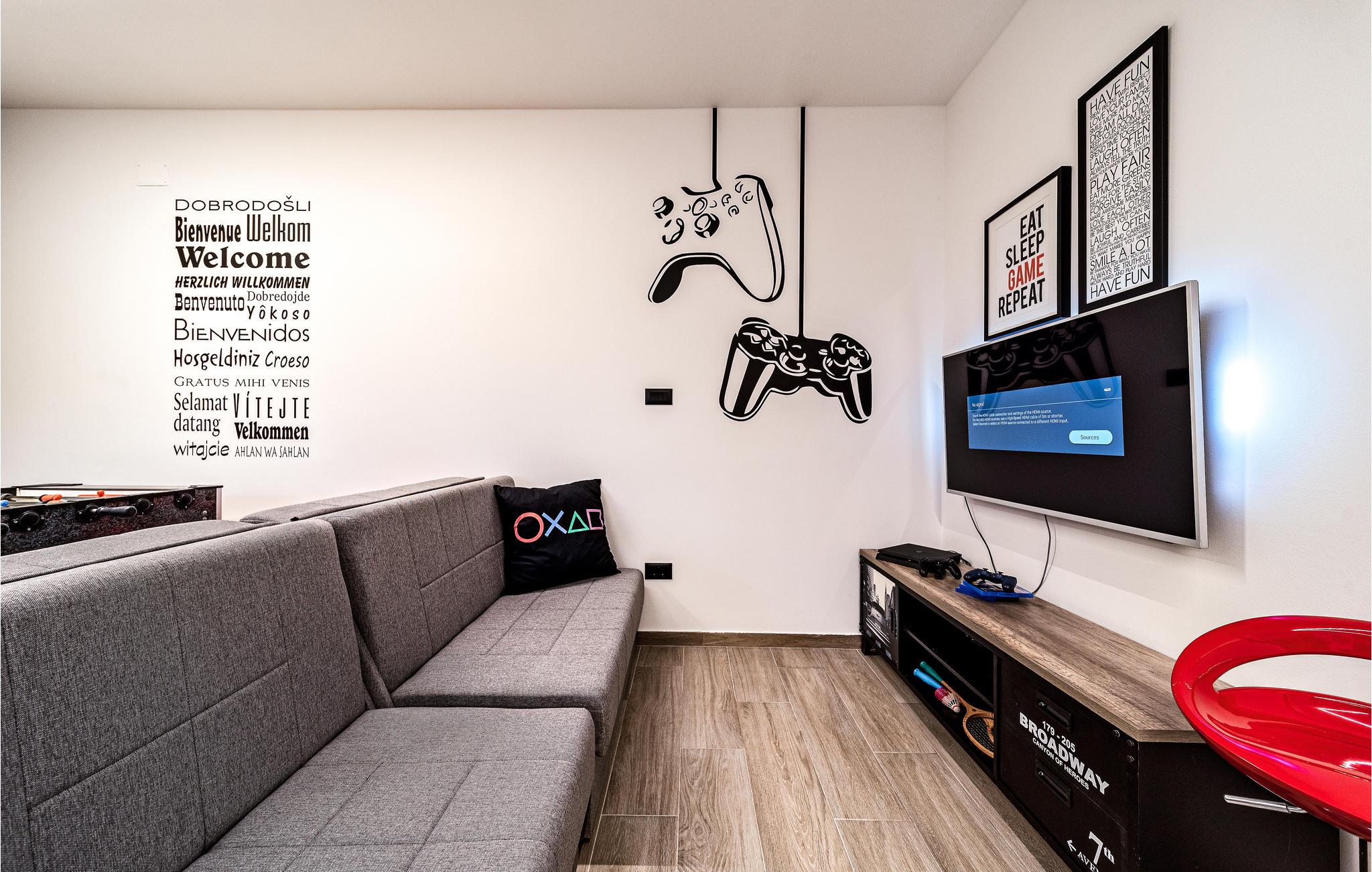 Dette ultralækre feriehus lader intet tilbage at ønske! Det store hus fordeler sig nemlig over flere etager og kan rumme otte personer i 4 soveværelser og 5 badeværelser. Ud over stilfulde møbler af høj kvalitet byder boligen på faciliteter som et fitnessområde, sauna, smart-tv, PlayStation4 og bordfodbold.