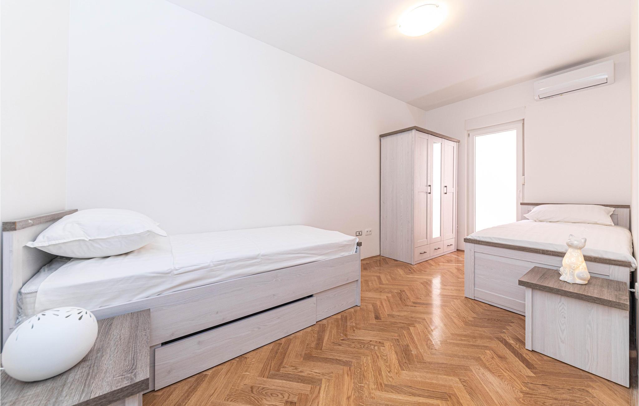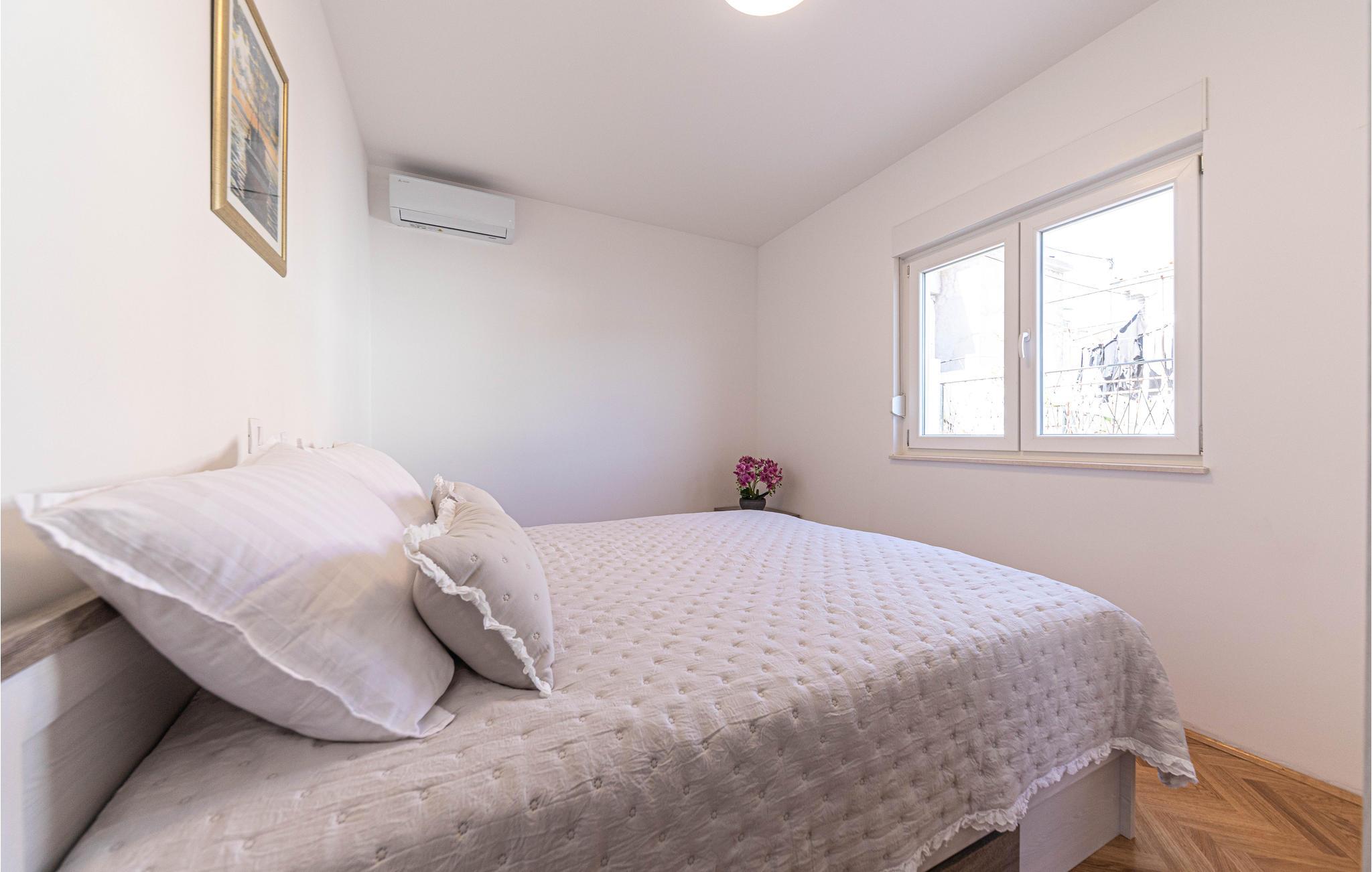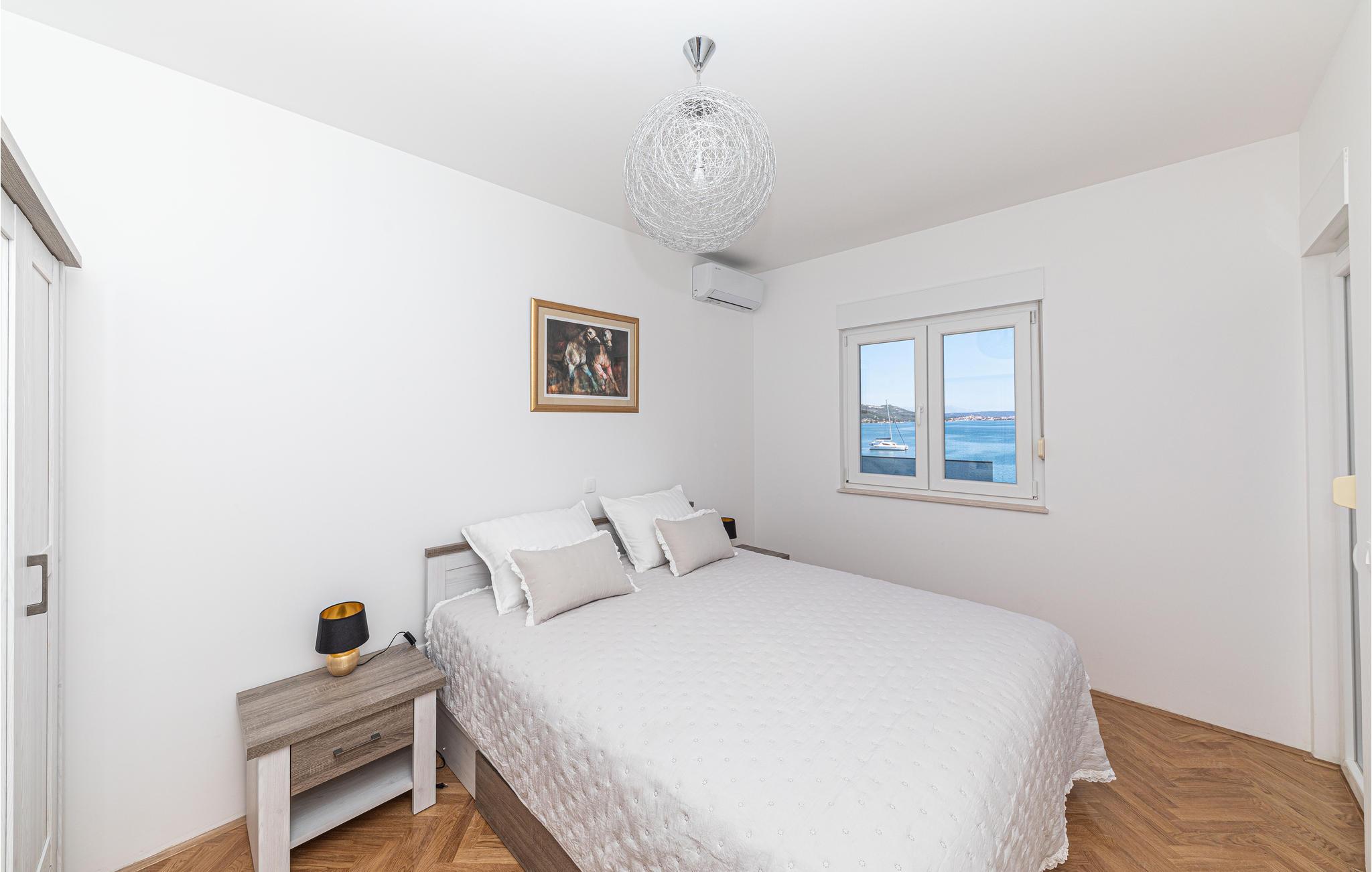 Lejligheden ligger i den lille havneby Marina, lige ved havet og kun et stenkast fra stenstranden. Regionen er berømt for sin olivenolie, men lokal vin og fiskeri har også gjort sig bemærket langt ud over byens grænser. Både den nordøstlige strand Bijeli Galeb og stranden Marina i øst har perfekte badeforhold, og Adriaterhavets krystalklare vand har generelt gode betingelser for snorkling. Hvis I vil på en spændende, kulturel dagsudflugt, kan I besøge Trogir. Byen omtales også ofte som en "museumsby", fordi den er spækket med imponerende, historiske bygninger. Hele den gamle bydel er på UNESCOs verdensarvsliste.