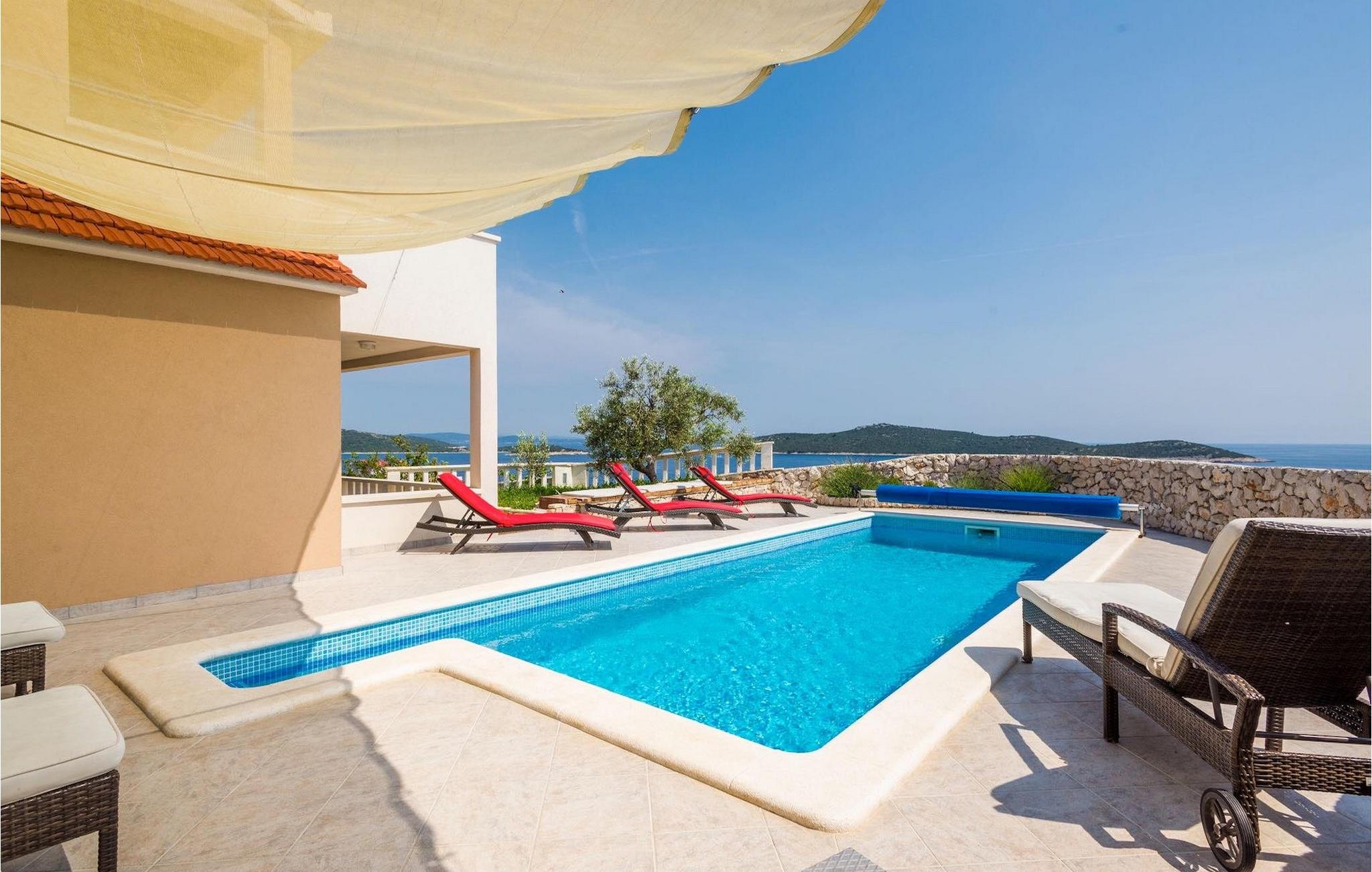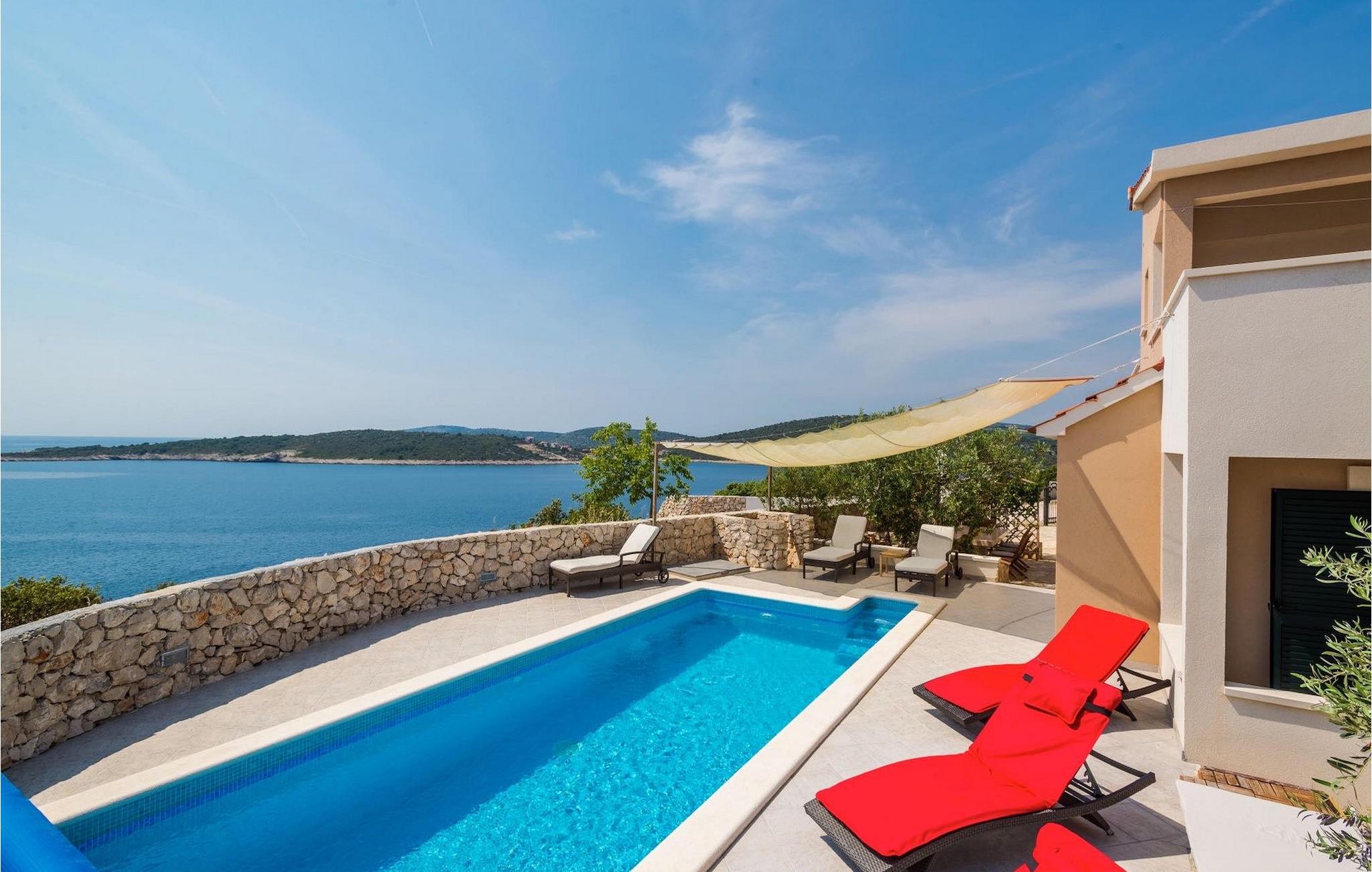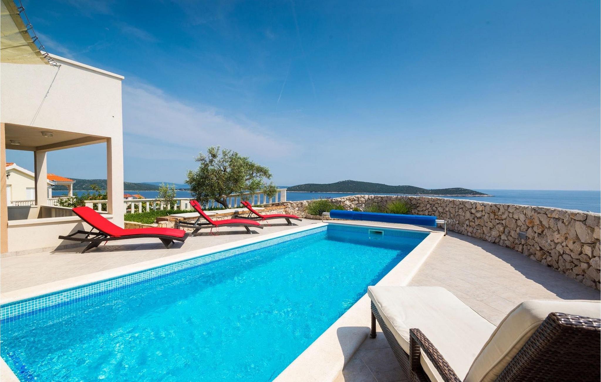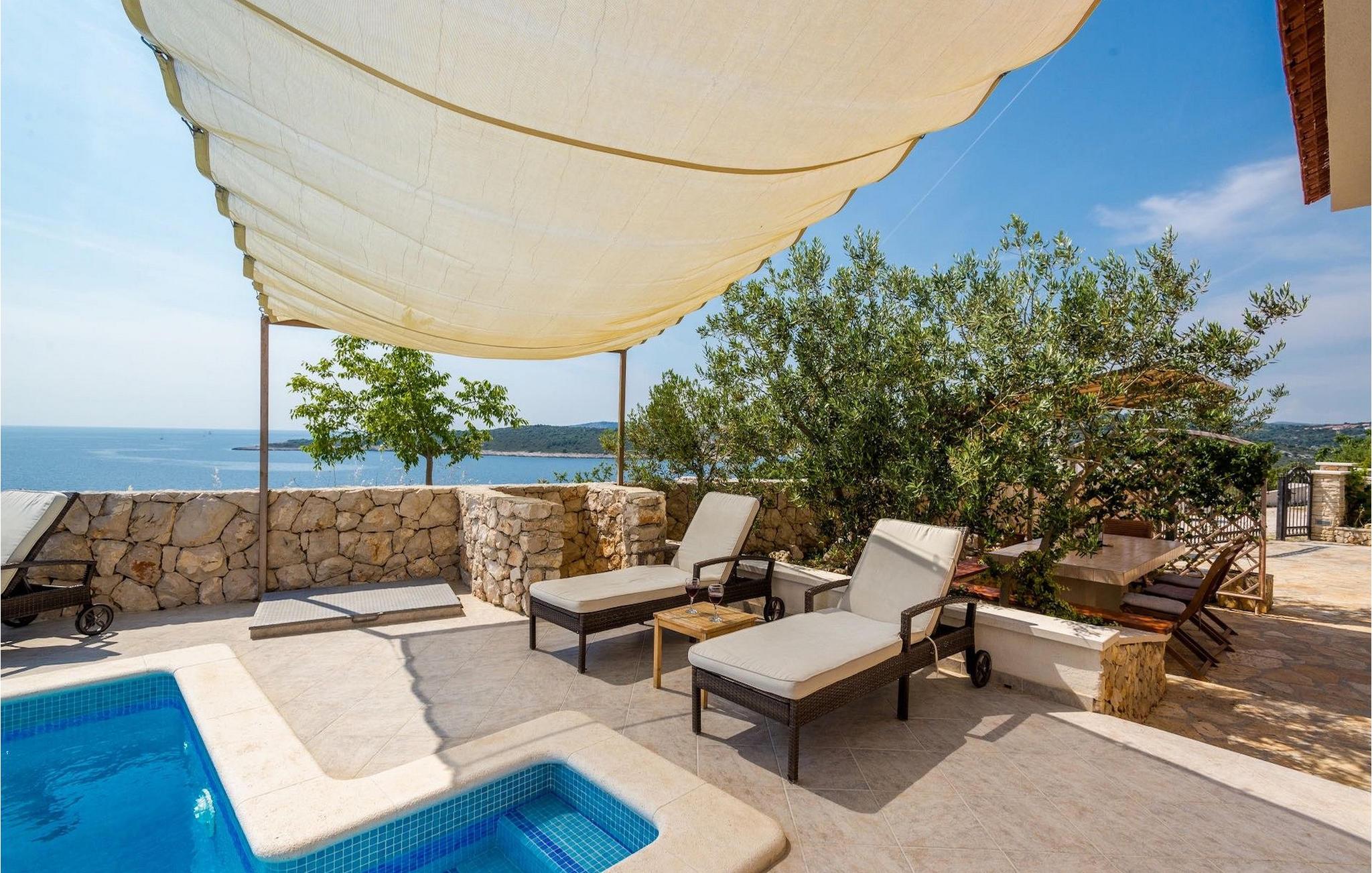 Feriehuset ligger i Sevid, på en lille, rolig halvø på den dalmatiske kyst, mellem Rogoznica og Marina. Sevid er en rolig landsby med smuk udsigt over to bugter, en halvø og flere øer. Fra landsbyen kan I på en klar dag endda se de fjerne øer Hvar og Vis. Her finder I en førsteklasses beliggenhed til en afslappende ferie med en spektakulær udsigt over det uspolerede middelhavslandskab og krystalklare havvand. Vandet omkring Sevid er kendt for at være det klareste i hele området. Sevid-halvøen er formet som en hvalhale og danner to stille bugter – optimale til svømning, snorkling, vandsport og udforskning.