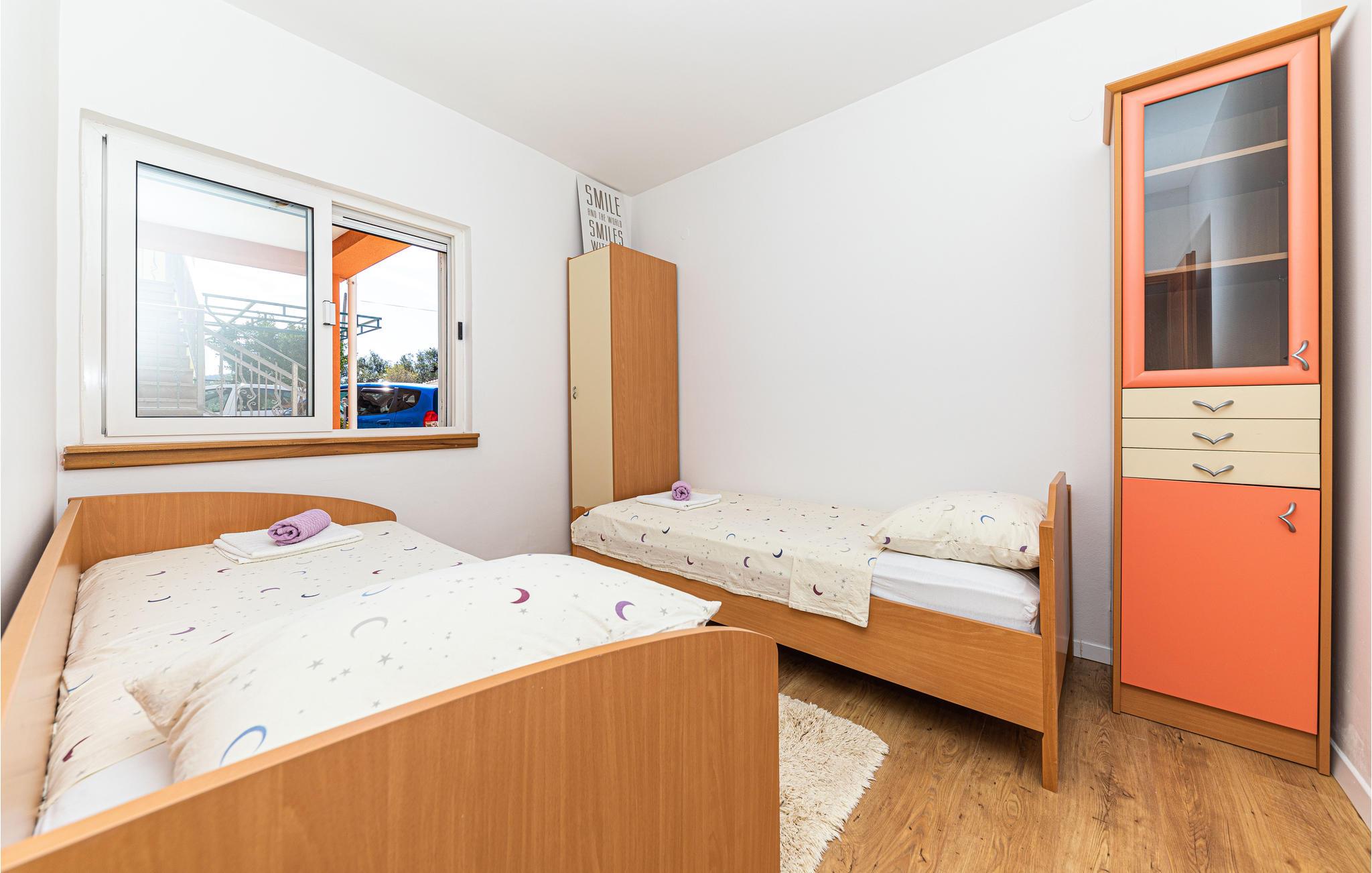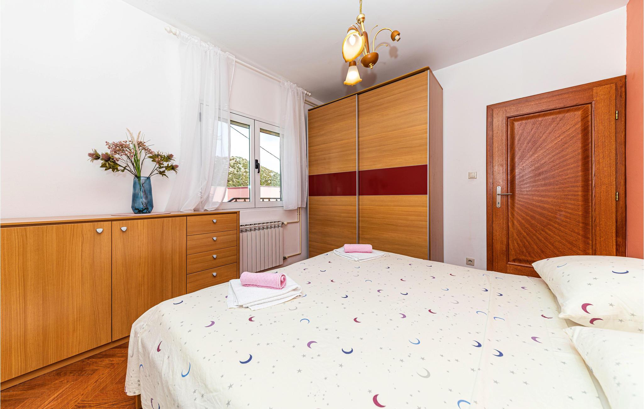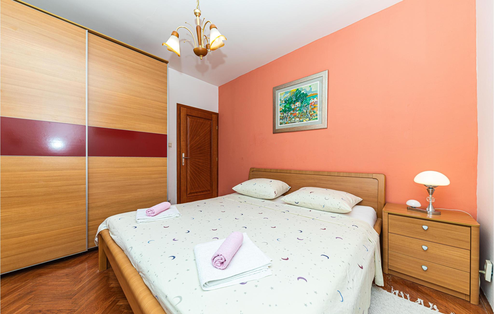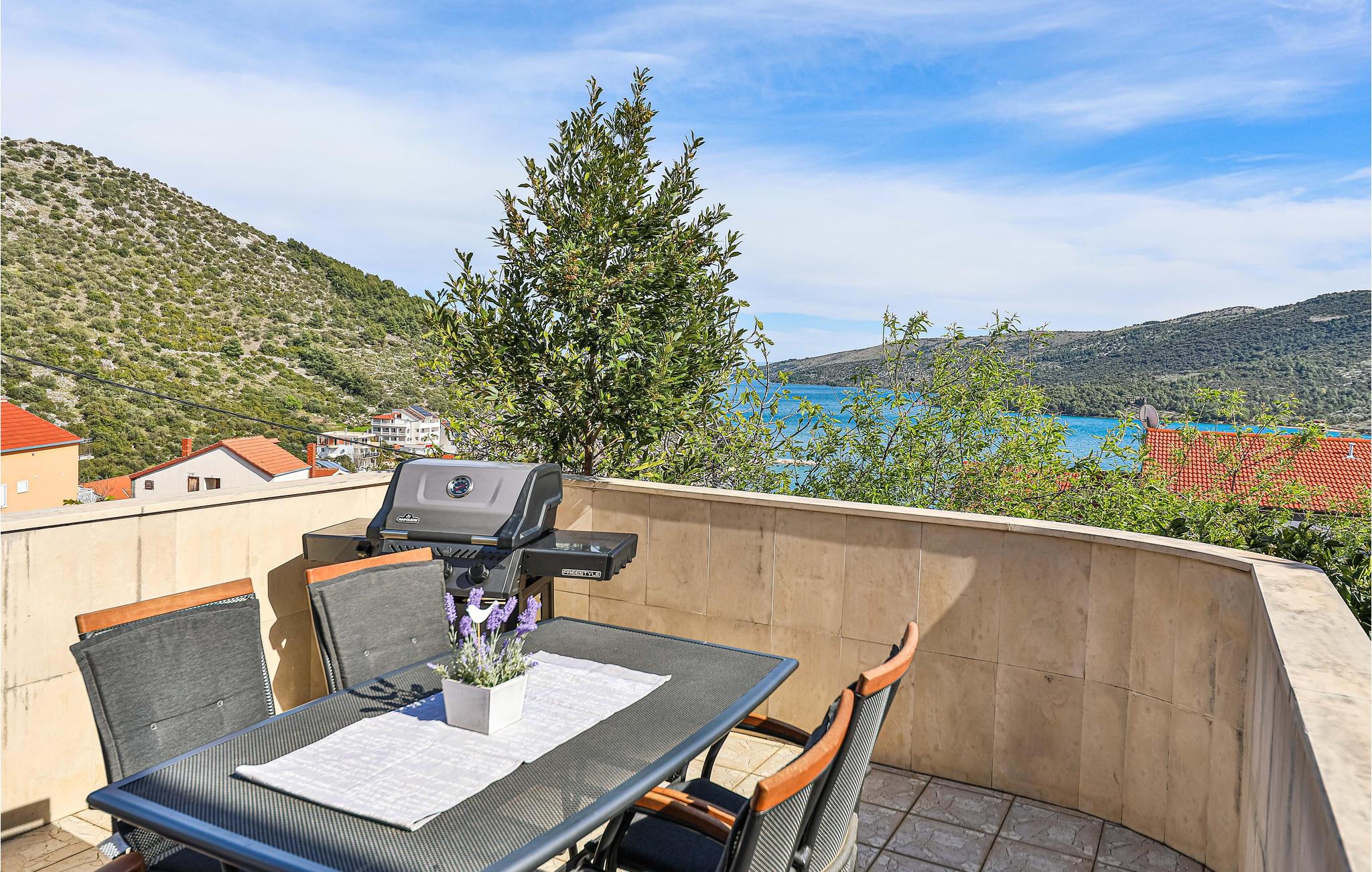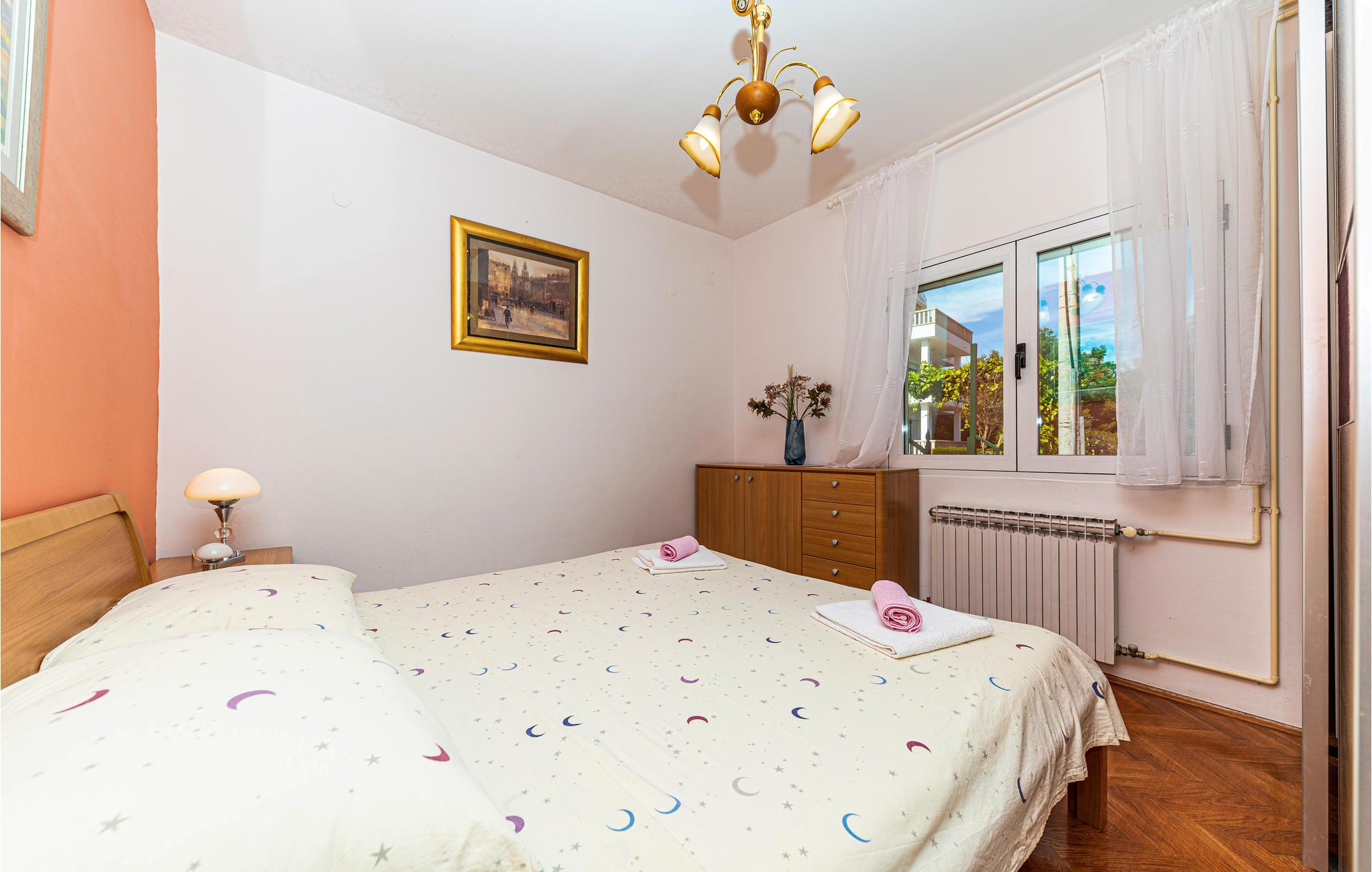 Om morgenen behøver I kun at smide badehåndklædet over skulderen og gå de få meter ned til den flotte stenstrand. Den flotte strand byder på mange faciliteter og lægger op til at gå en kort gåtur gennem byen og opdage lystbådehavnen med dets middelalderlige tårn. I kan også besøge de omkringliggende byer, herunder Trogir, hvis gamle bydel er på UNESCOs verdensarvsliste. Planlæg også en dagstur til den flotte by Split og opdag havnebyens rige historie eller tag på en omfattende shoppingtur.