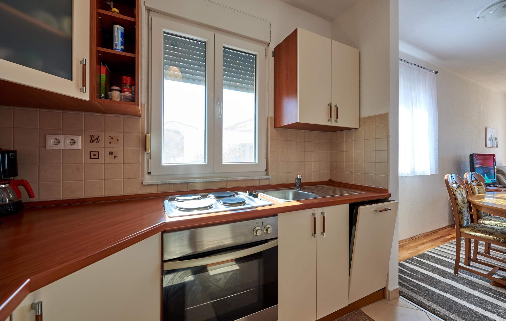 Lejligheden ligger på første sal i en ejendom på øen Ciovo og har plads til fire personer, der kan tilbringe en dejlig ferie her sammen. Boligen er komfortabelt og moderne indrettet, og klimaanlægget sørger for behagelige temperaturer om sommeren.