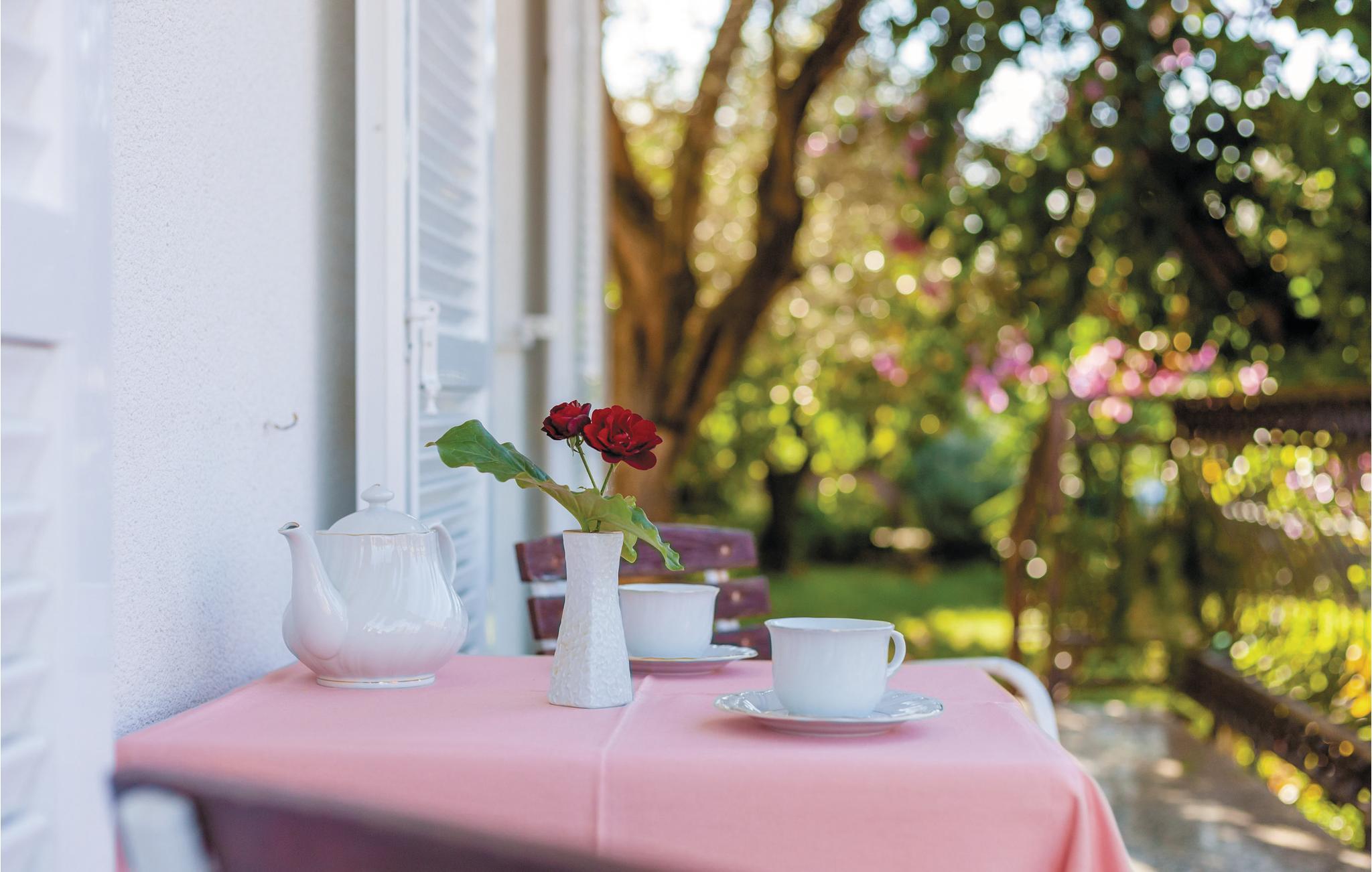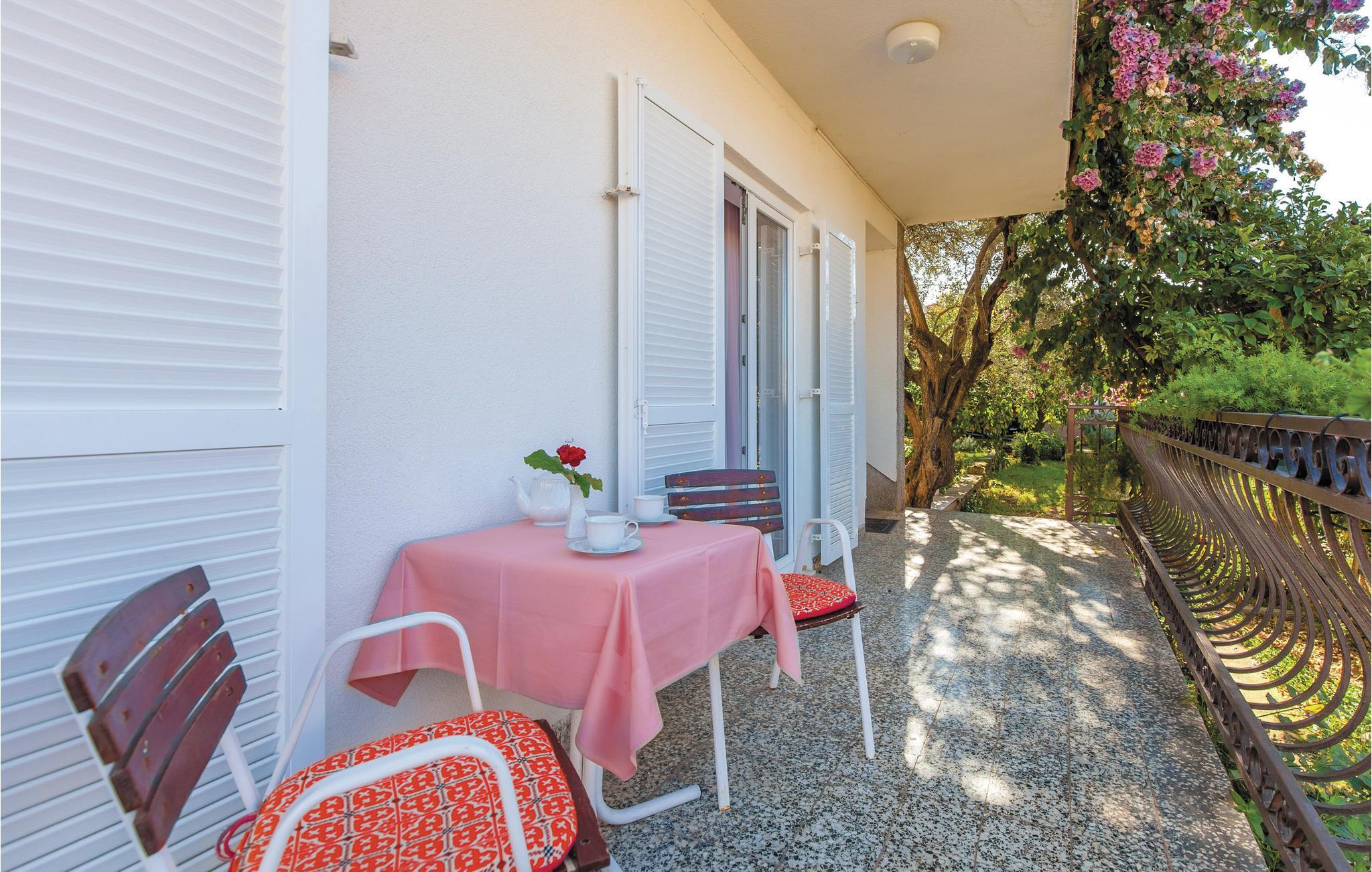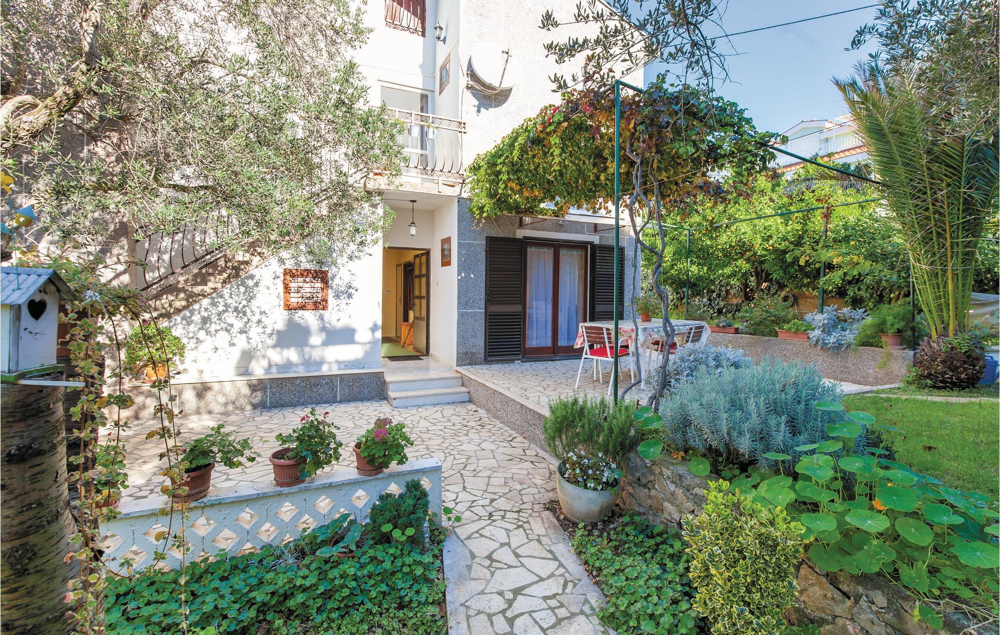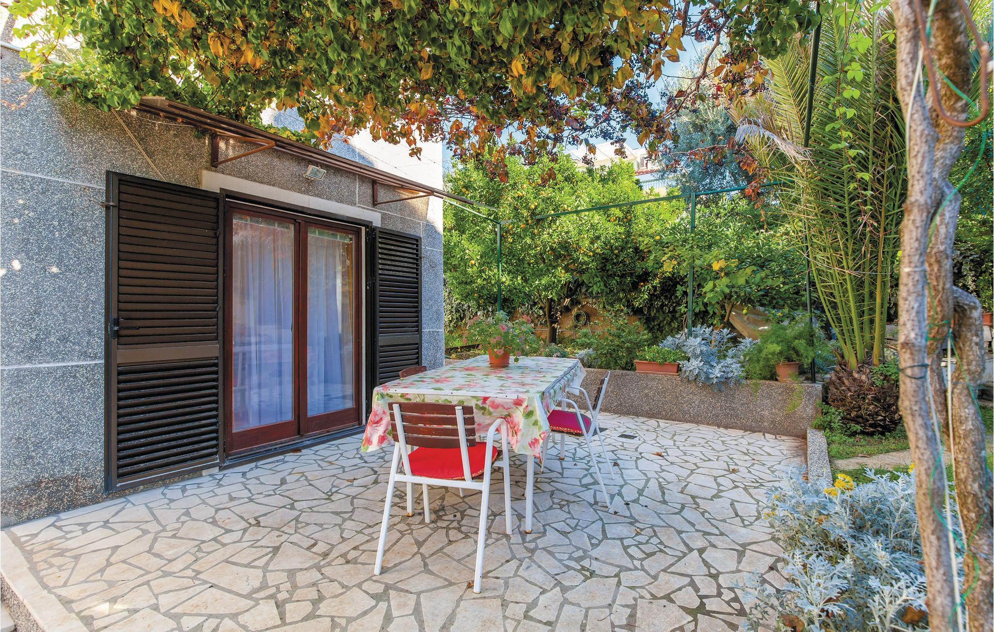 Denne dejlige ferielejlighed i stueplan er et perfekt valg til en afslappet familieferie. Her er to soveværelser, en stue og et badeværelse. Nyd den dejlige atmosfære på terrassen, i den velplejede have, der er omgivet af skønne blomster. Her bor I få skridt fra den skønne kiesstrand og kun få kilometer fra Trogirs centrum og fra lufthavnen. Ved den nærliggende kyst er der mange restauranter, et badeland og mulighed for at tage på udflugter i båd. Det er også oplagt at besøge det, mange mener er en af Europas smukkeste byer: Split, hvis gamle bykerne har en særlig charme med sine skønne stræder, pladser og bygninger fra middelalderen.