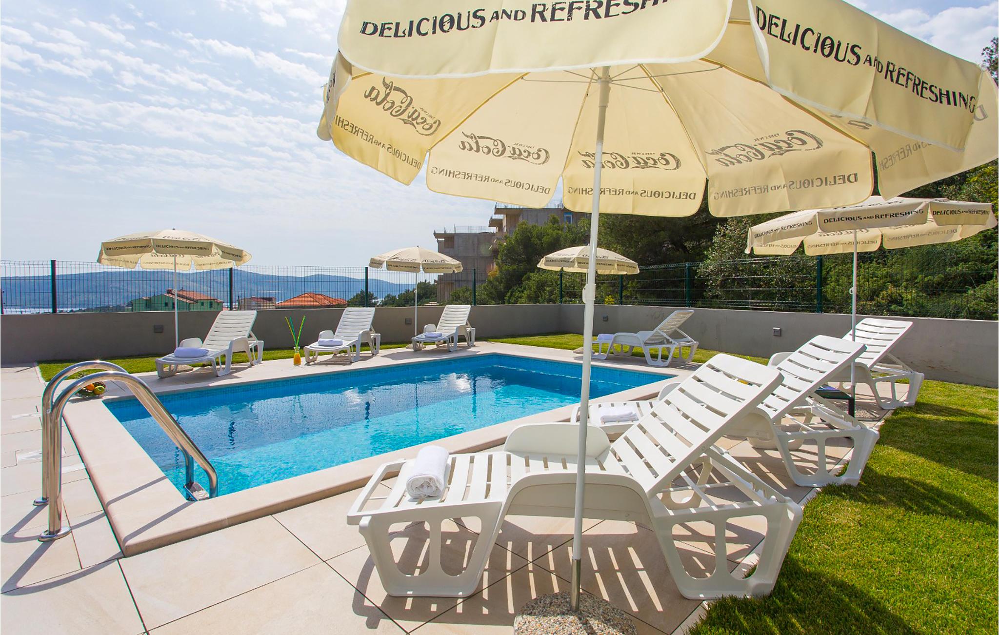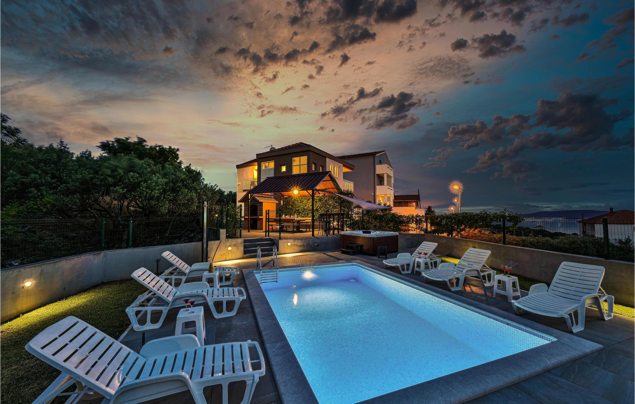 I Seget Donji ligger dette dejlige feriehus. Huset er i 3 etager, hvor der findes et fitness- og aktivitetsrum i stueetagen. På 1. og 2. etage findes to lejligheder med hver 2 soveværelser, kombineret køkken/stueområde, badeværelse og gæstetoilet. Fra den øverste terrasse har I en helt fantastisk panoramaudsigt over havet.