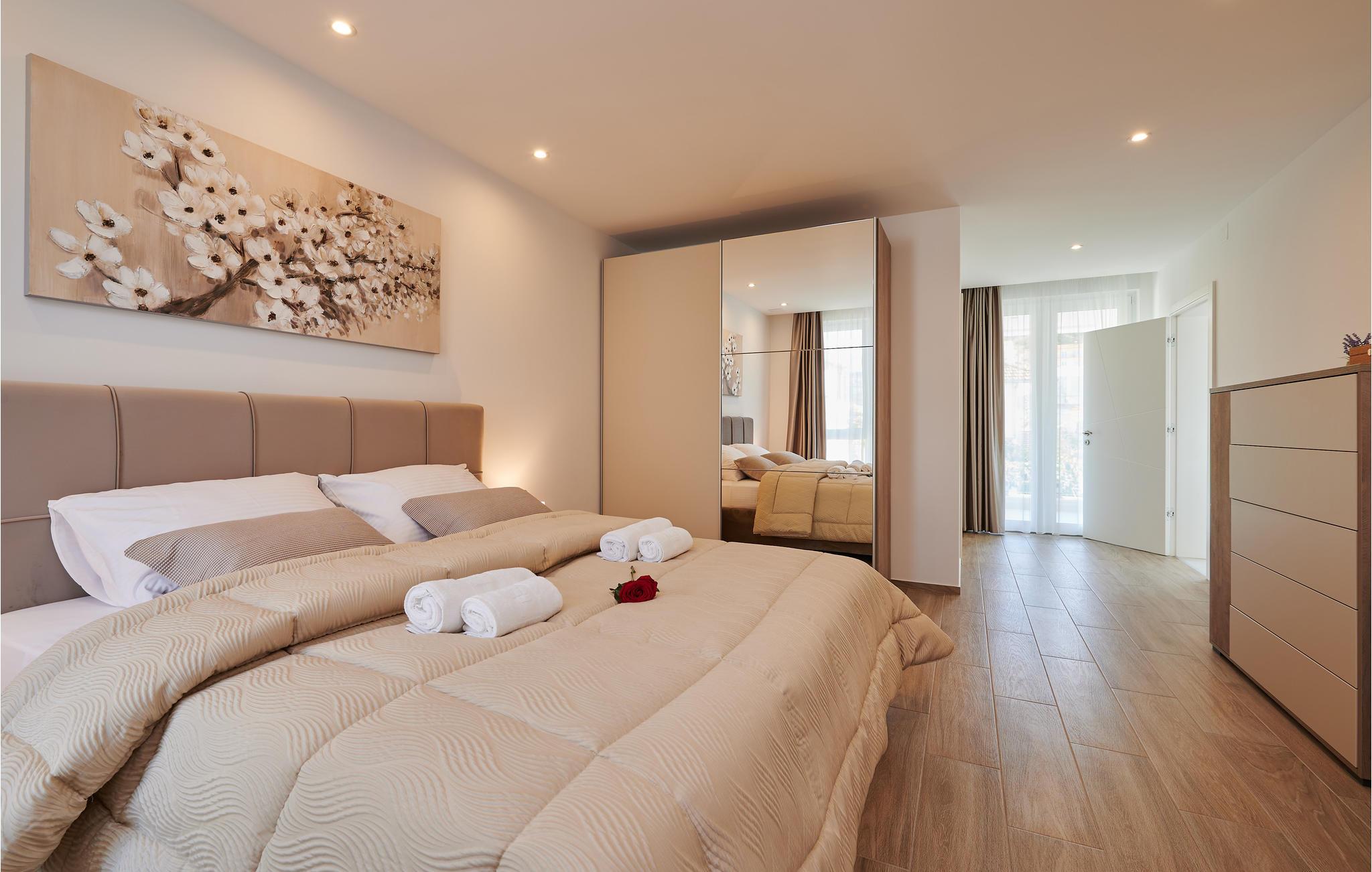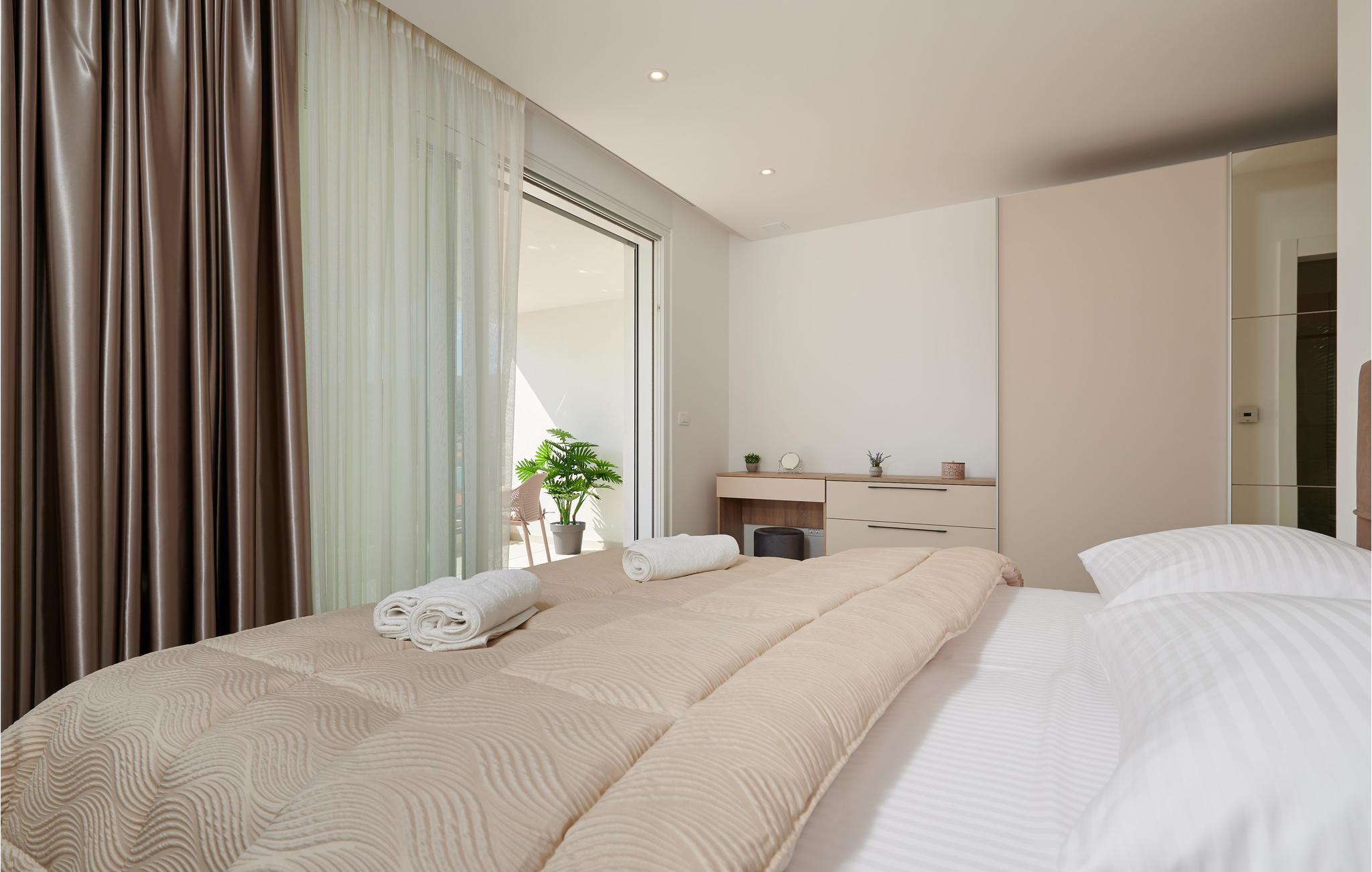 Her kan I sammen med venner eller familie glæde jer til et ophold i særklasse. Jeres hus tilbyder en attraktiv, moderne arkitektur og en indretning af høj kvalitet, så det at bo her bliver en oplevelse i sig selv. Glæd jer til at slappe af i den opvarmede pool, spabad eller sauna. Hele huset har aircondition, så det er altid behageligt selv på varme sommerdage. Der er et legerum for børn og et fitnessrum med lydsystem til de sporty typer. Nyd jerees måltider, mens I nyder udsigten over den malerisk oplyste by om aftenen. Oplev det afslappede liv i Kvarnerbugten - tag udflugter enten på øen, i byen eller langs den mangfoldige, smukke kystlinje med sand- og stenstrande og bjergene på Balkan i baggrunden.
