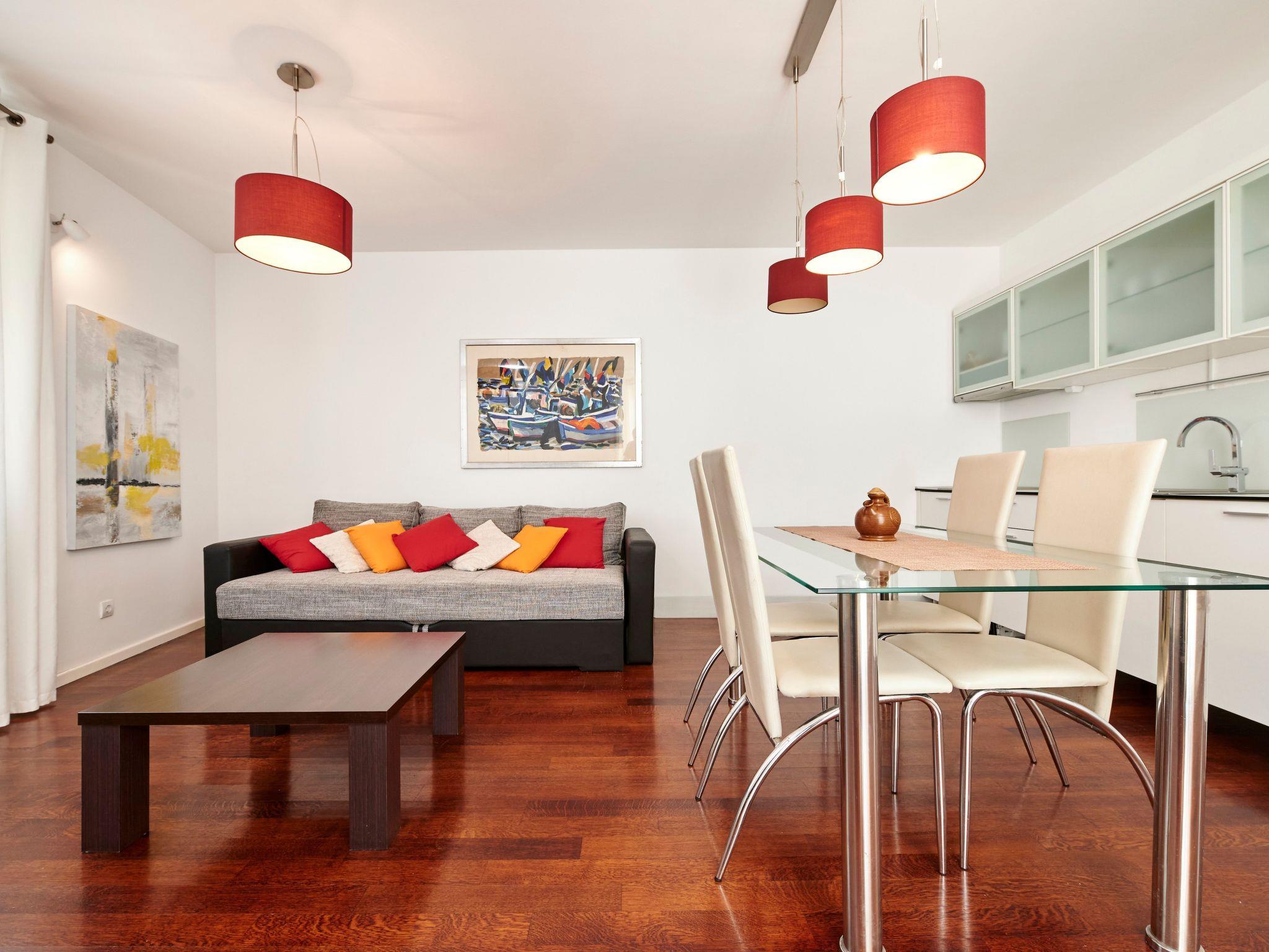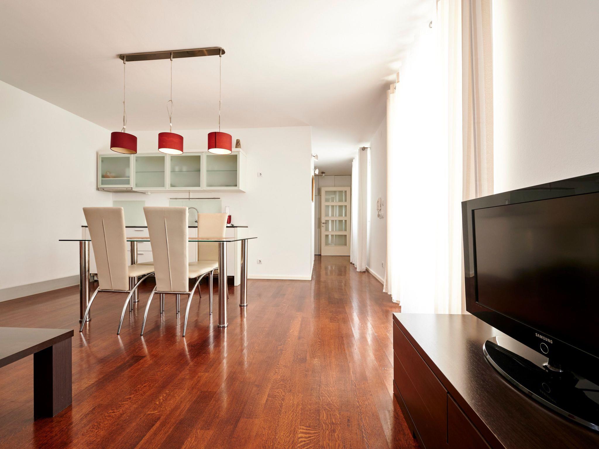 This is one bedroom apartment with one private bedroom. It is suitable for 4 people. There is one double bed in bedroom (1.60m wide). Living room and dining room with kitchen are in complex. Sofa in living room provides bed for third person. Bedroom and bathroma are connected to the other rooms by hall. Bathroom with shower has unerfloor heating. Heating is everywhere in this 60m square apartment. Free Wi-Fi, SAT TV, bad linens and towels are provided to guests.