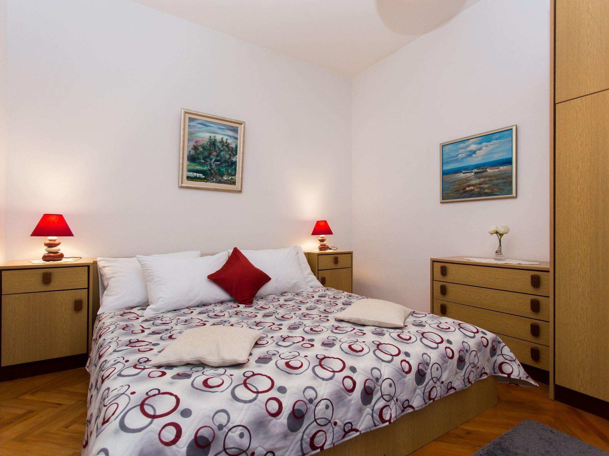 This holiday apartment was renovated in 2014 and is located 3.5km to the west of Trogir. It is near the Medena hotel complex, just 80 metres from the sea and the beaches.