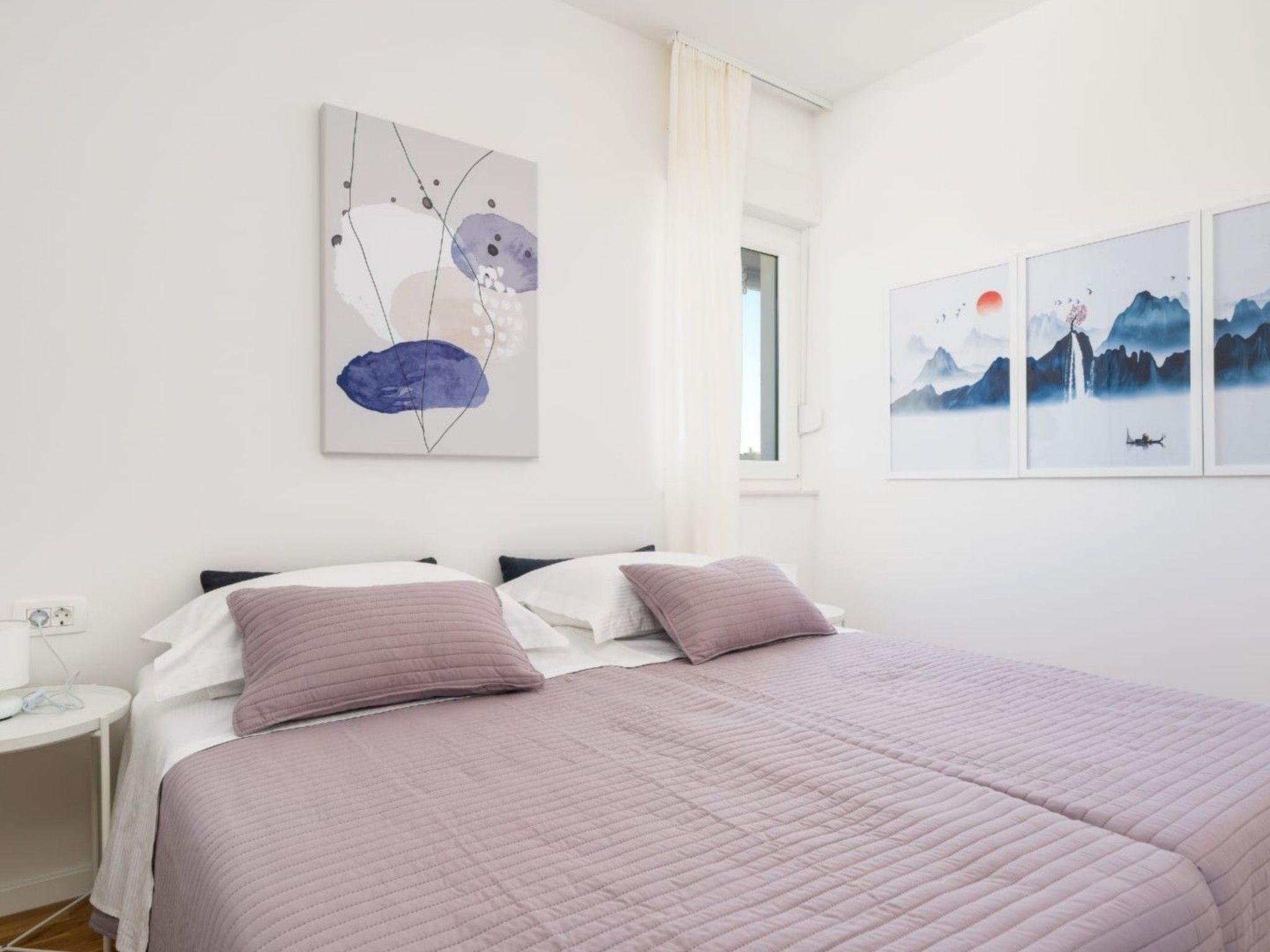 This stylish and airy apartment is located on the second floor of an apartment building and can be accessed by stairs or elevator. The apartment consists of 2 elegantly furnished bedrooms equipped with a ceiling fan, a wardrobe, and double beds (one bed can be separated into 2 single beds), 1 bathroom with shower, fully equipped kitchen, living room with dining area and a seaview balcony which can be accessed through a large sliding glass door. Apartment Lana is a suitable accommodation for up to 4 persons.