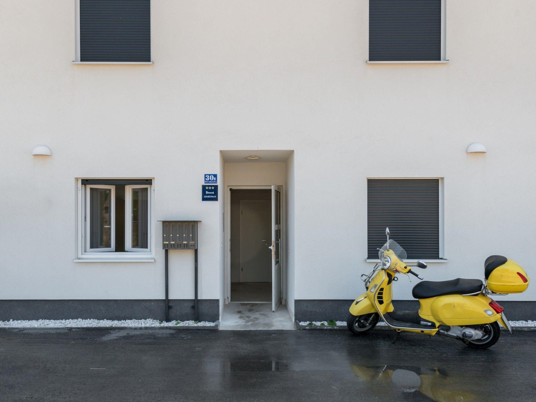 Apartment Sun, finished in 2019, is located on the ground floor of an apartment building and covers the living area of 57 m2. The apartment consists of 2 bedrooms, 1 bathroom and can comfortably accommodate up to 5 (4+1) persons.