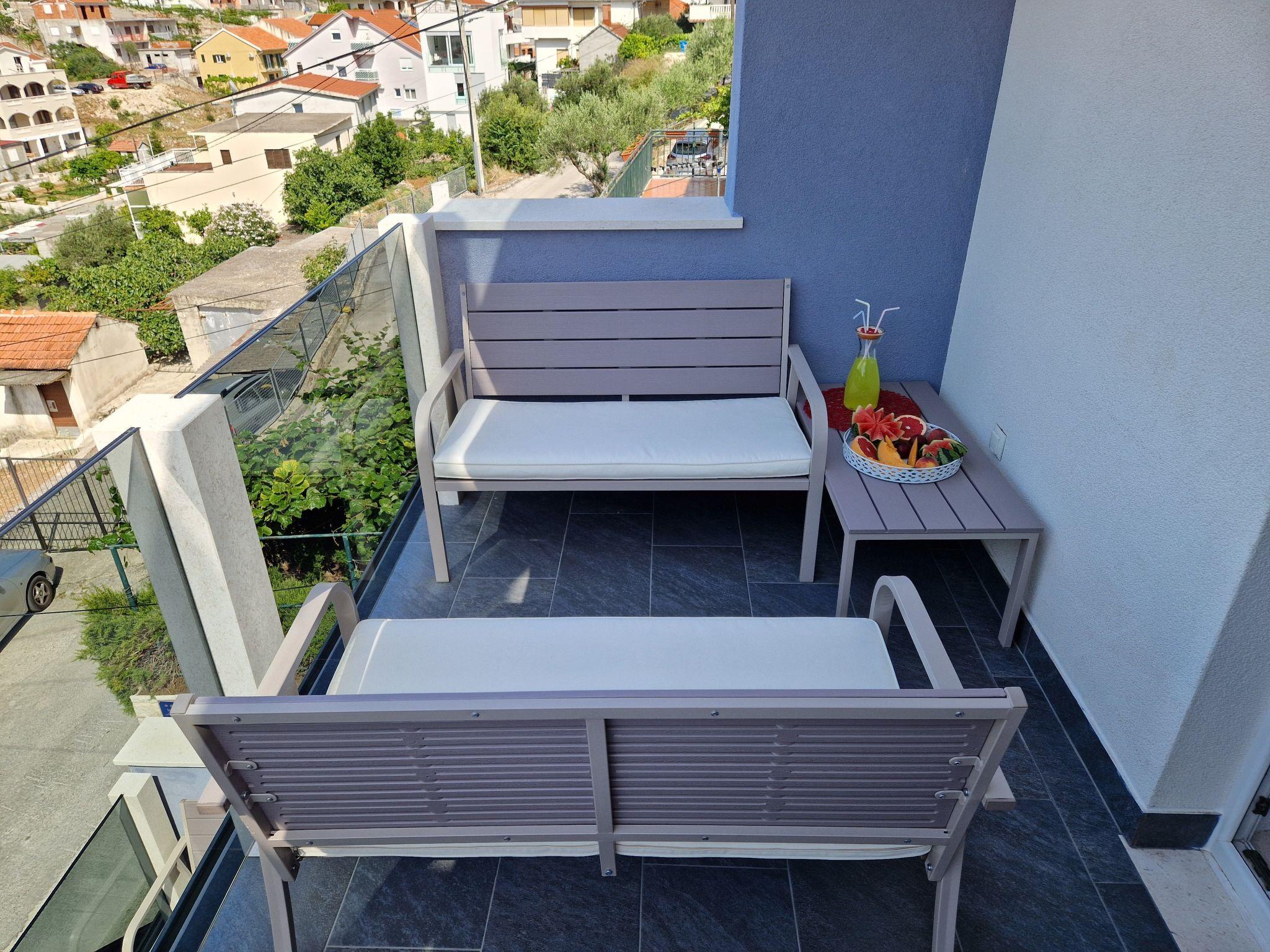 One balcony positioned and covered so that there is shade all day long, you can enjoy the view of the old town of Trogir, the surrounding hills and the sea. The second balcony is on the back of the house, you have your privacy and you can sunbathe on it all day long.
