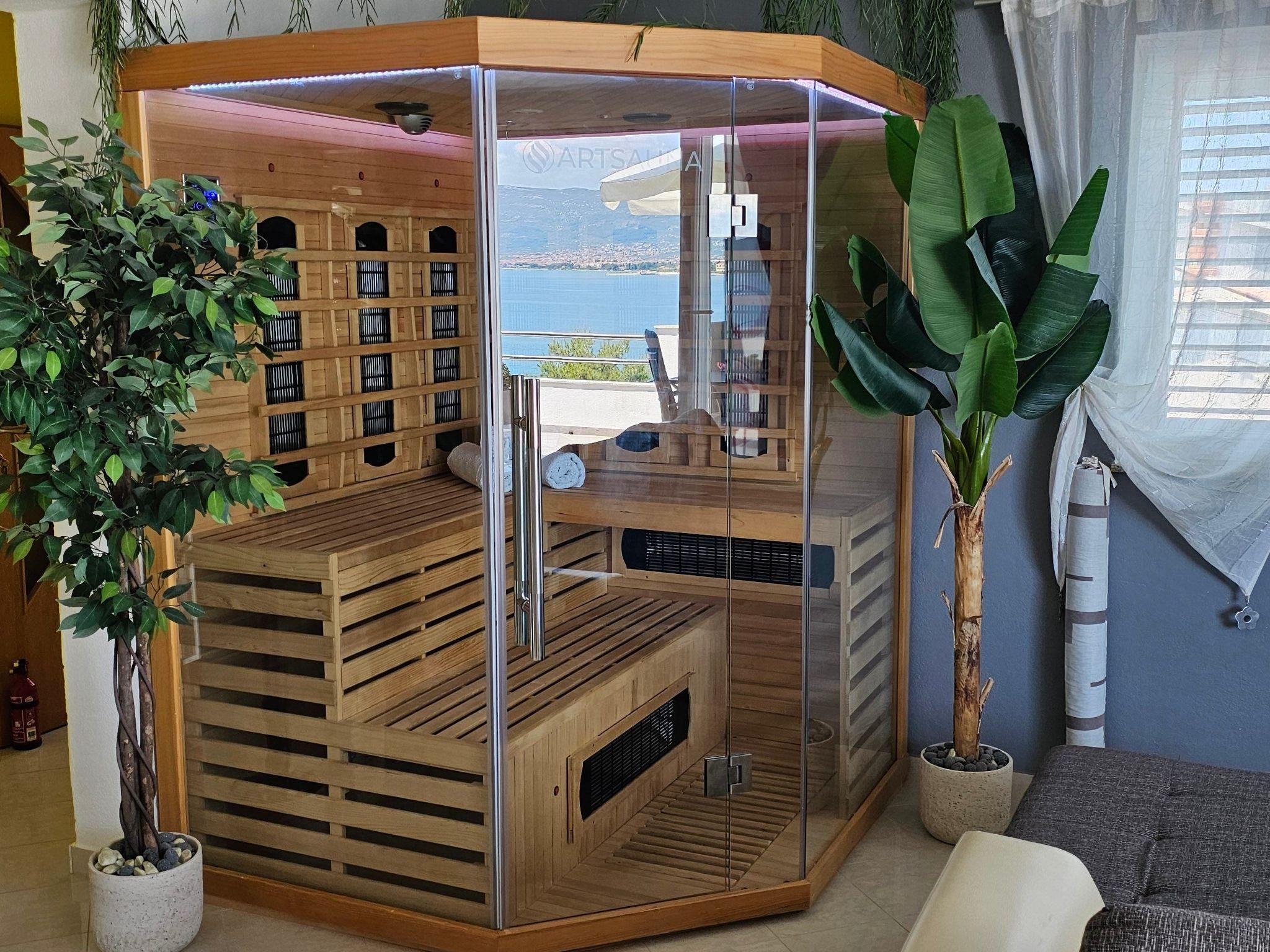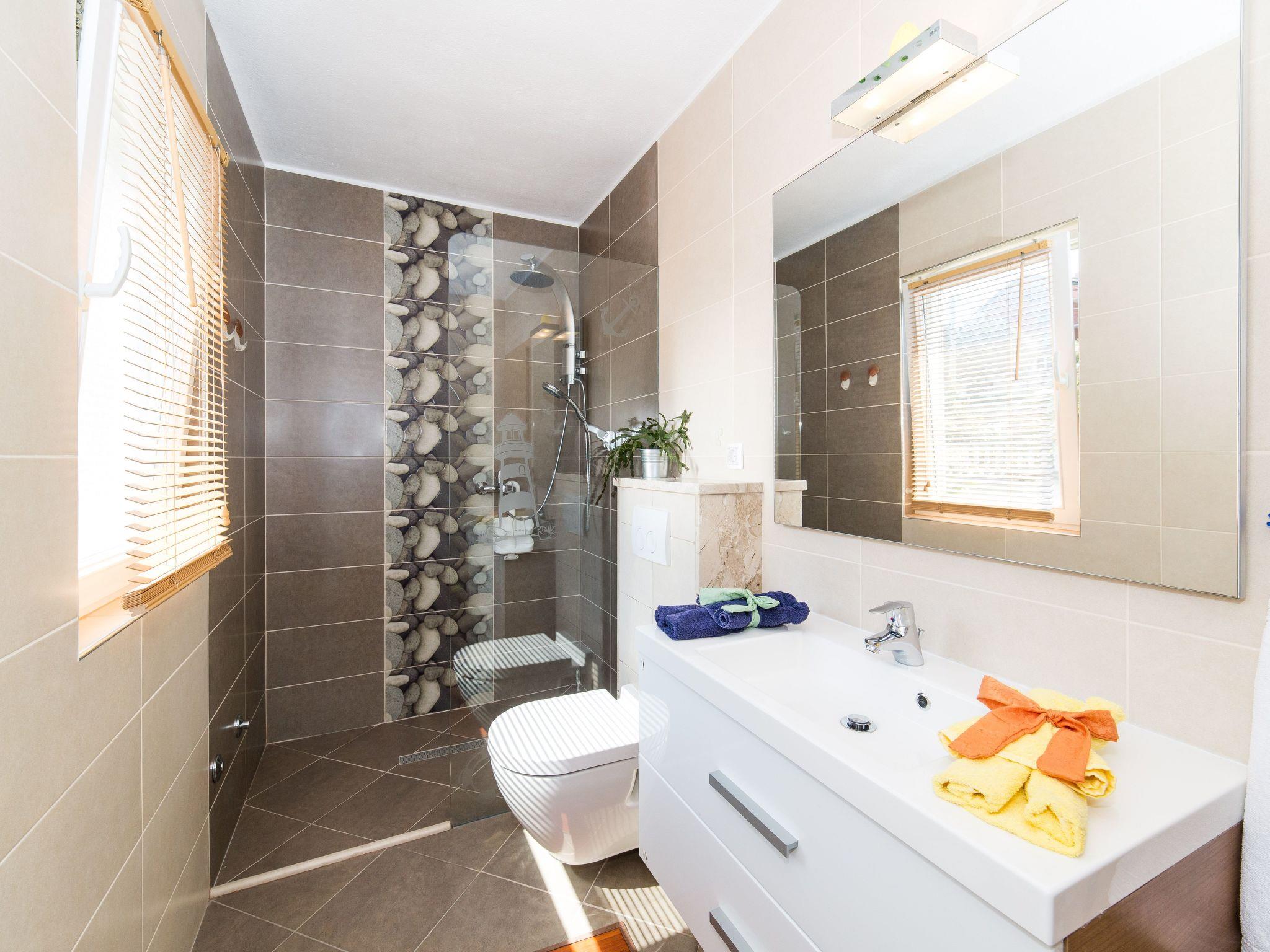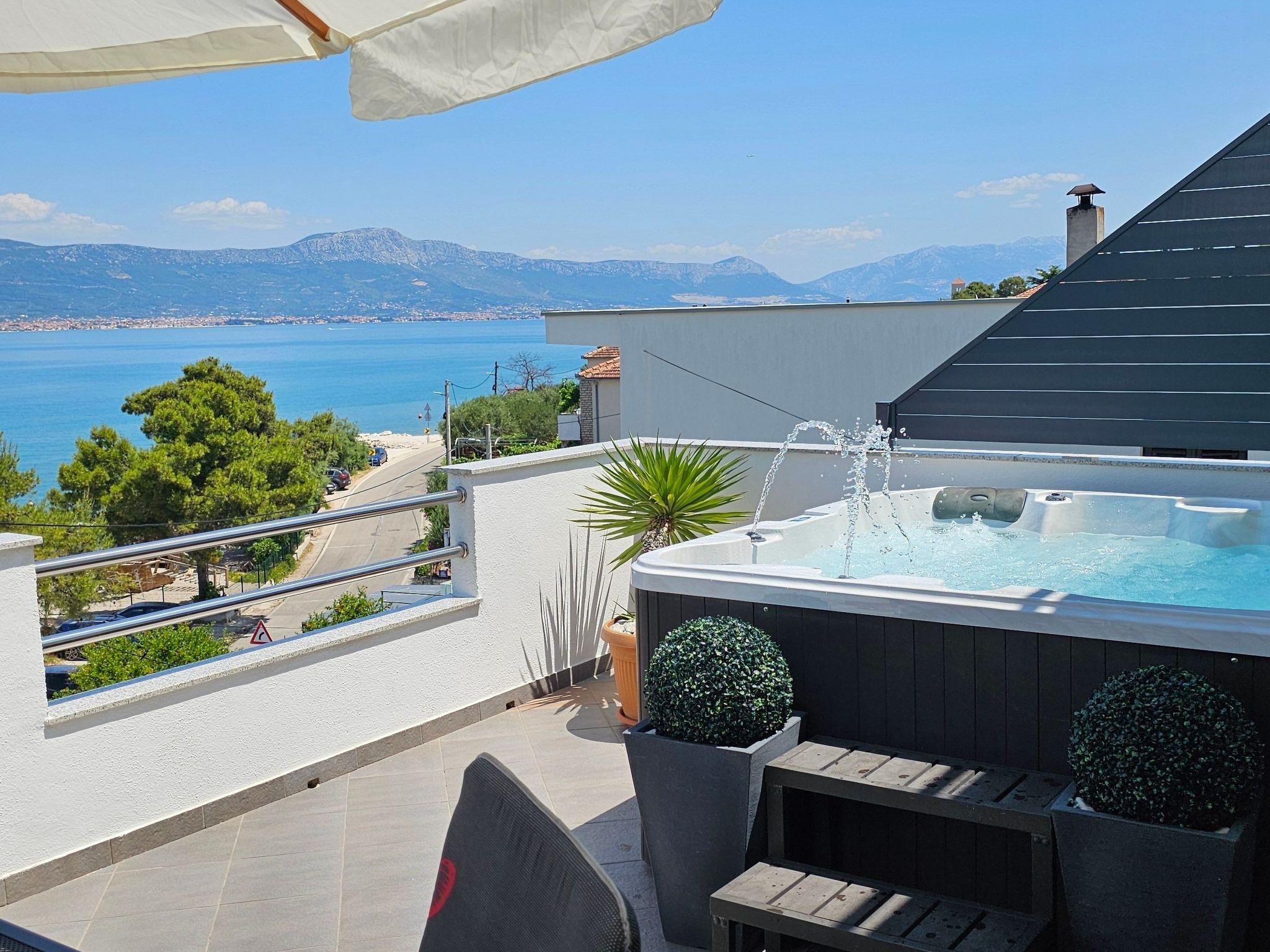 To get to the beach you only need to cross the road. You can also walk to various restaurants and shops. It is 2km to the UNESCO town Trogir with many sights.