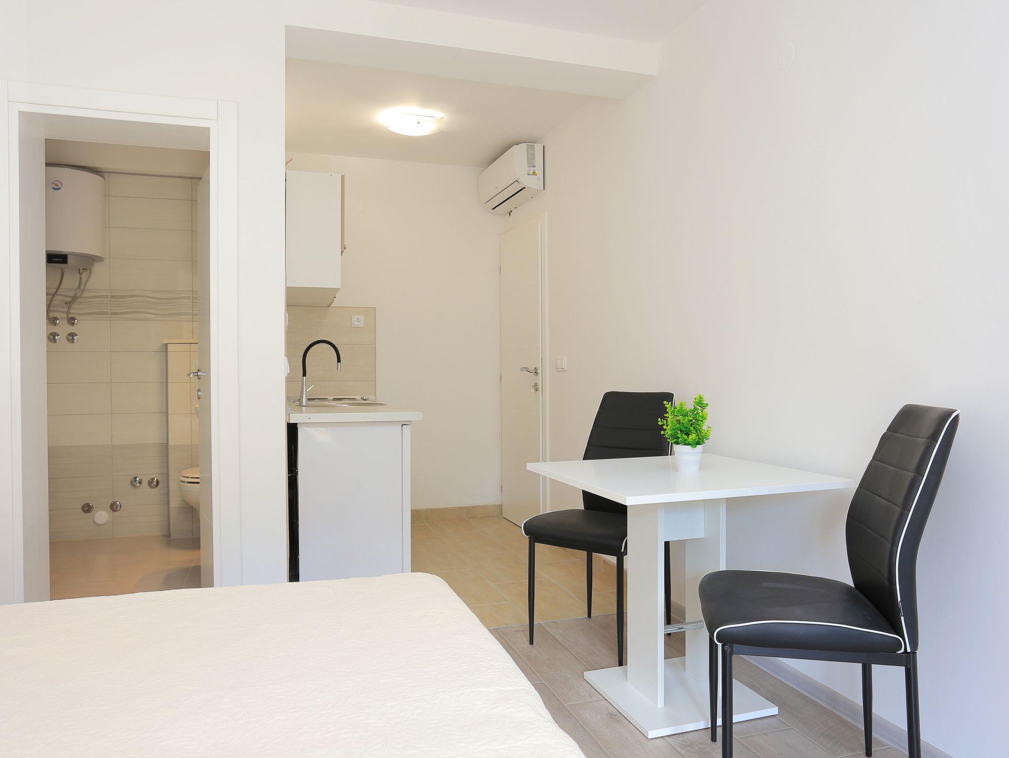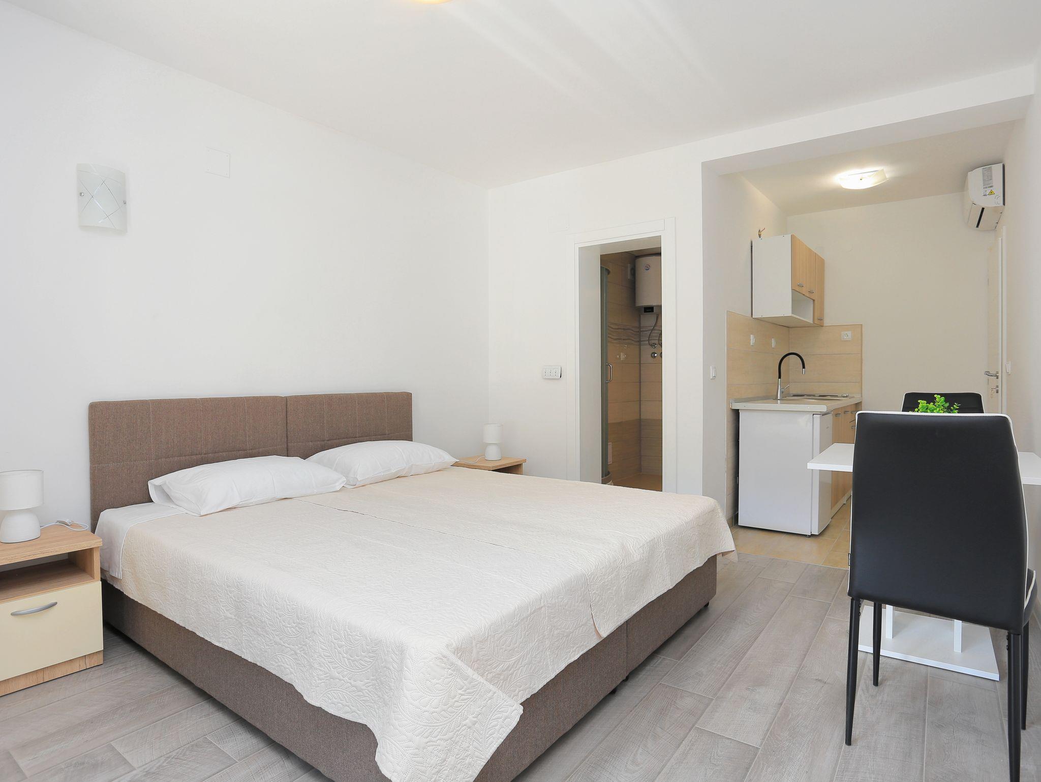 Studio bietet Platz für 2 Gäste. Die Betten sind in Schlafzimmern, die es 1 gibt, innerhalb einer Gesamtfläche von 21m2, angeordnet. Die Gäste haben eine eigene Terrasse zur Verfügung, auf der sie in warmen Sommernächten genießen können. Das Studio-Apartment bietet Meerblick. Es ist erlaubt, Speisen auf dem Gemeinschafts-Grill vorzubereiten. In der Unterkunftseinheit besteht die Möglichkeit des Mitbringens von Haustieren gegen Aufpreis. IM PREIS INBEGRIFFEN: Kurtaxe, Endreinigung, Klimatisierung, Parkplatz, Internet, Bügeleisen, Bügelbrett, Föhn. UNVERBINDLICHE ZUSÄTZLICHE KOSTEN: Haustiere (5,00 € pro Nacht). Die Verfügbarkeit zusätzlicher Dienstleistungen in Ihrem reservierten Termin und die Preise derselben (falls nicht aufgeführt) müssen im Voraus überprüft werden. Zusätzliche Dienstleistungen die in der Zahlungsaufforderung nicht aufgeführt sind werden direkt beim Vermieter bezahlt, angenommen der Gast nutzt auch diese. Ermäßigung auf den Grundpreis: Gratistag 14=13 (bei einem Aufenthalt von 14 Tagen oder mehr erhalten Sie einen Gratistag für den Aufenthalt bis 31.12.26).