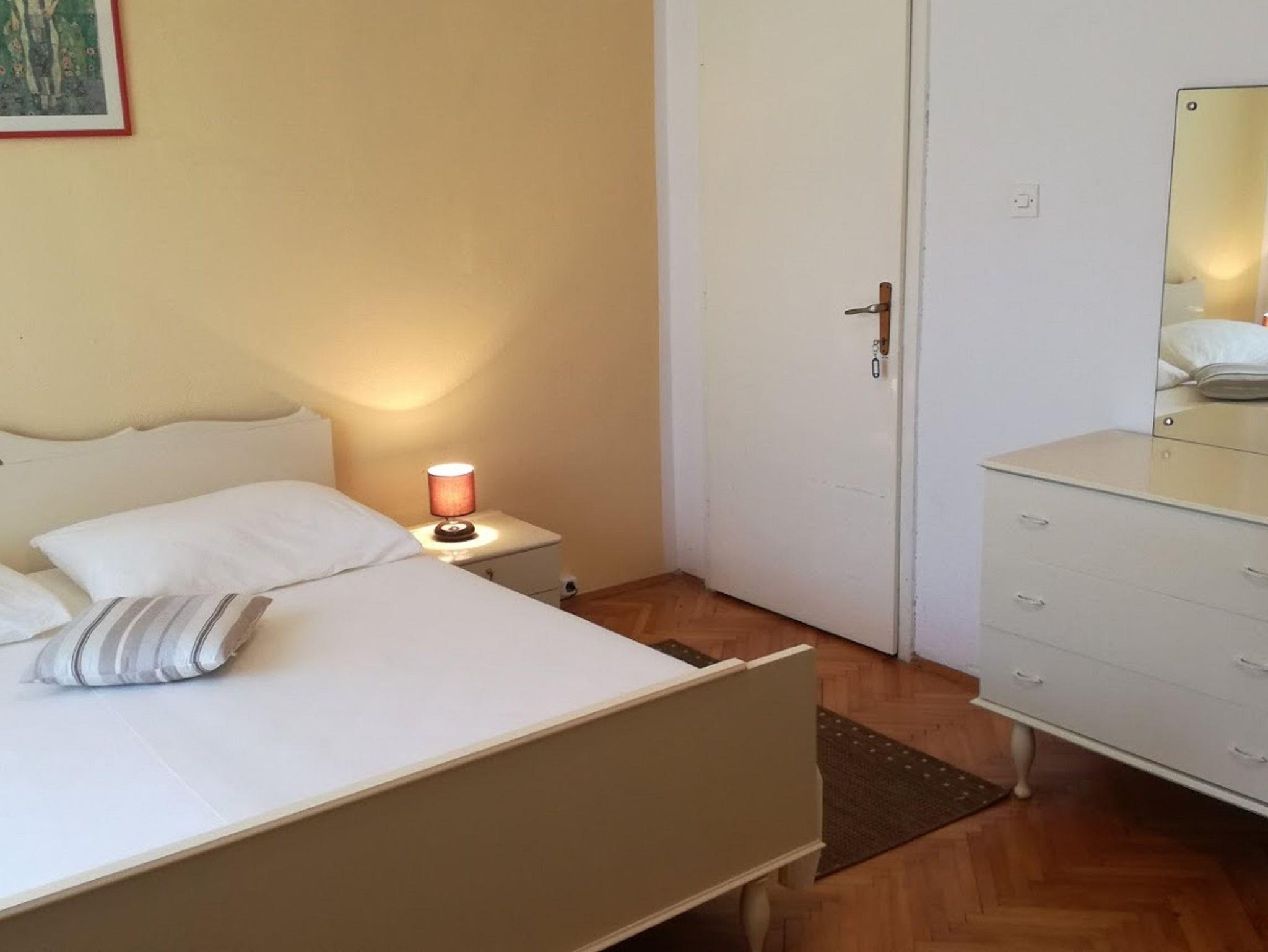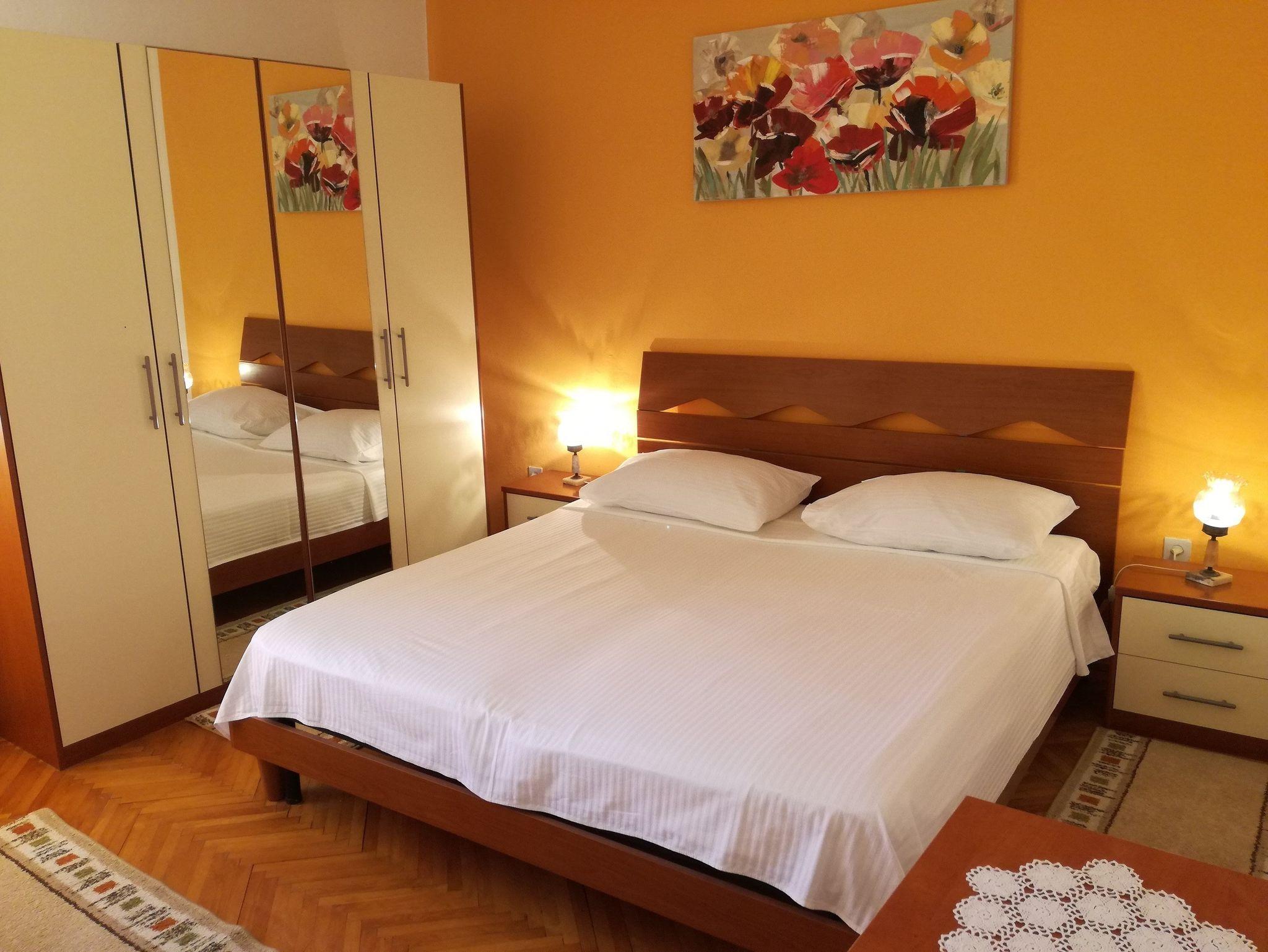 Ferienwohnung bietet Platz für 7 Gäste. Die Betten sind in Schlafzimmern, die es 3 gibt, innerhalb einer Gesamtfläche von 96m2, angeordnet. Die Gäste haben eine eigene Terrasse zur Verfügung, auf der sie in warmen Sommernächten genießen können. Es ist erlaubt, Speisen auf dem Gemeinschafts-Grill vorzubereiten. In der Unterkunftseinheit besteht die Möglichkeit des Mitbringens von Haustieren gegen Aufpreis. IM PREIS INBEGRIFFEN: Kurtaxe, Endreinigung, Klimatisierung, Parkplatz, Internet, Kinderbett, Bügeleisen, Bügelbrett, Föhn. VERBINDLICHE ZUSÄTZLICHE KOSTEN: Aufzahlung für Kurzaufenthalte (prozentualer Zuschlag pro Nächtigungsanzahl: 30% - 1, 20% - 2, 10% - 3). UNVERBINDLICHE ZUSÄTZLICHE KOSTEN: Bootsanlegeplatz (10,00 € pro Nacht), Haustiere (5,00 € pro Nacht). Die Verfügbarkeit zusätzlicher Dienstleistungen in Ihrem reservierten Termin und die Preise derselben (falls nicht aufgeführt) müssen im Voraus überprüft werden. Zusätzliche Dienstleistungen die in der Zahlungsaufforderung nicht aufgeführt sind werden direkt beim Vermieter bezahlt, angenommen der Gast nutzt auch diese.