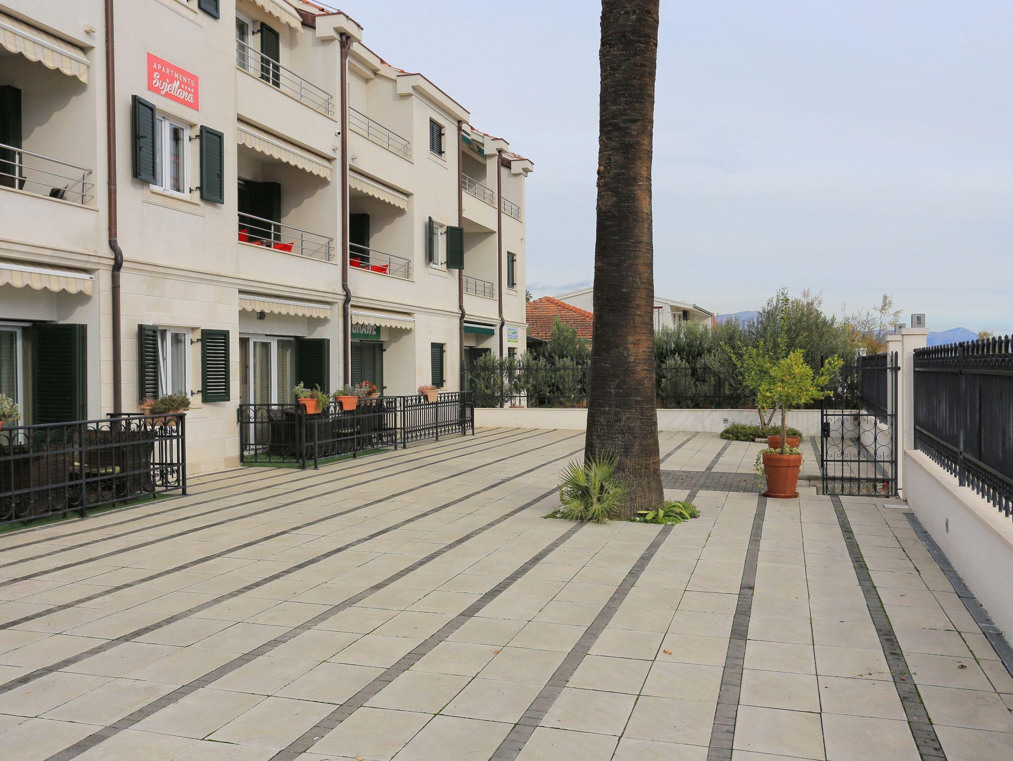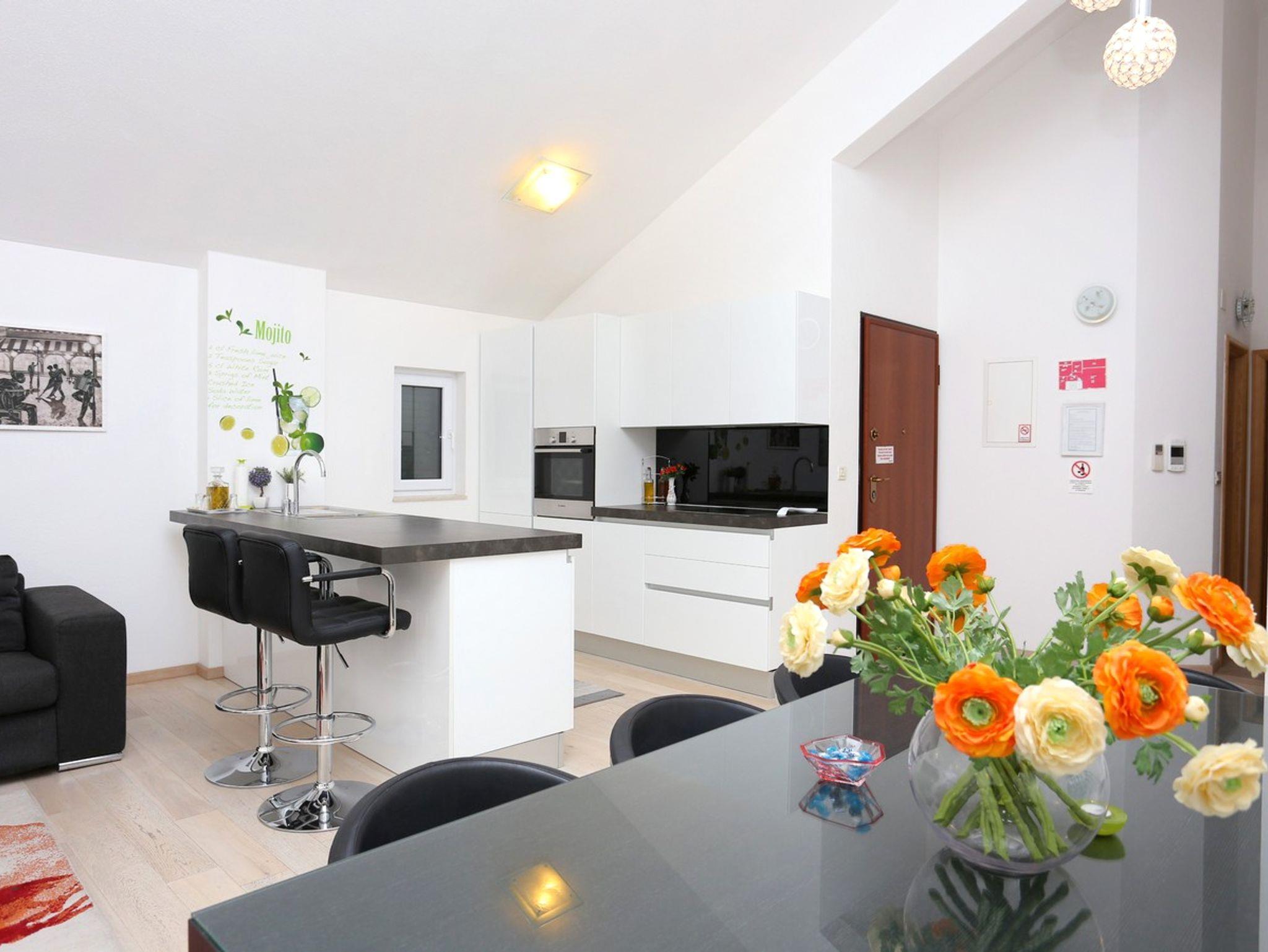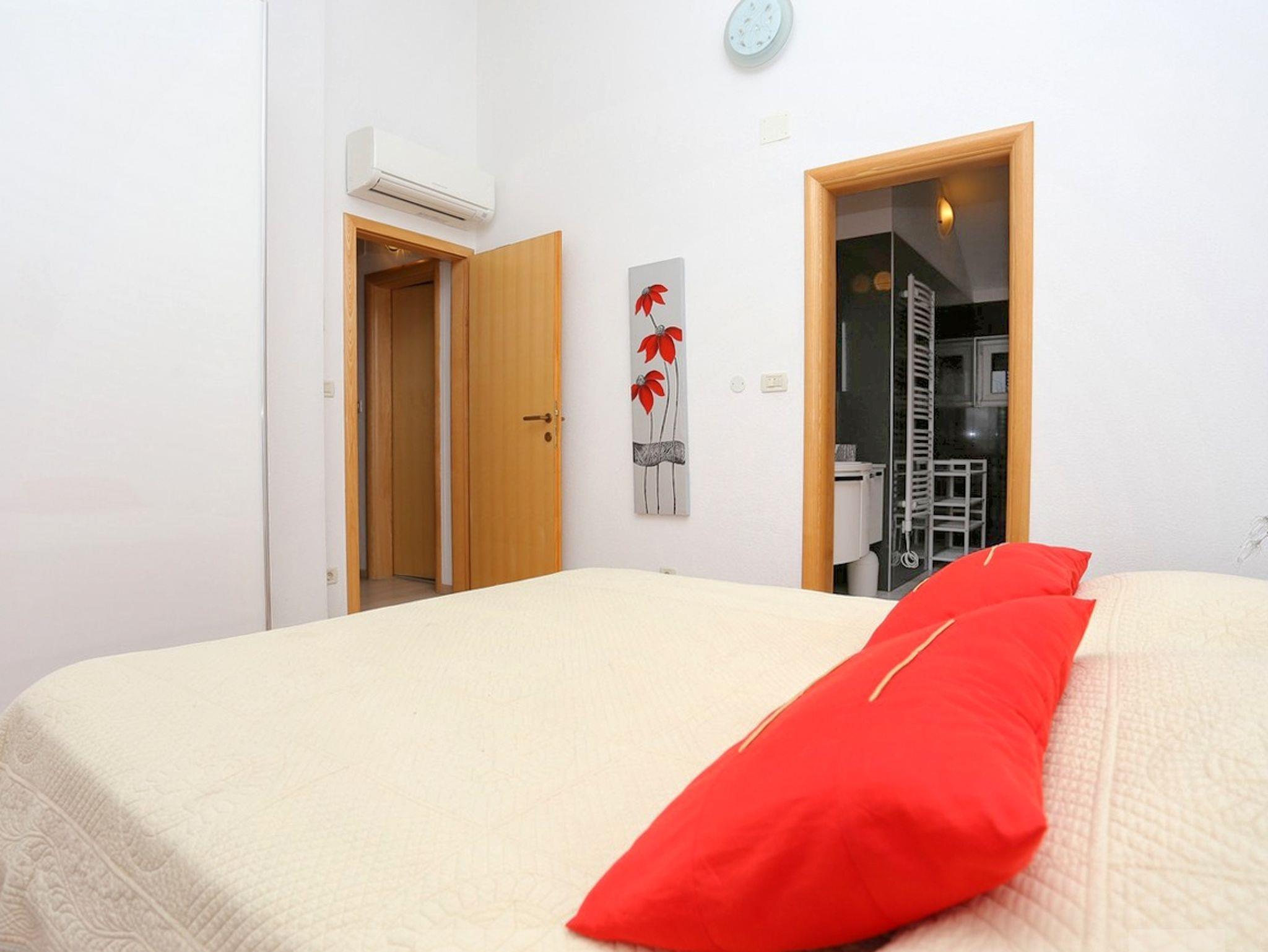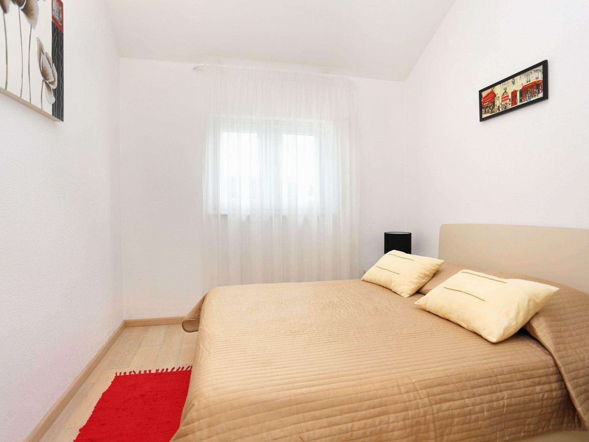 Ferienwohnung bietet Platz für 6 Gäste. Die Betten sind in Schlafzimmern, die es 2 gibt, und in Wohnzimmer, innerhalb einer Gesamtfläche von 81m2, angeordnet. Die Gäste haben eine eigene Terrasse zur Verfügung, auf der sie in warmen Sommernächten genießen können. Das Apartment bietet Meerblick. IM PREIS INBEGRIFFEN: Kurtaxe, Endreinigung, Klimatisierung, Parkplatz, Internet, Kinderbett, Bügeleisen, Bügelbrett, Föhn. VERBINDLICHE ZUSÄTZLICHE KOSTEN: Aufzahlung für Kurzaufenthalte (prozentualer Zuschlag pro Nächtigungsanzahl: 30% - 1, 20% - 2, 10% - 3). Die Verfügbarkeit zusätzlicher Dienstleistungen in Ihrem reservierten Termin und die Preise derselben (falls nicht aufgeführt) müssen im Voraus überprüft werden. Zusätzliche Dienstleistungen die in der Zahlungsaufforderung nicht aufgeführt sind werden direkt beim Vermieter bezahlt, angenommen der Gast nutzt auch diese. Ermäßigung auf den Grundpreis: Gratistag 14=13 (bei einem Aufenthalt von 14 Tagen oder mehr erhalten Sie einen Gratistag für den Aufenthalt bis 31.12.26).