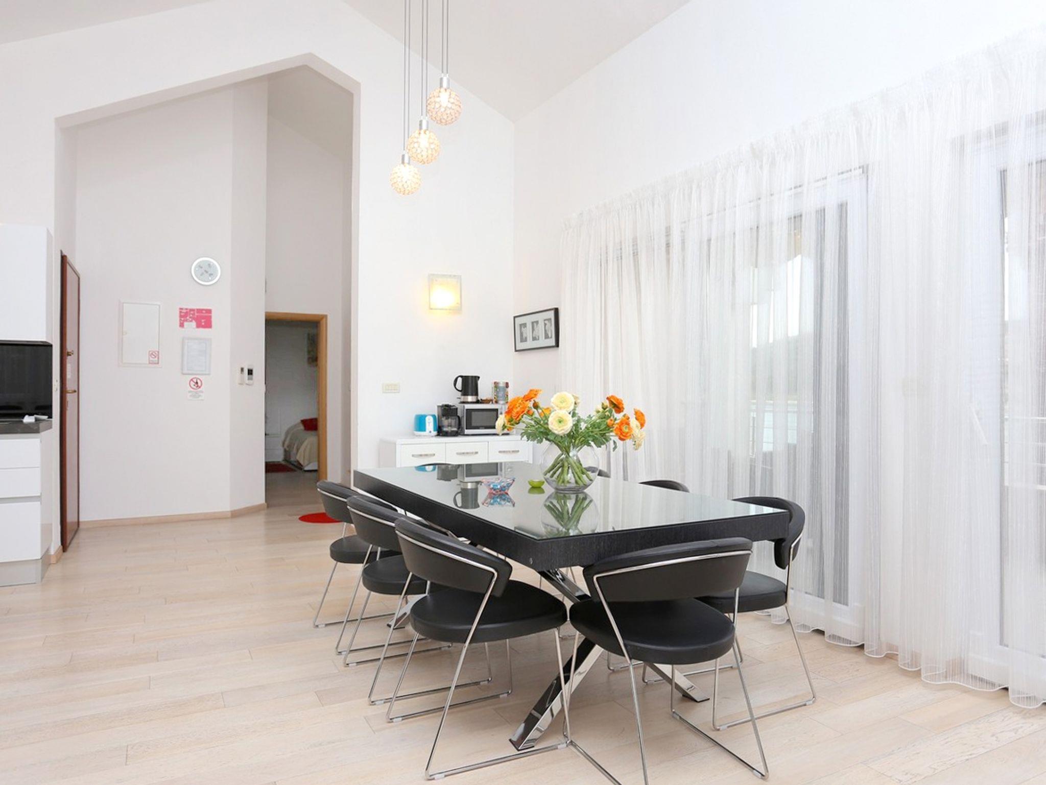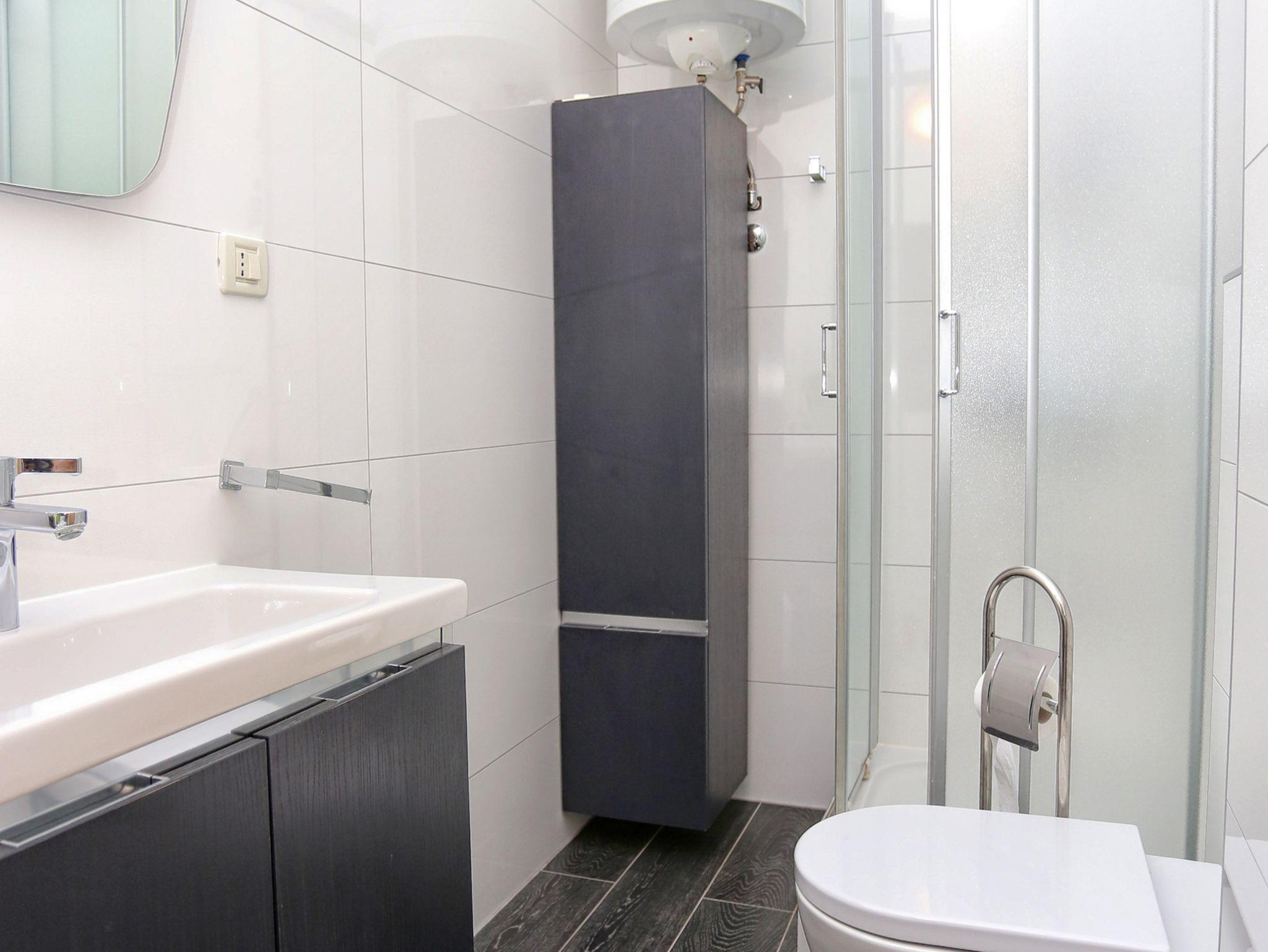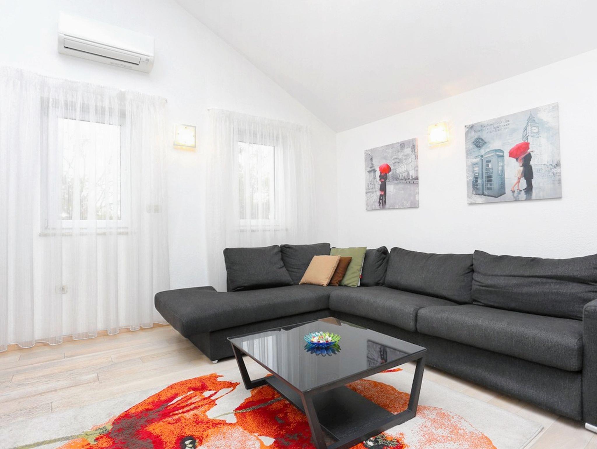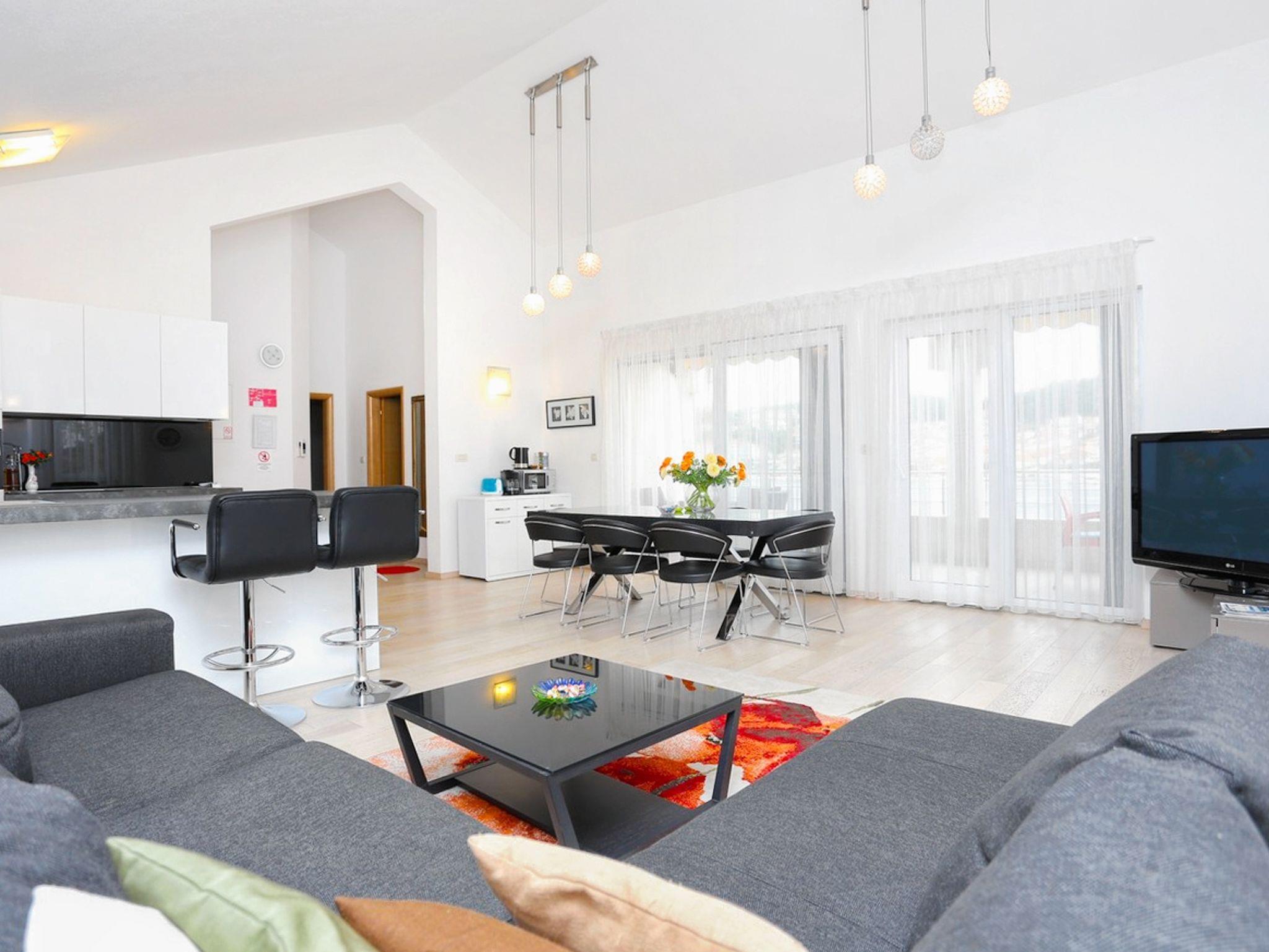 Ferienwohnung bietet Platz für 6 Gäste. Die Betten sind in Schlafzimmern, die es 2 gibt, und in Wohnzimmer, innerhalb einer Gesamtfläche von 81m2, angeordnet. Die Gäste haben eine eigene Terrasse zur Verfügung, auf der sie in warmen Sommernächten genießen können. Das Apartment bietet Meerblick. IM PREIS INBEGRIFFEN: Kurtaxe, Endreinigung, Klimatisierung, Parkplatz, Internet, Kinderbett, Bügeleisen, Bügelbrett, Föhn. VERBINDLICHE ZUSÄTZLICHE KOSTEN: Aufzahlung für Kurzaufenthalte (prozentualer Zuschlag pro Nächtigungsanzahl: 30% - 1, 20% - 2, 10% - 3). Die Verfügbarkeit zusätzlicher Dienstleistungen in Ihrem reservierten Termin und die Preise derselben (falls nicht aufgeführt) müssen im Voraus überprüft werden. Zusätzliche Dienstleistungen die in der Zahlungsaufforderung nicht aufgeführt sind werden direkt beim Vermieter bezahlt, angenommen der Gast nutzt auch diese. Ermäßigung auf den Grundpreis: Gratistag 14=13 (bei einem Aufenthalt von 14 Tagen oder mehr erhalten Sie einen Gratistag für den Aufenthalt bis 31.12.26).