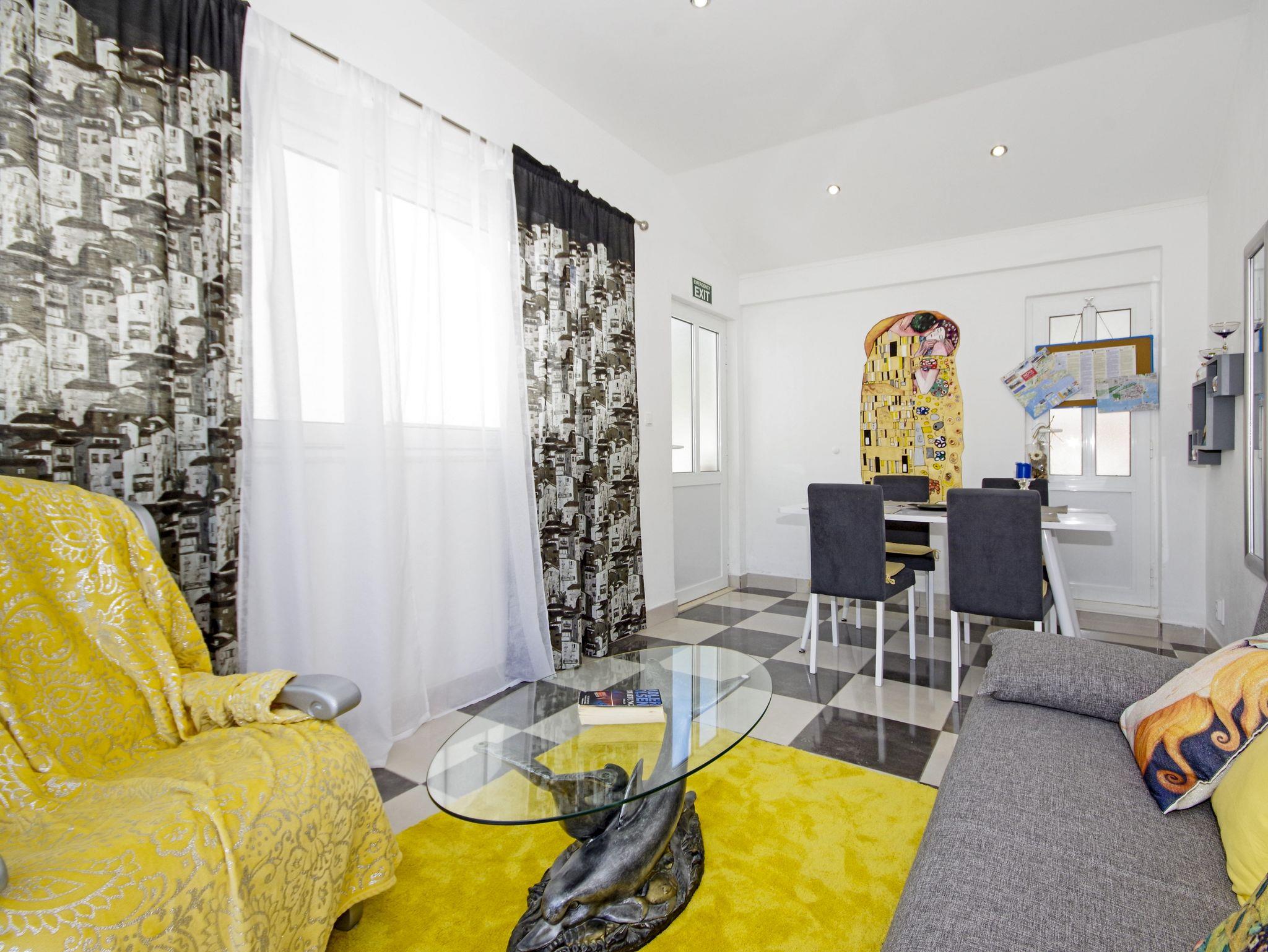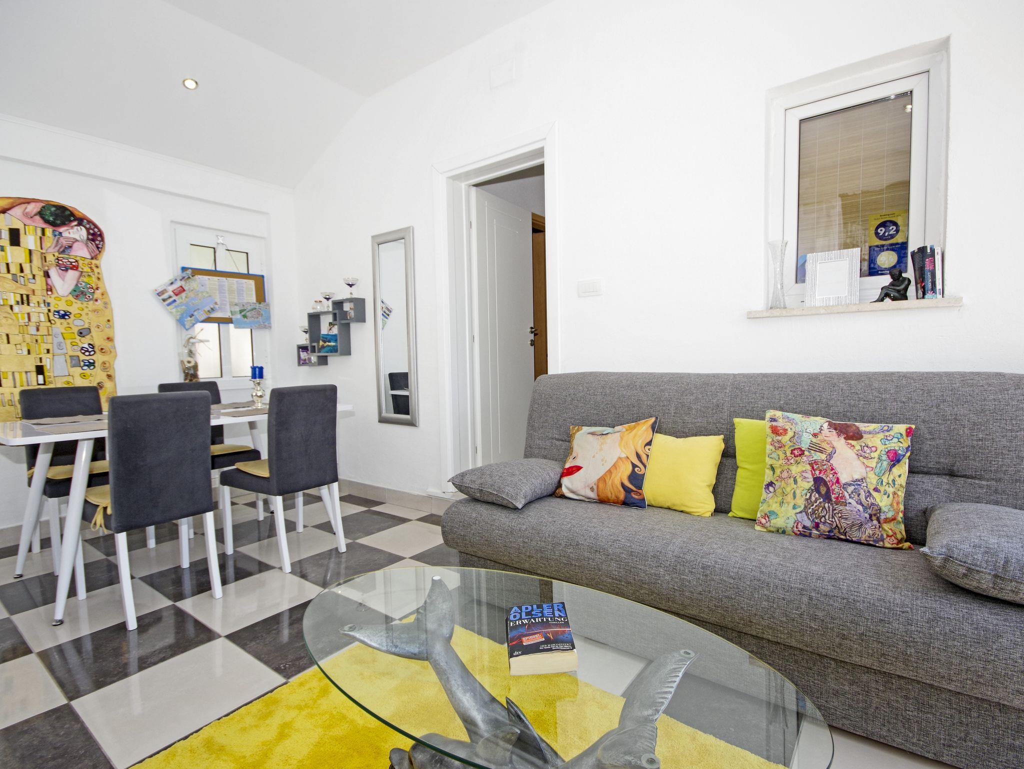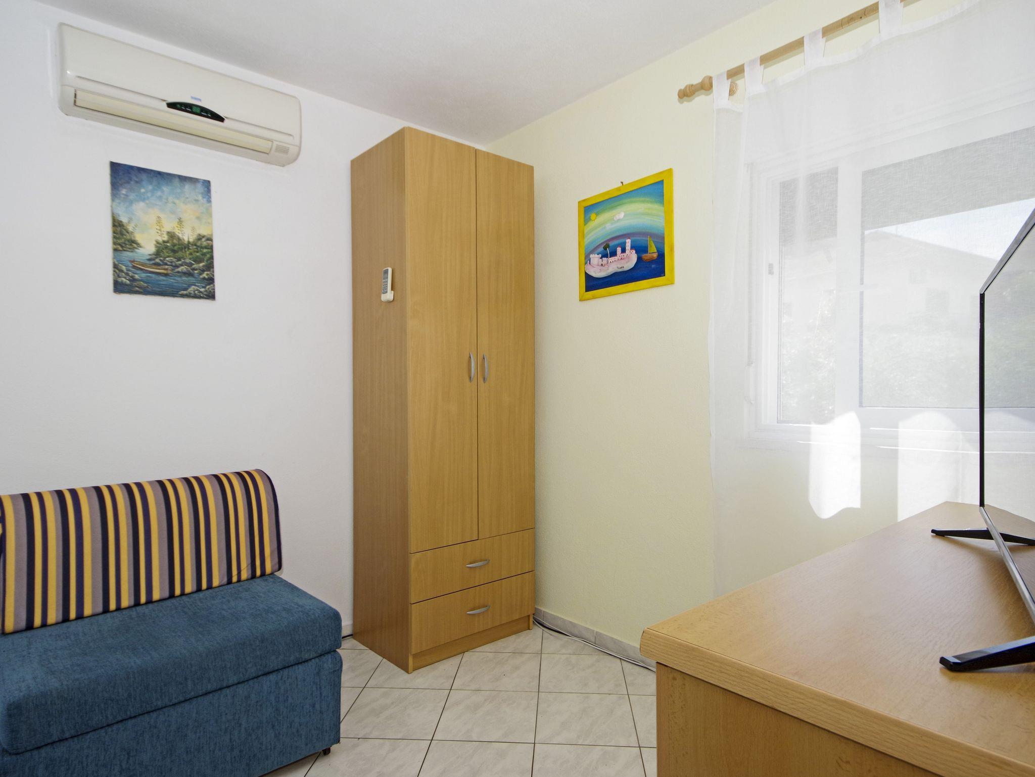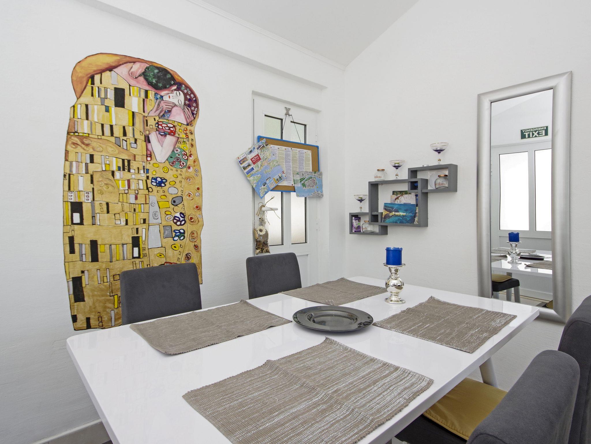 Haus bietet Platz für 4 Gäste. Die Betten sind in Schlafzimmern, die es 1 gibt, und in Wohnzimmer, innerhalb einer Gesamtfläche von 44m2, angeordnet. Die Gäste haben eine eigene Terrasse zur Verfügung, auf der sie in warmen Sommernächten genießen können. Für vollen Genuss und Entspannung gibt es einen privaten Grill für Gäste dieser Unterkunft. IM PREIS INBEGRIFFEN: Kurtaxe, Endreinigung, Klimatisierung, Internet, Kinderbett, Bügeleisen, Bügelbrett, Föhn, Sonnenschirm, Liegestühle. Die Verfügbarkeit zusätzlicher Dienstleistungen in Ihrem reservierten Termin und die Preise derselben (falls nicht aufgeführt) müssen im Voraus überprüft werden. Zusätzliche Dienstleistungen die in der Zahlungsaufforderung nicht aufgeführt sind werden direkt beim Vermieter bezahlt, angenommen der Gast nutzt auch diese.
