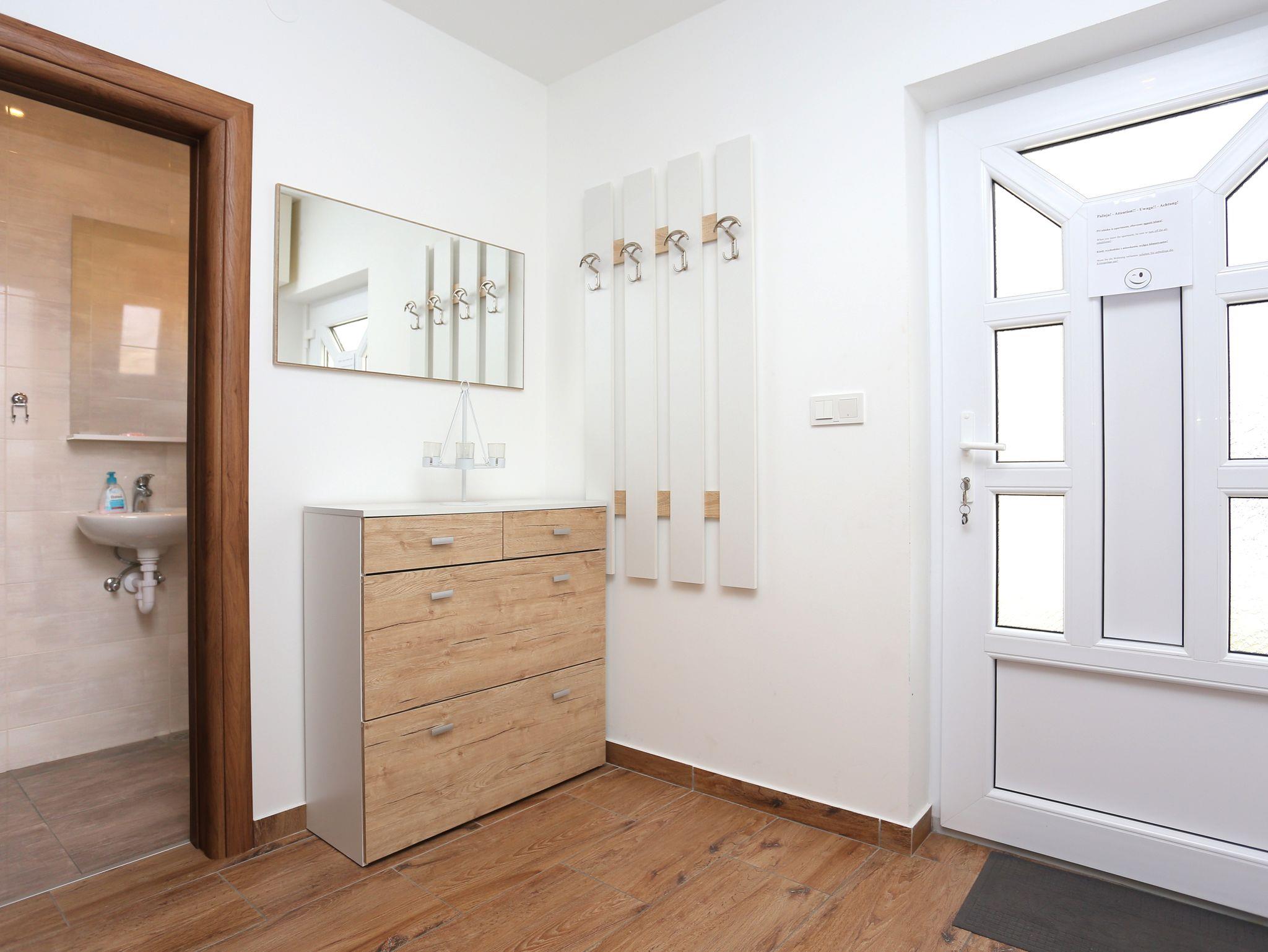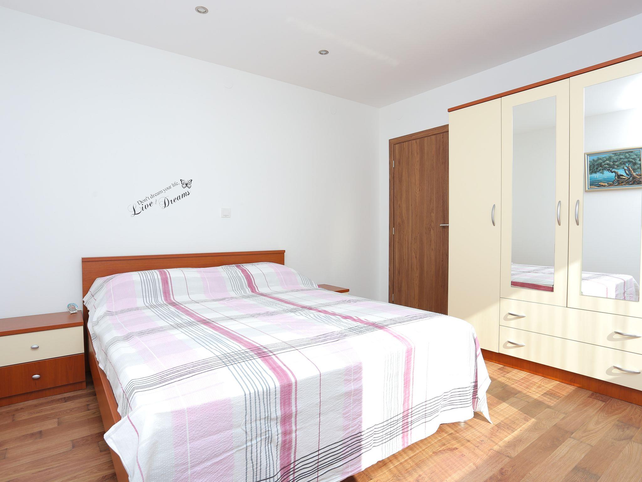 Ferienwohnung bietet Platz für 4 Gäste. Die Betten sind in Schlafzimmern, die es 2 gibt, innerhalb einer Gesamtfläche von 61m2, angeordnet. Die Gäste haben eine eigene Terrasse zur Verfügung, auf der sie in warmen Sommernächten genießen können. Es ist erlaubt, Speisen auf dem Gemeinschafts-Grill vorzubereiten. IM PREIS INBEGRIFFEN: Kurtaxe, Endreinigung, Klimatisierung, Parkplatz, Internet, Kinderbett, Bügeleisen, Bügelbrett, Föhn. VERBINDLICHE ZUSÄTZLICHE KOSTEN: Aufzahlung für Kurzaufenthalte (prozentualer Zuschlag pro Nächtigungsanzahl: 30% - 1, 20% - 2, 10% - 3). Die Verfügbarkeit zusätzlicher Dienstleistungen in Ihrem reservierten Termin und die Preise derselben (falls nicht aufgeführt) müssen im Voraus überprüft werden. Zusätzliche Dienstleistungen die in der Zahlungsaufforderung nicht aufgeführt sind werden direkt beim Vermieter bezahlt, angenommen der Gast nutzt auch diese. Ermäßigung auf den Grundpreis: Gratistag 14=13 (bei einem Aufenthalt von 14 Tagen oder mehr erhalten Sie einen Gratistag für den Aufenthalt bis 31.12.26).