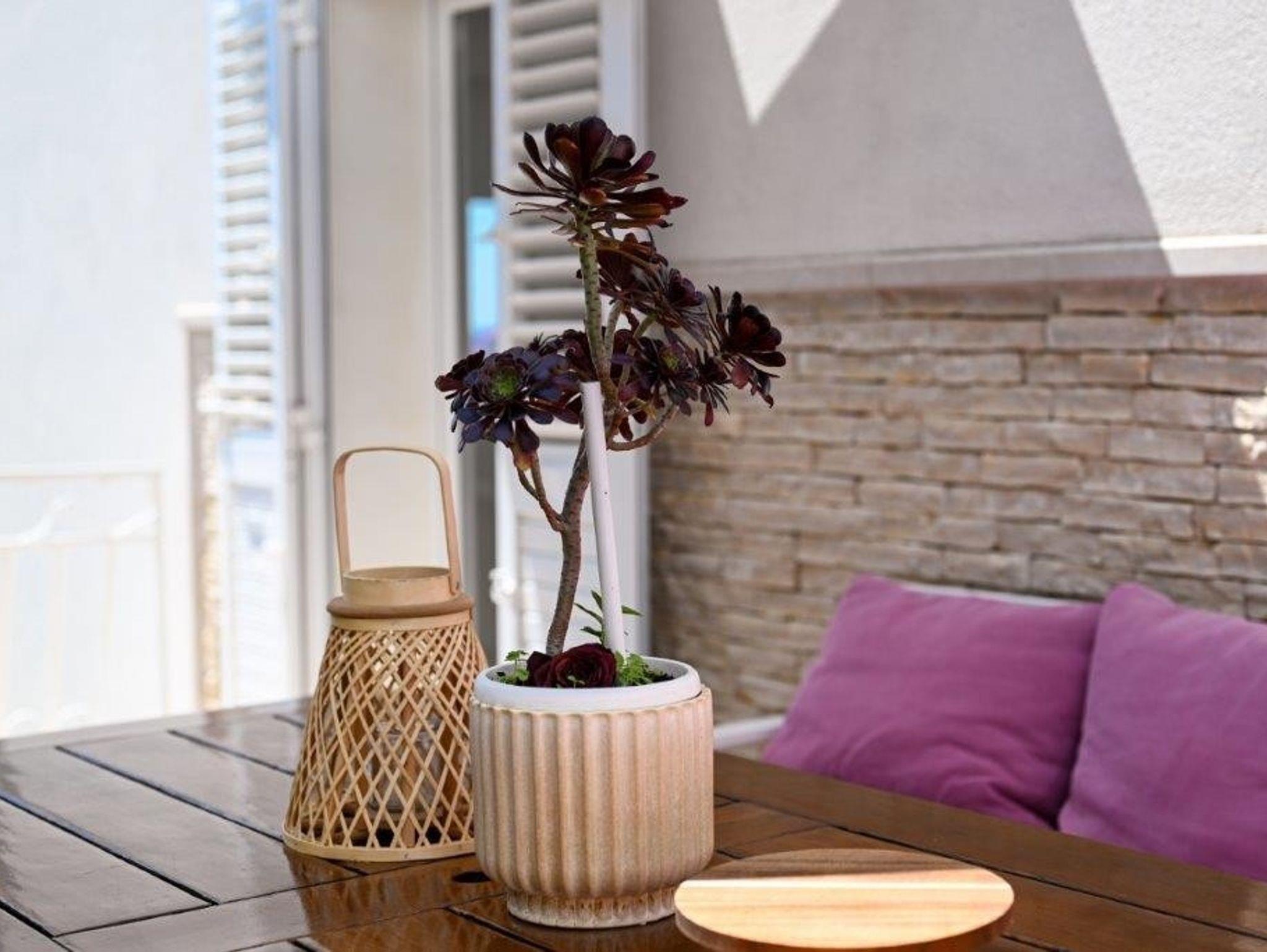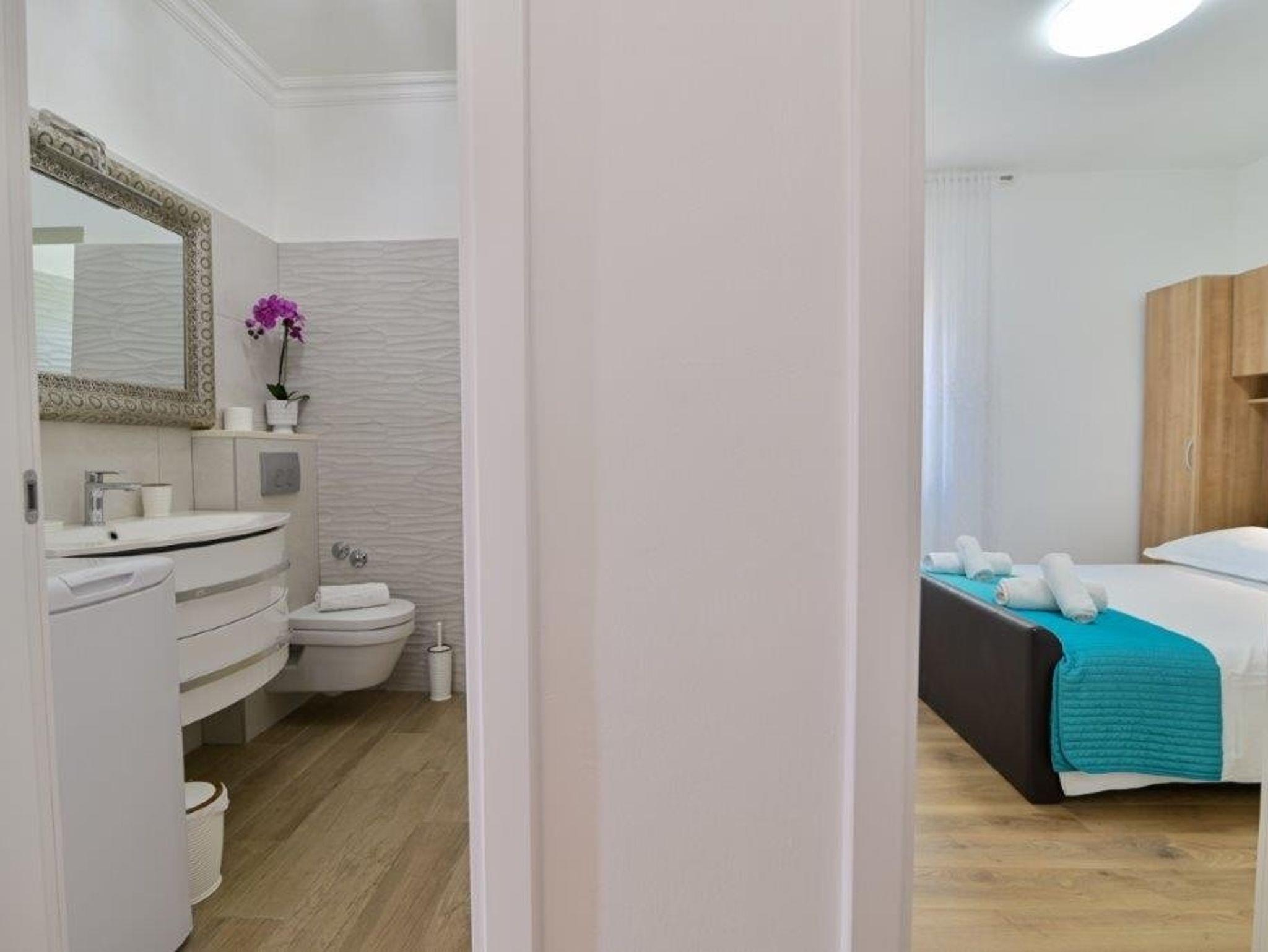 Ferienwohnung bietet Platz für 6 Gäste. Die Betten sind in Schlafzimmern, die es 2 gibt, und in Wohnzimmer, innerhalb einer Gesamtfläche von 65m2, angeordnet. Die Gäste haben eine eigene Terrasse zur Verfügung, auf der sie in warmen Sommernächten genießen können. Das Apartment bietet Meerblick. Es ist erlaubt, Speisen auf dem Gemeinschafts-Grill vorzubereiten. In der Unterkunftseinheit besteht die Möglichkeit des Mitbringens von Haustieren gegen Aufpreis. IM PREIS INBEGRIFFEN: Kurtaxe, Endreinigung, Klimatisierung, Parkplatz, Internet, Bügeleisen, Bügelbrett, Föhn. VERBINDLICHE ZUSÄTZLICHE KOSTEN: Aufzahlung für Kurzaufenthalte (prozentualer Zuschlag pro Nächtigungsanzahl: 30% - 1, 20% - 2, 10% - 3). UNVERBINDLICHE ZUSÄTZLICHE KOSTEN: Haustiere (10,00 € pro Nacht). Die Verfügbarkeit zusätzlicher Dienstleistungen in Ihrem reservierten Termin und die Preise derselben (falls nicht aufgeführt) müssen im Voraus überprüft werden. Zusätzliche Dienstleistungen die in der Zahlungsaufforderung nicht aufgeführt sind werden direkt beim Vermieter bezahlt, angenommen der Gast nutzt auch diese.