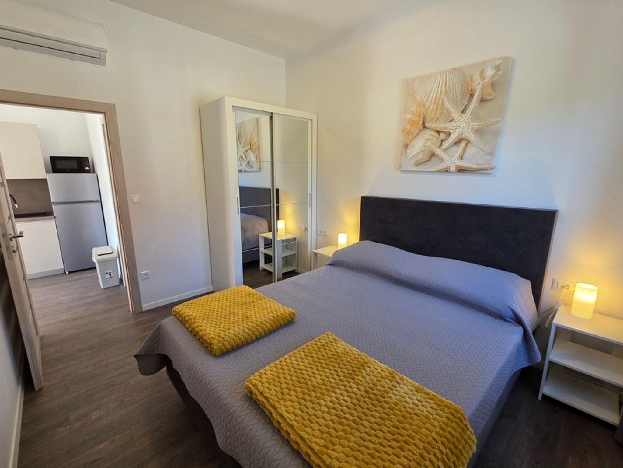 Ferienwohnung bietet Platz für 2 Gäste. Die Betten sind in Schlafzimmern, die es 1 gibt, innerhalb einer Gesamtfläche von 36m2, angeordnet. Die Gäste haben einen eigenen Balkon zur Verfügung, auf der sie in warmen Sommernächten genießen können. Es ist erlaubt, Speisen auf dem Gemeinschafts-Grill vorzubereiten. Räume der gebuchten Unterkunftseinheit werden nicht in eine Ganze verbunden. IM PREIS INBEGRIFFEN: Kurtaxe, Endreinigung, Klimatisierung, Parkplatz, Internet, Bügeleisen, Bügelbrett, Föhn. Die Verfügbarkeit zusätzlicher Dienstleistungen in Ihrem reservierten Termin und die Preise derselben (falls nicht aufgeführt) müssen im Voraus überprüft werden. Zusätzliche Dienstleistungen die in der Zahlungsaufforderung nicht aufgeführt sind werden direkt beim Vermieter bezahlt, angenommen der Gast nutzt auch diese.