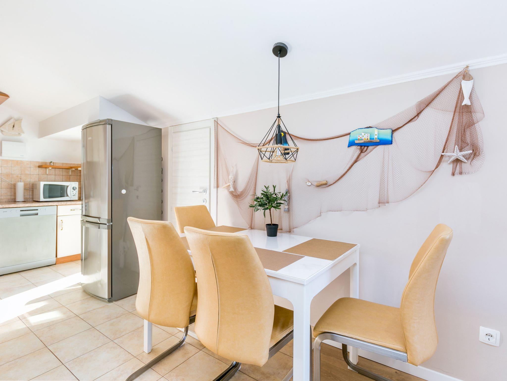 Ferienwohnung bietet Platz für 4 Gäste. Die Betten sind in Schlafzimmern, die es 2 gibt, und in Wohnzimmer, innerhalb einer Gesamtfläche von 56m2, angeordnet. Die Gäste haben eine eigene Terrasse zur Verfügung, auf der sie in warmen Sommernächten genießen können. Das Apartment bietet Meerblick. IM PREIS INBEGRIFFEN: Kurtaxe, Endreinigung, Klimatisierung, Internet, Kinderbett, Bügeleisen, Bügelbrett, Föhn. Die Verfügbarkeit zusätzlicher Dienstleistungen in Ihrem reservierten Termin und die Preise derselben (falls nicht aufgeführt) müssen im Voraus überprüft werden. Zusätzliche Dienstleistungen die in der Zahlungsaufforderung nicht aufgeführt sind werden direkt beim Vermieter bezahlt, angenommen der Gast nutzt auch diese. Ermäßigung auf den Grundpreis: Gratistag 14=13 (bei einem Aufenthalt von 14 Tagen oder mehr erhalten Sie einen Gratistag für den Aufenthalt bis 31.12.26).