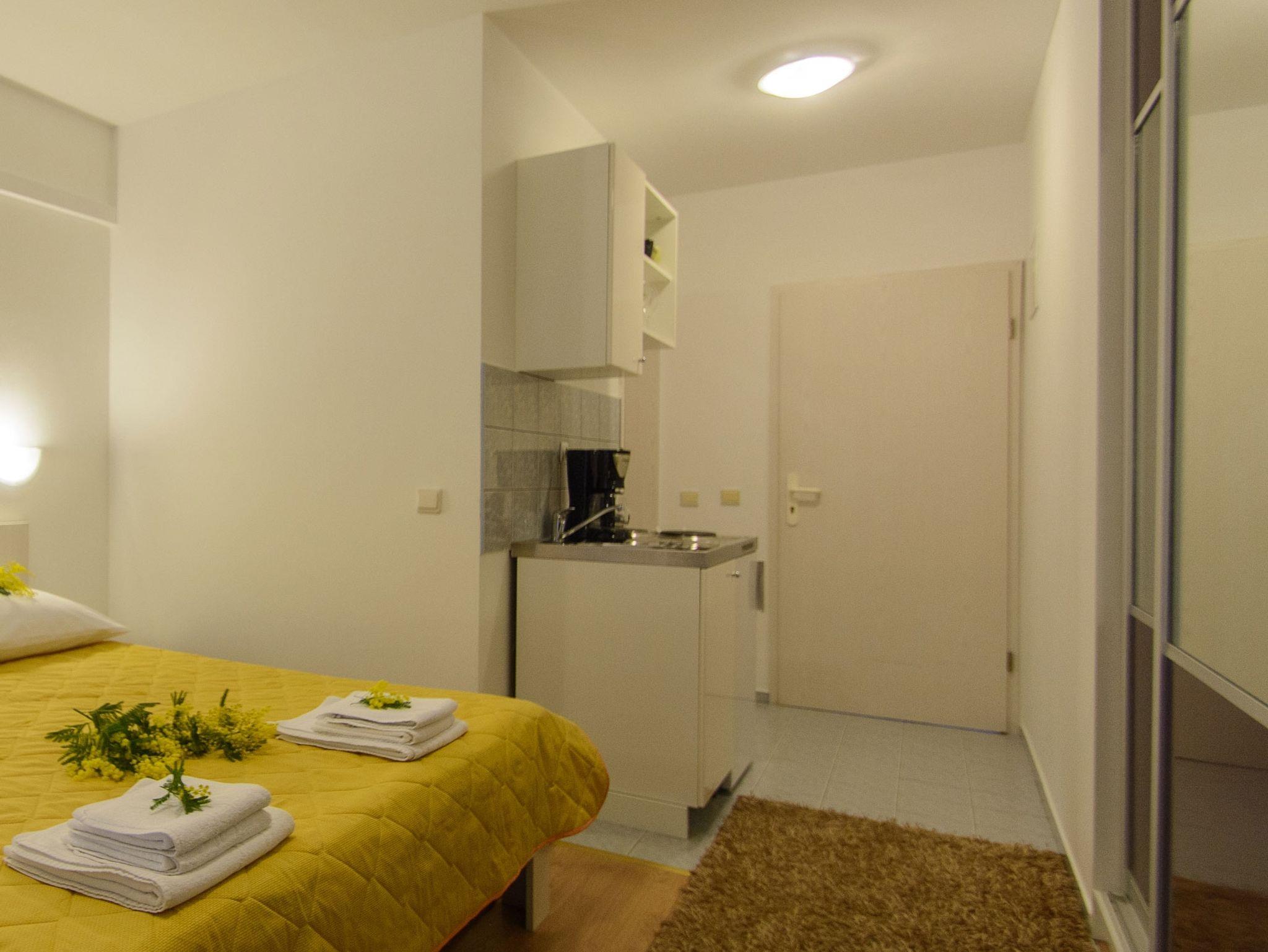 Studio bietet Platz für 2 Gäste. Die Betten sind in Schlafzimmern, die es 1 gibt, innerhalb einer Gesamtfläche von 22m2, angeordnet. Die Gäste haben einen eigenen Balkon zur Verfügung, auf der sie in warmen Sommernächten genießen können. Das Studio-Apartment bietet Meerblick. Es ist erlaubt, Speisen auf dem Gemeinschafts-Grill vorzubereiten. IM PREIS INBEGRIFFEN: Kurtaxe, Endreinigung, Klimatisierung, Parkplatz, Internet, Föhn. Die Verfügbarkeit zusätzlicher Dienstleistungen in Ihrem reservierten Termin und die Preise derselben (falls nicht aufgeführt) müssen im Voraus überprüft werden. Zusätzliche Dienstleistungen die in der Zahlungsaufforderung nicht aufgeführt sind werden direkt beim Vermieter bezahlt, angenommen der Gast nutzt auch diese.
